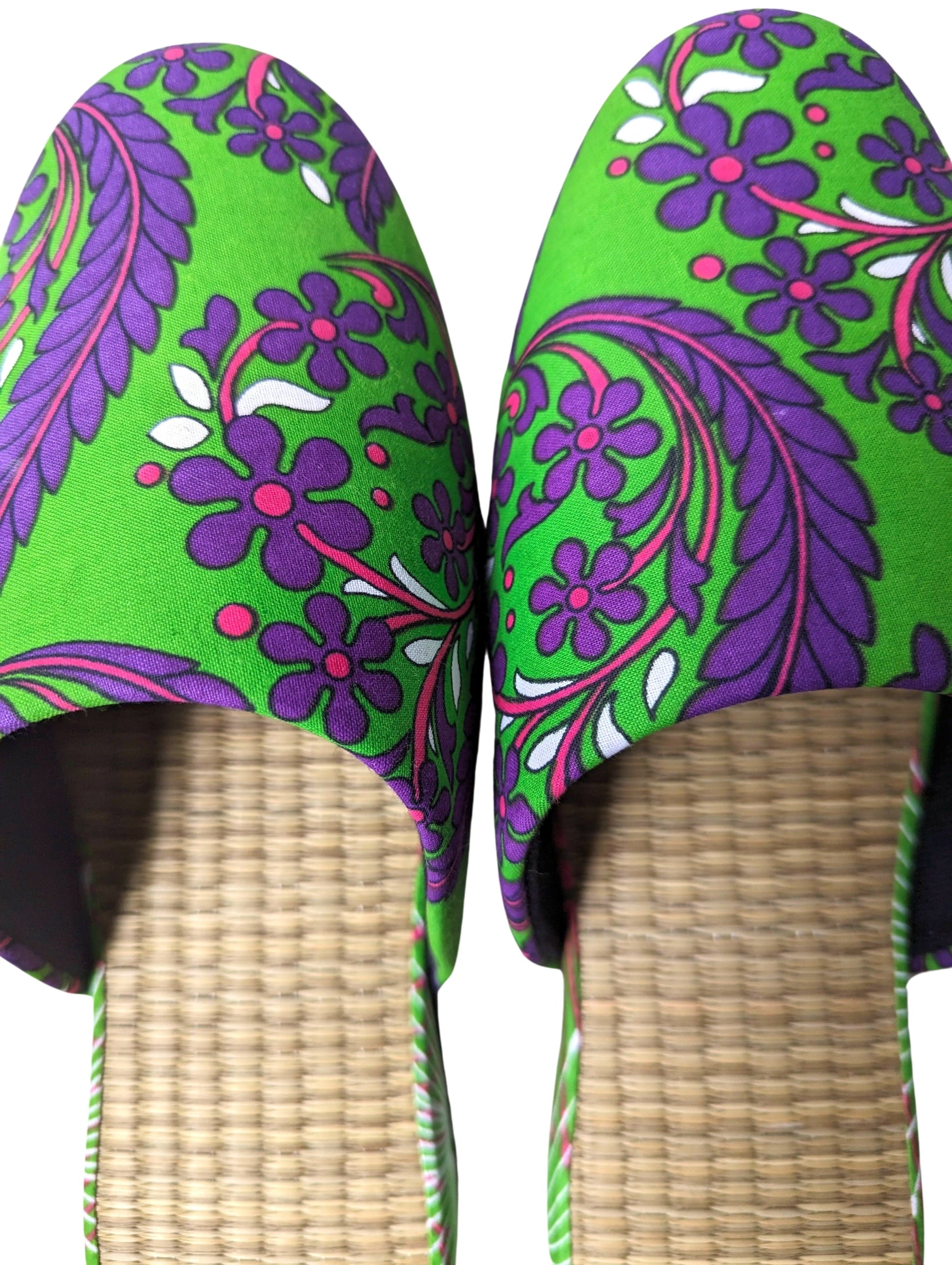 [SALE] Large | Denim and Flowers Mix Slippers #055 [Black wool felt sole]