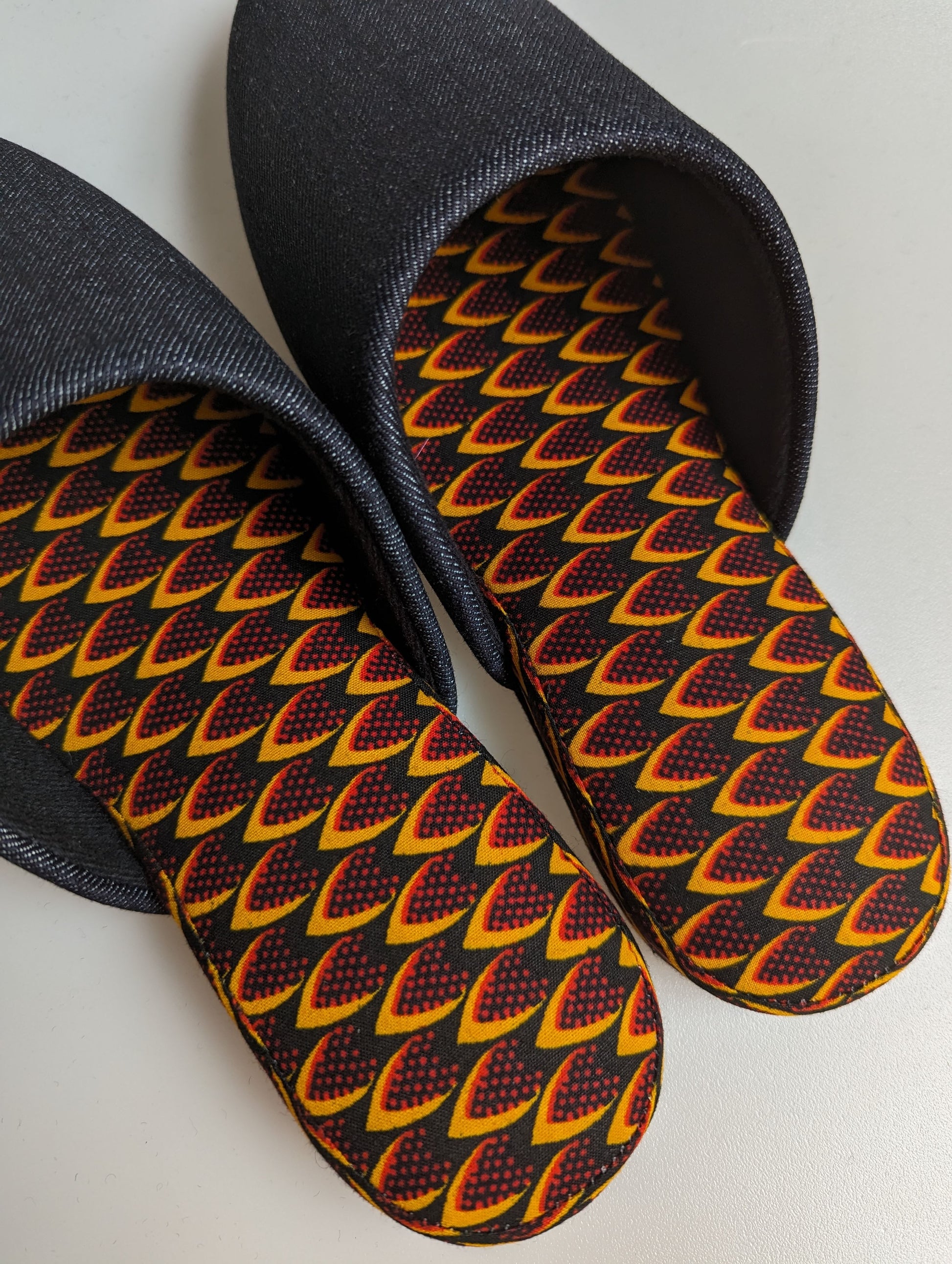 [SALE] Large | Denim and Flowers Mix Slippers #055 [Black wool felt sole]