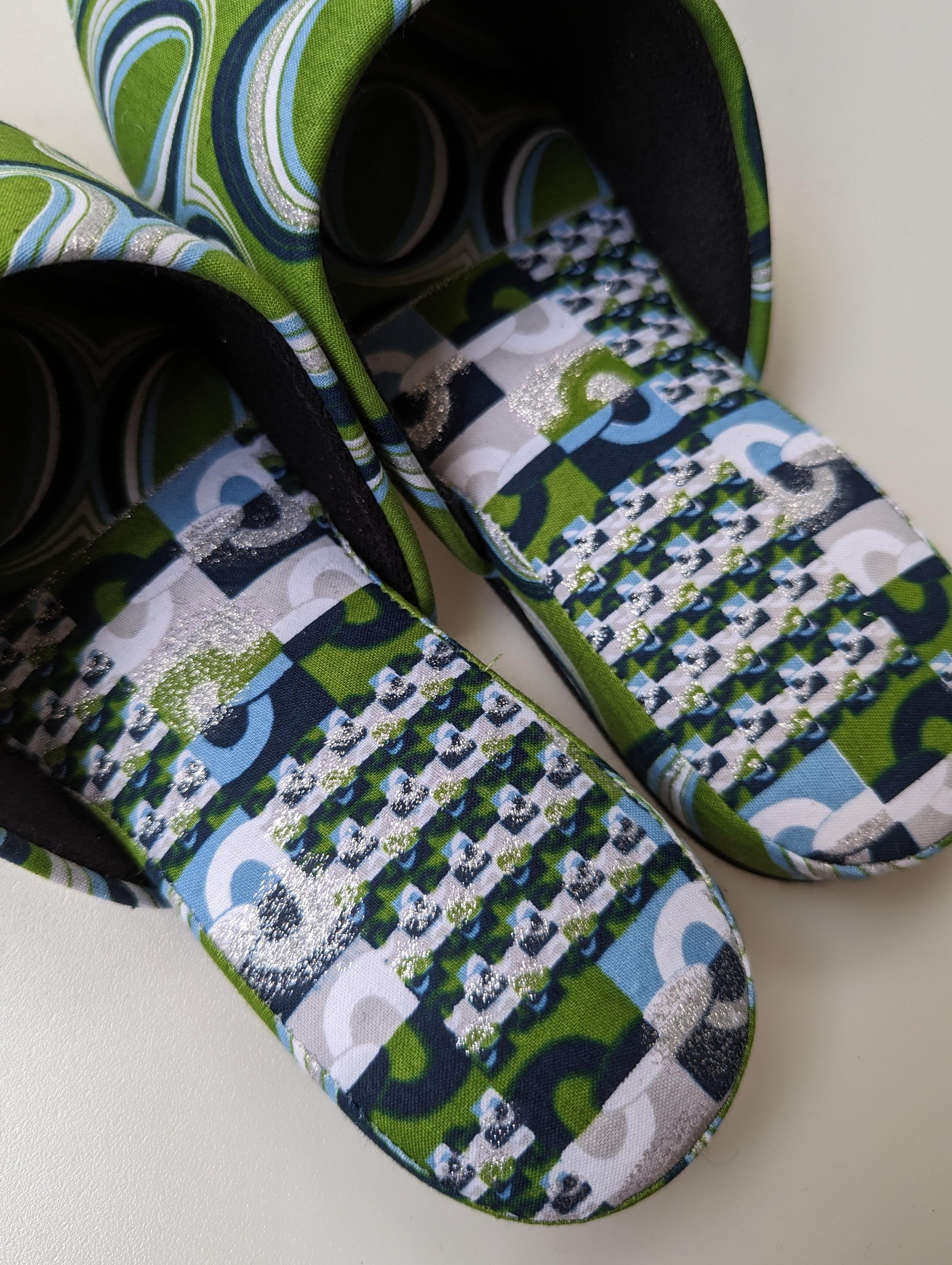 [SALE] Large | Denim and Flowers Mix Slippers #055 [Black wool felt sole]