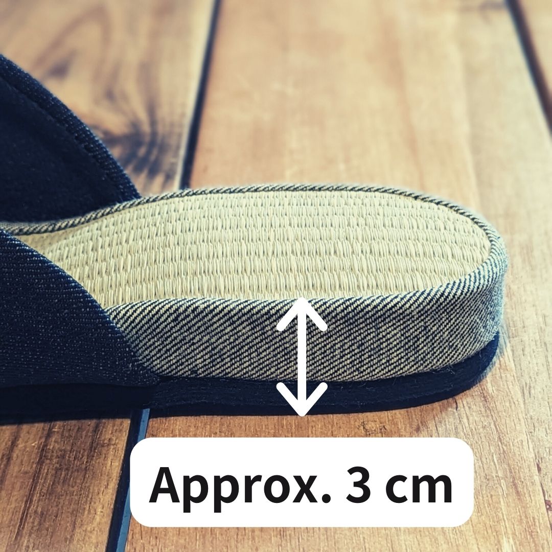 Material: Cotton Denim ,Japanese Tatami mat sole, wool felt sole.