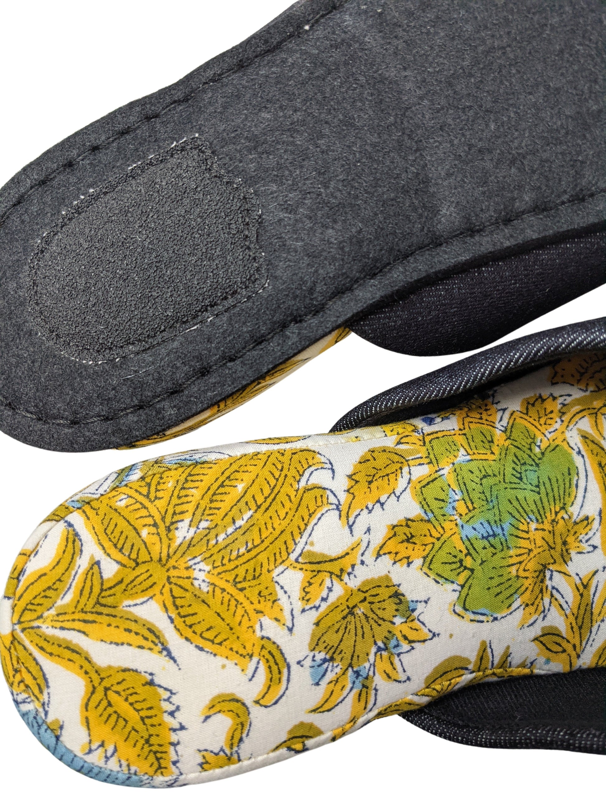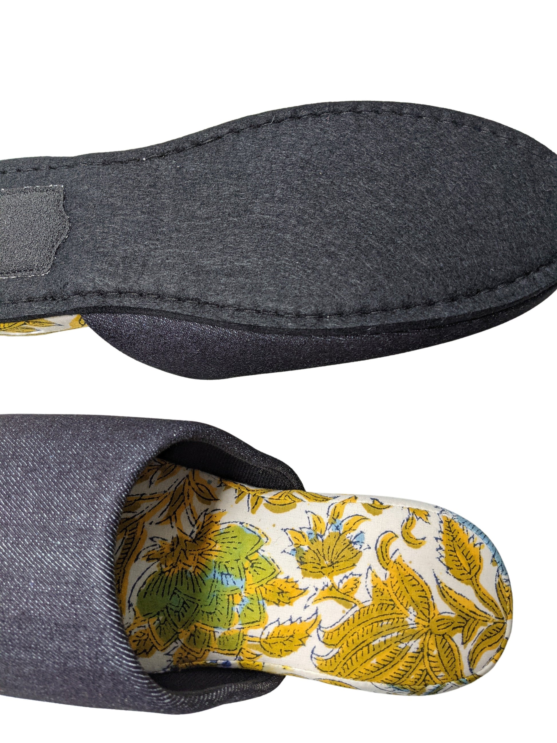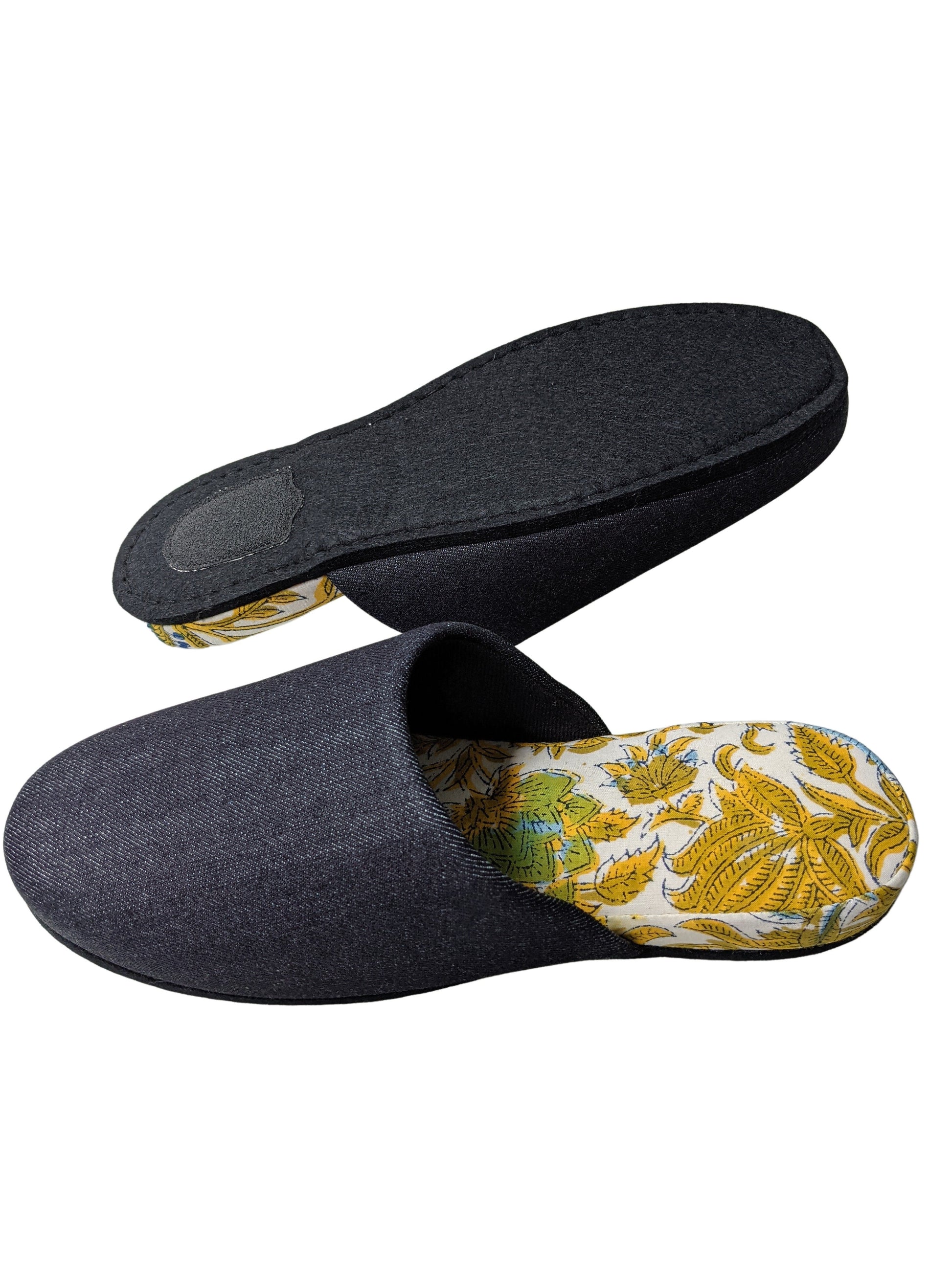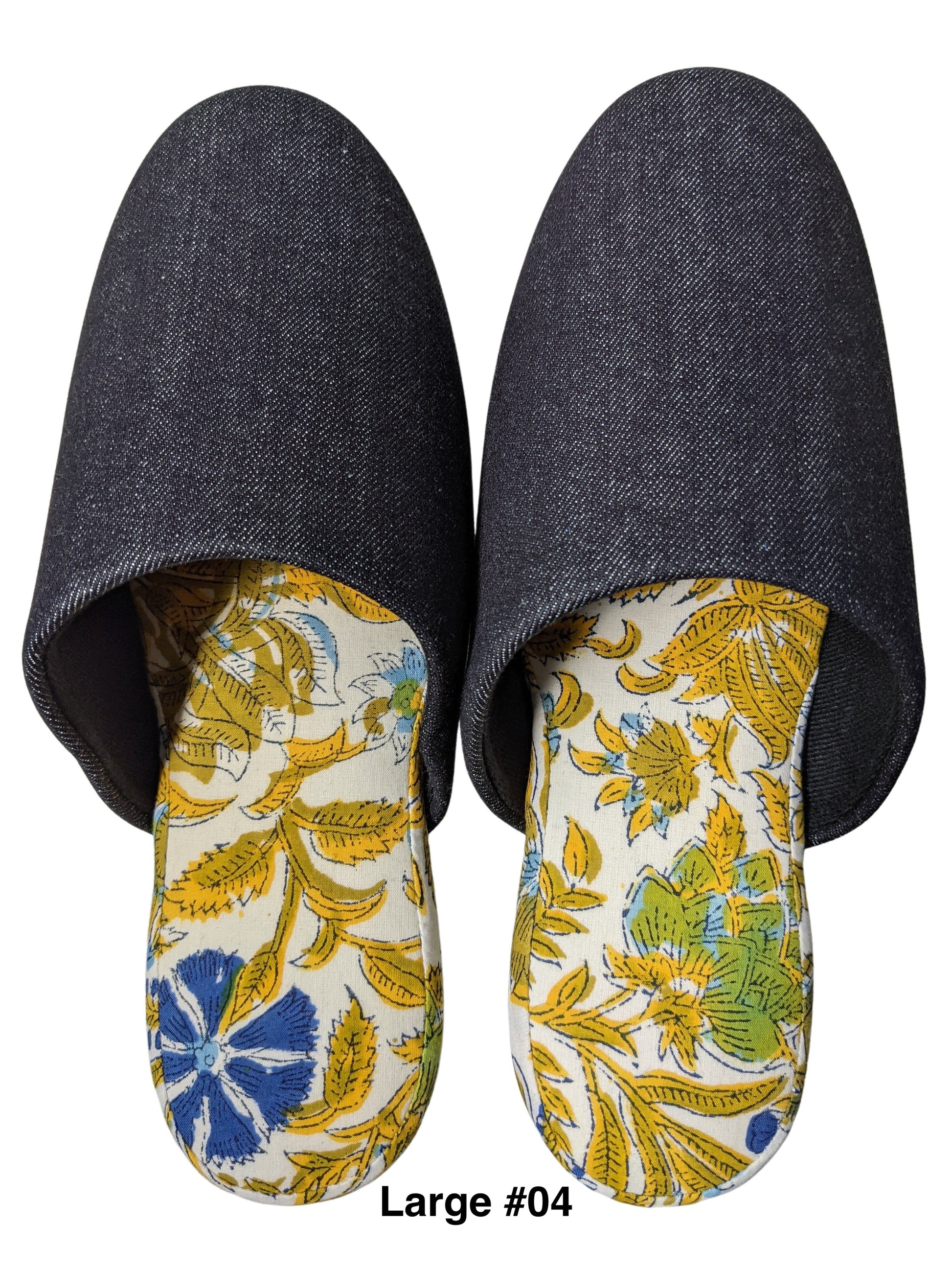 [SALE] Large | Denim and Flowers Mix Slippers #055 [Black wool felt sole]