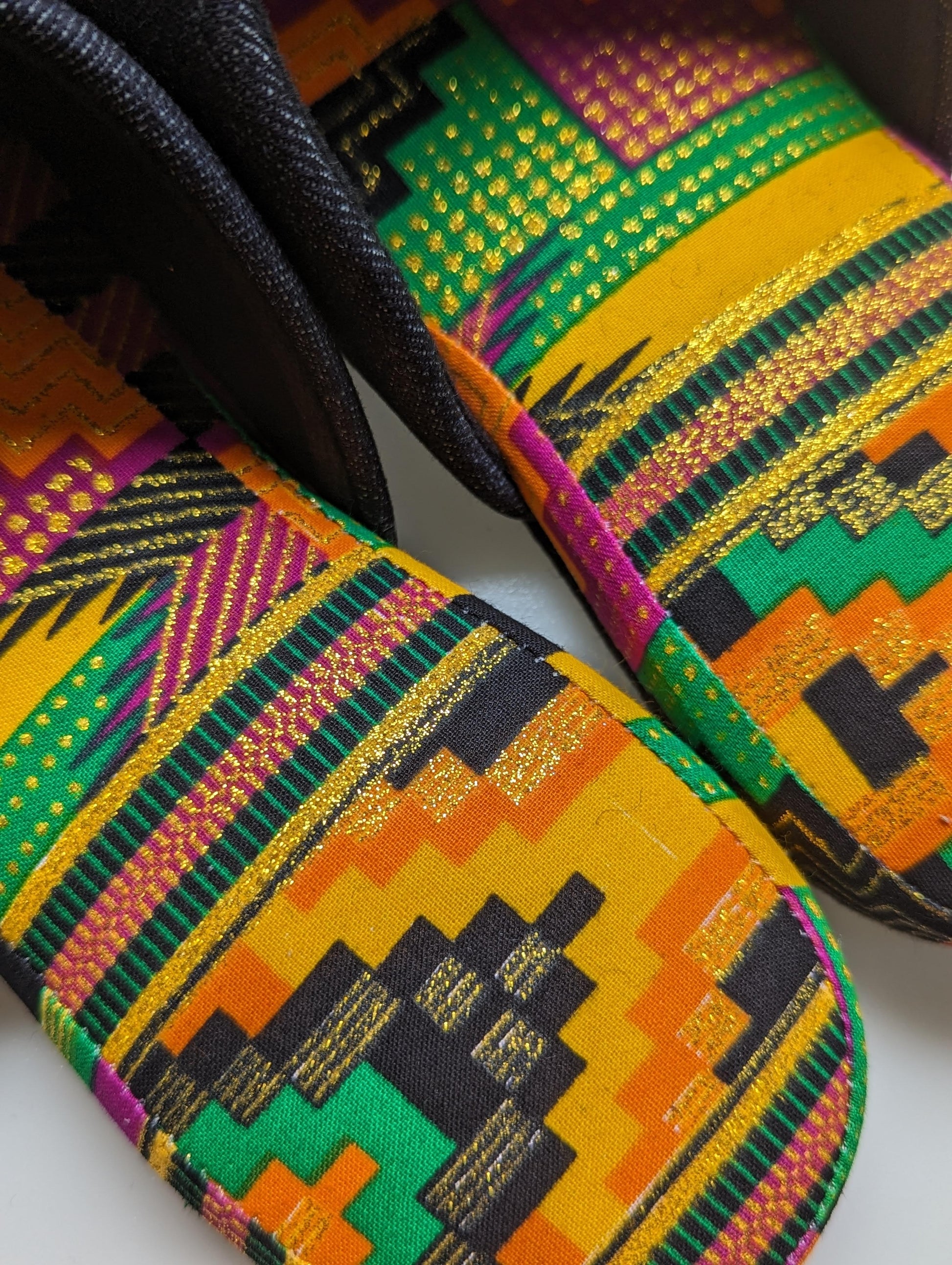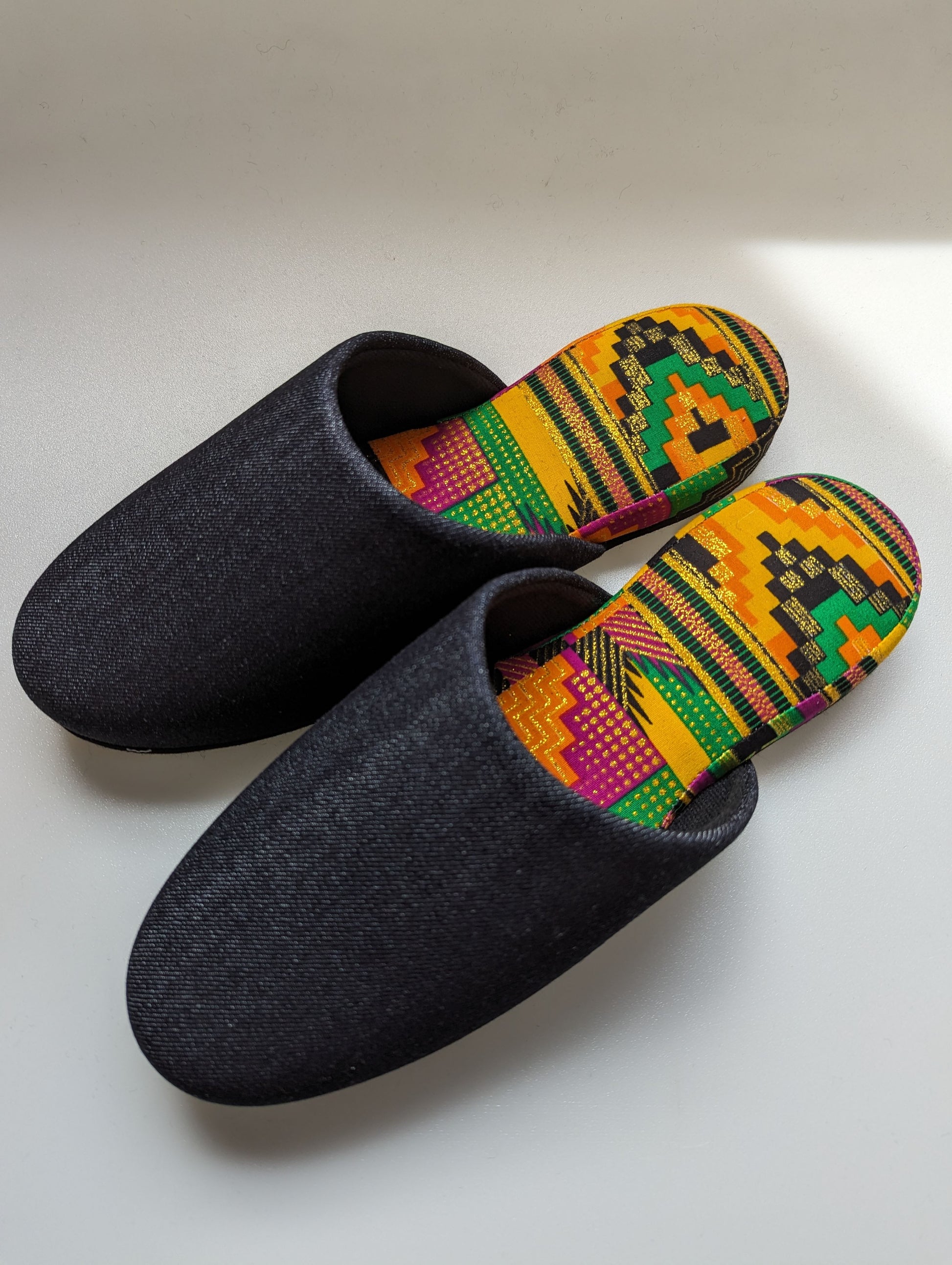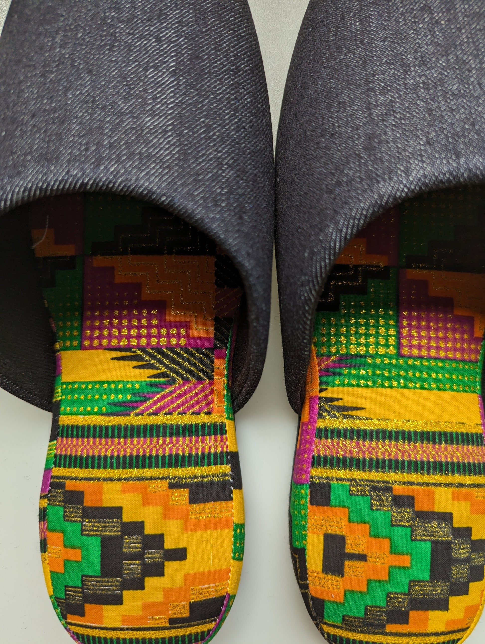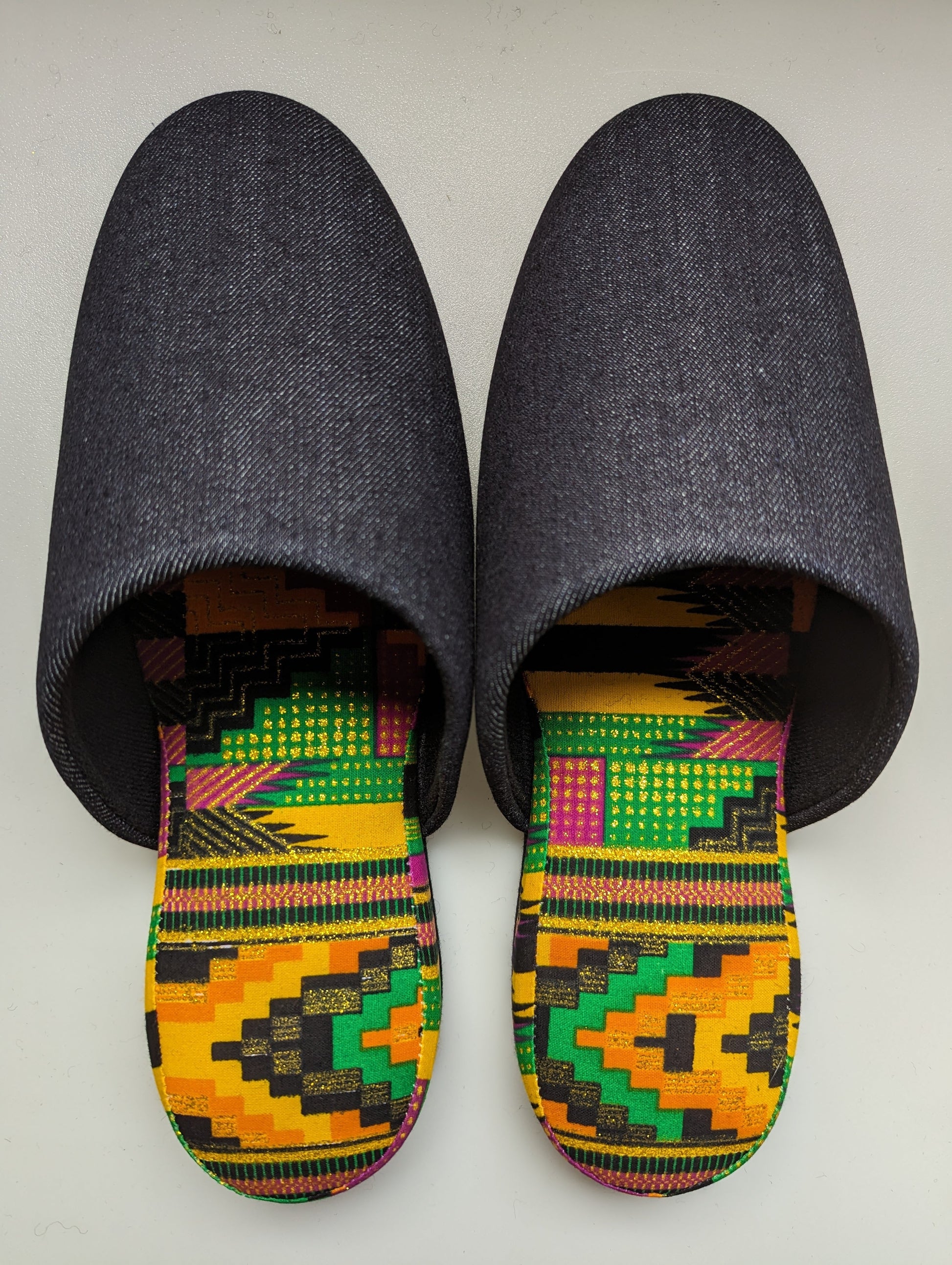 [SALE] Large | Denim and Flowers Mix Slippers #055 [Black wool felt sole]