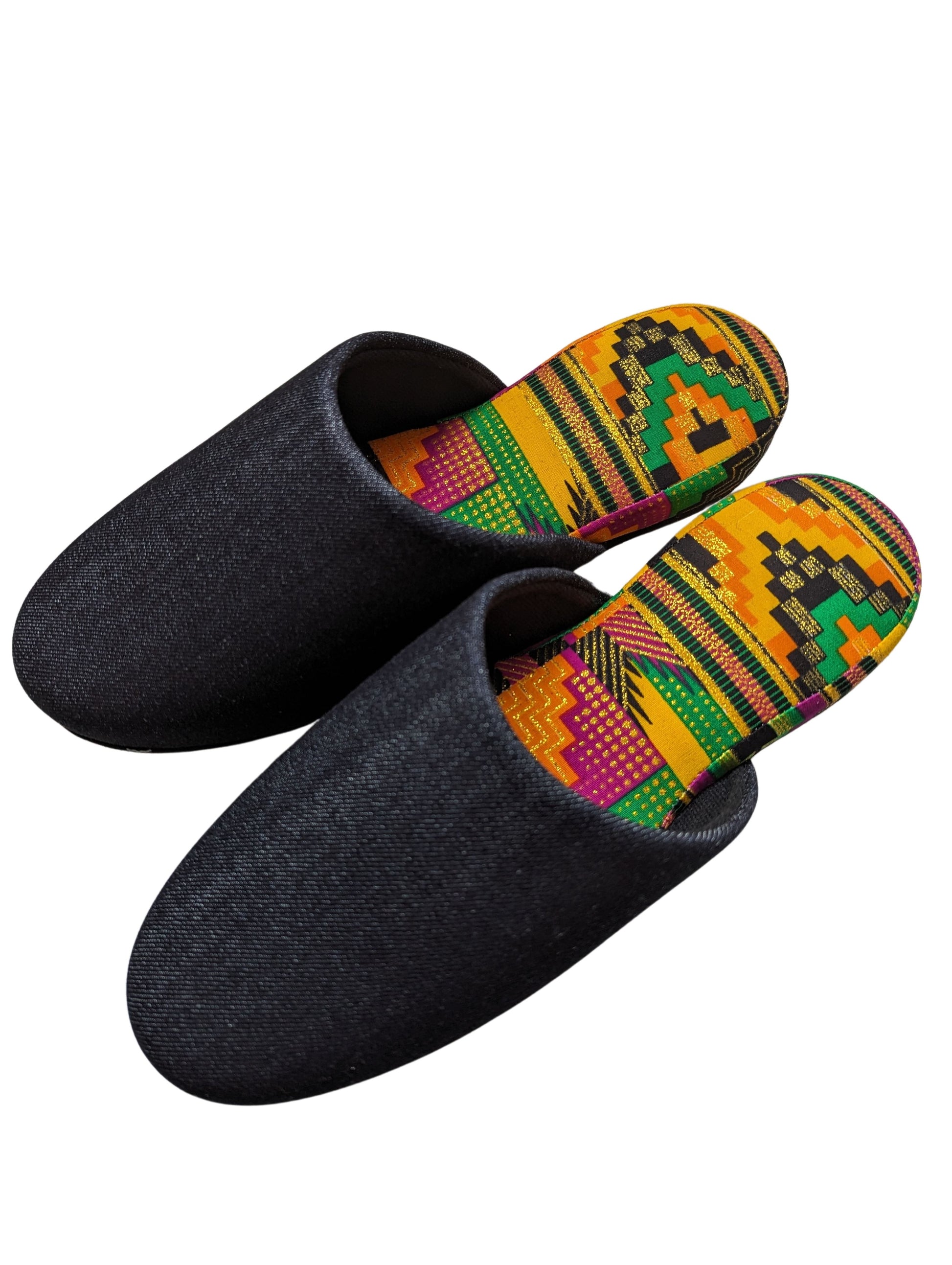 [SALE] Large| Denim and Flowers Mix Slippers [Black wool felt sole]