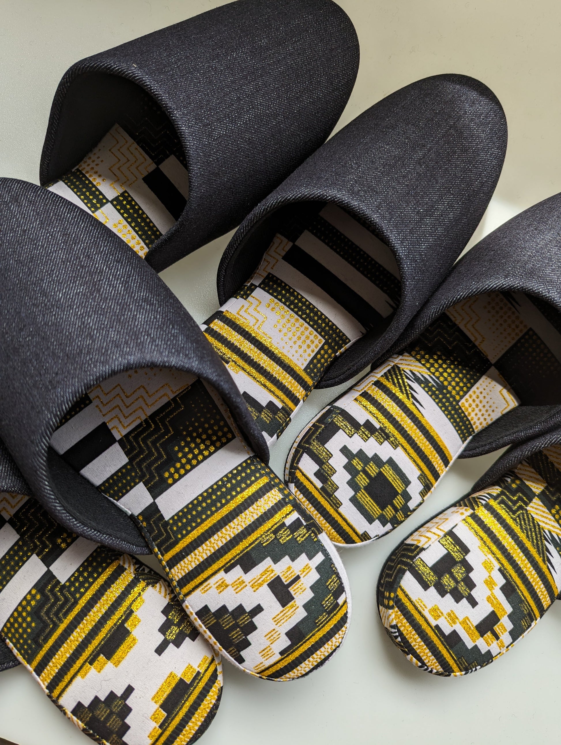 Heiwa Slippers bring new charm to the classic design of Japanese style slippers. These slippers are made by skilled Japanese craftsmen. Each pair is carefully constructed by hand using traditional instruments.