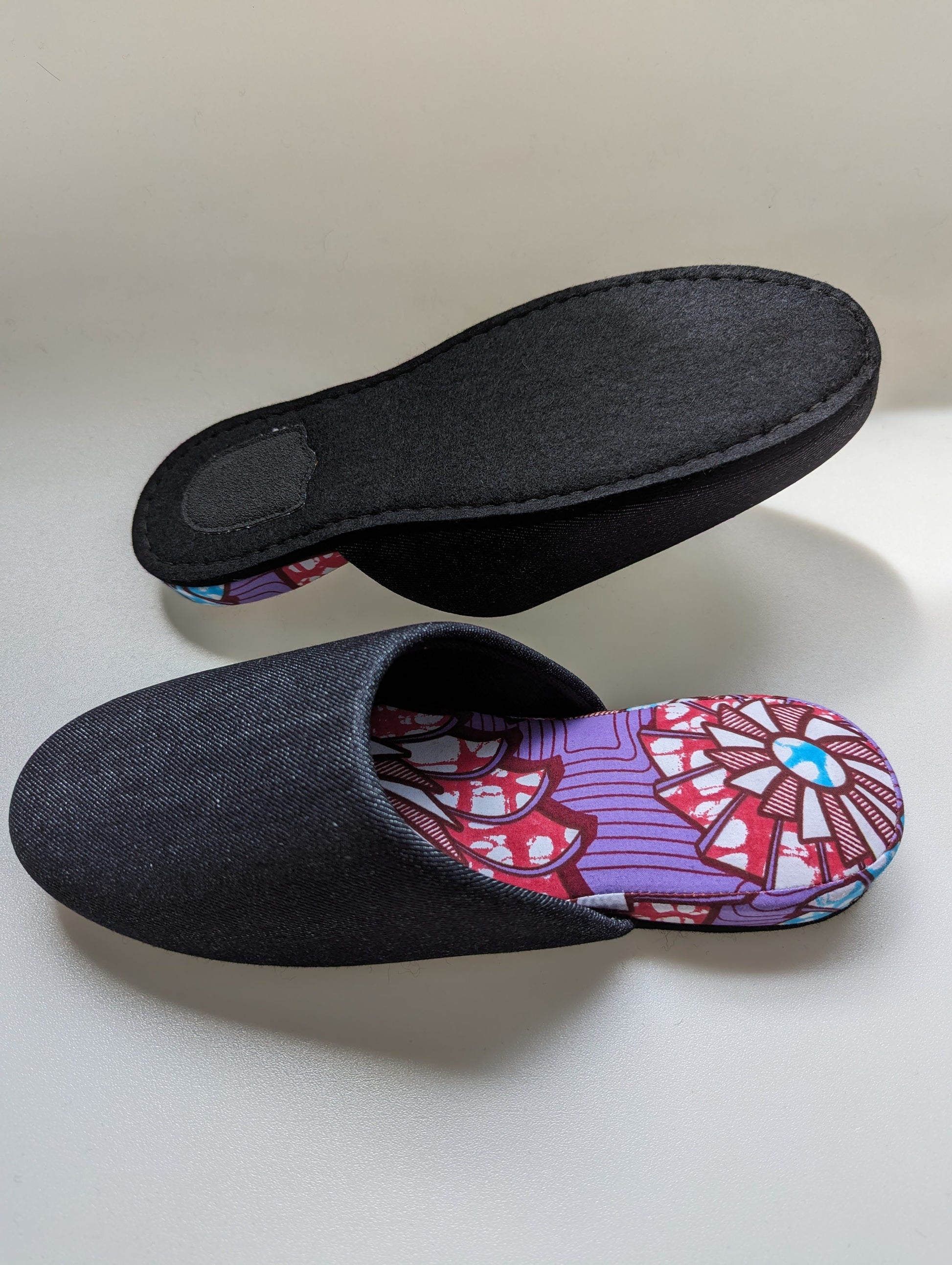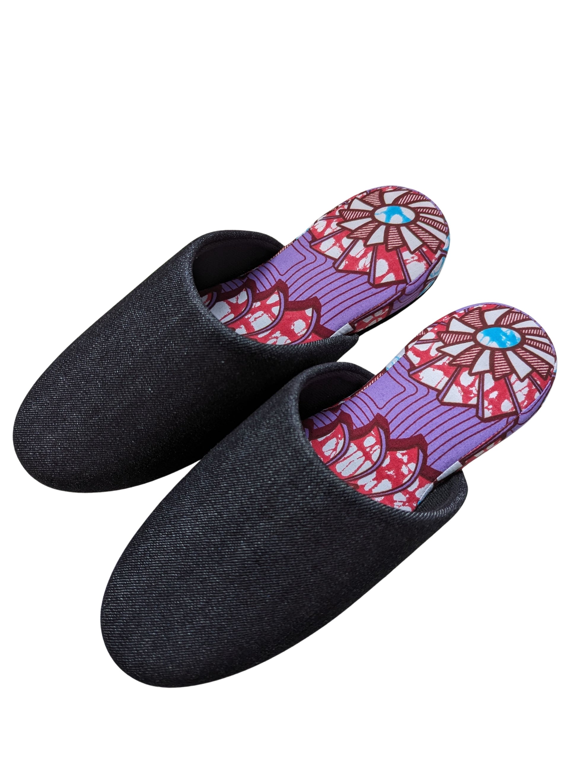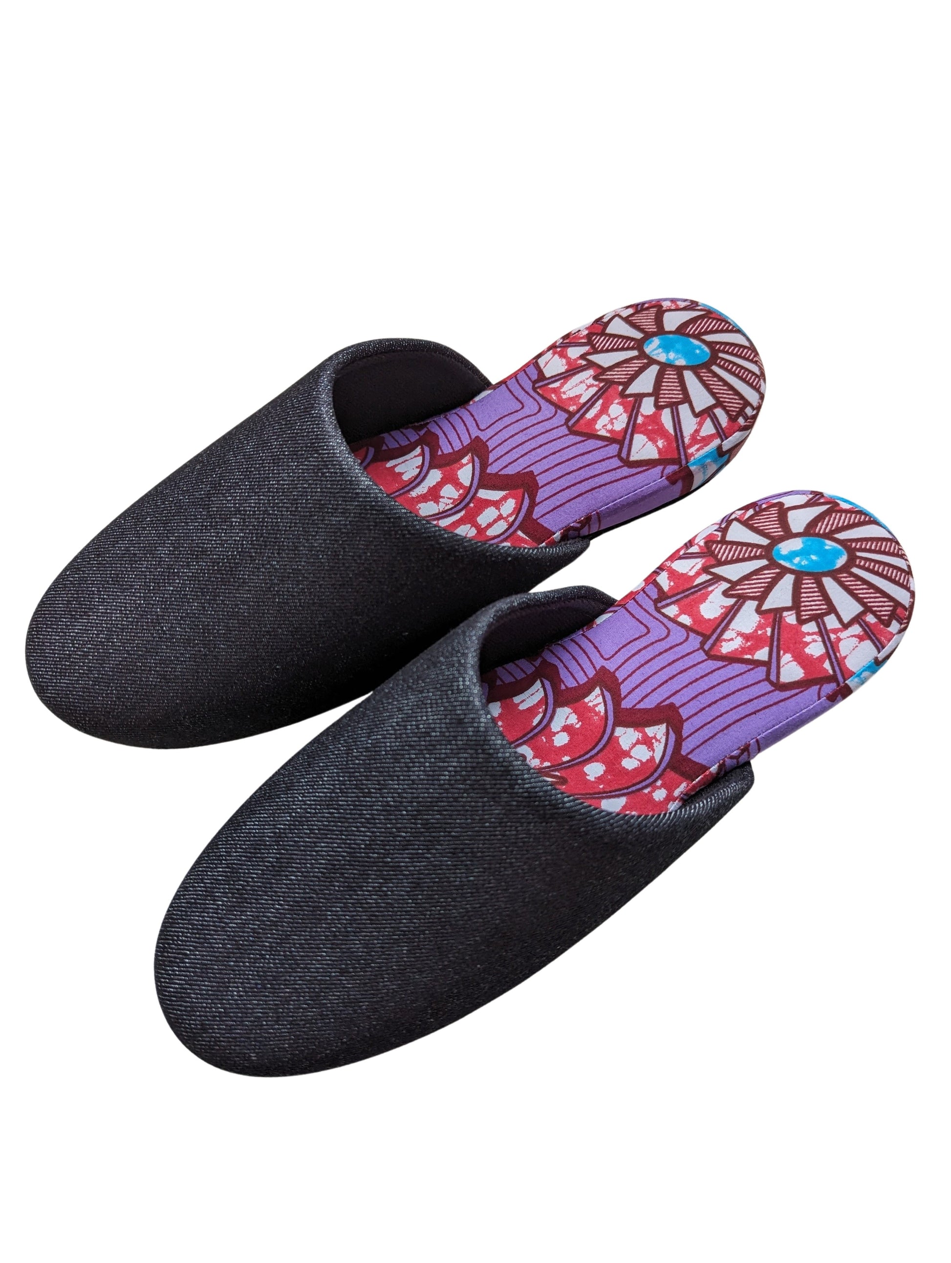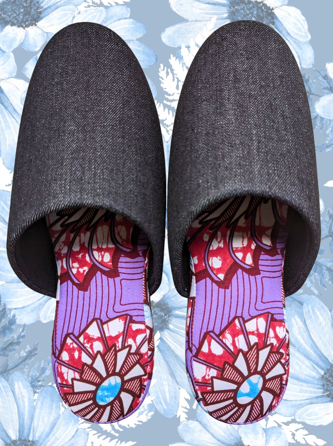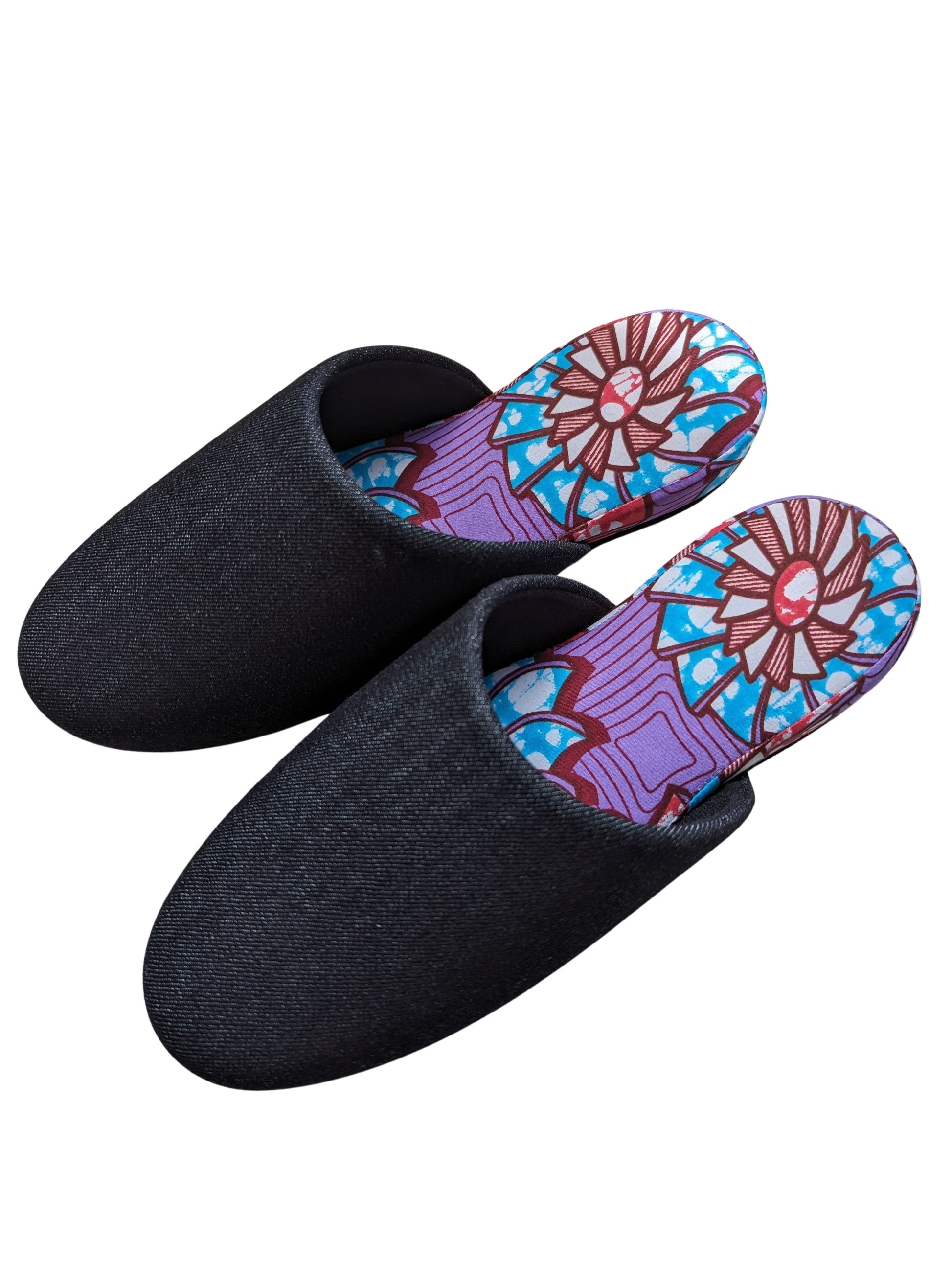 [SALE] Large| Denim and Flowers Mix Slippers [Black wool felt sole]