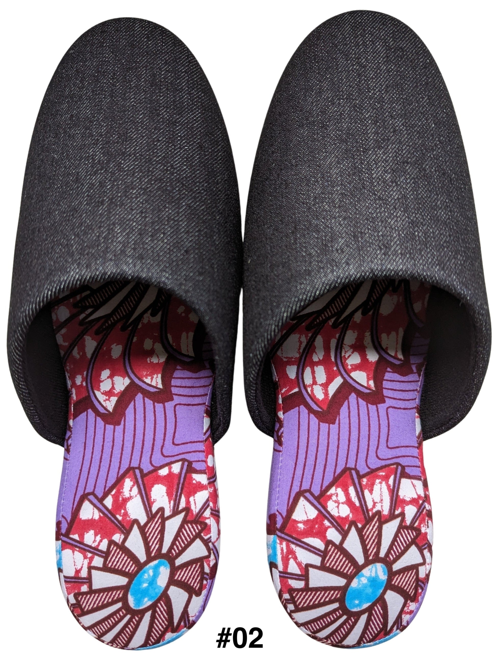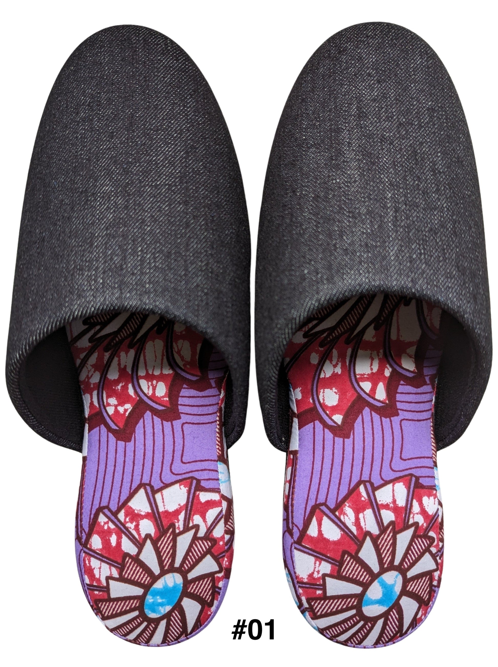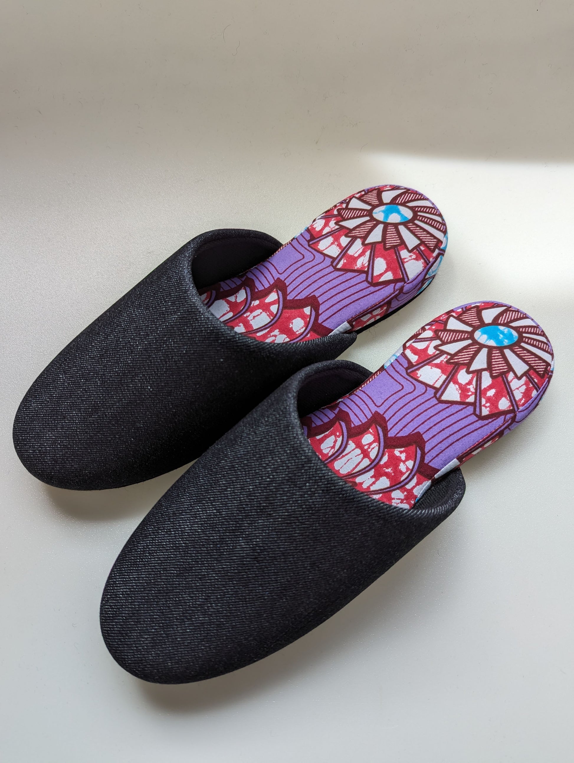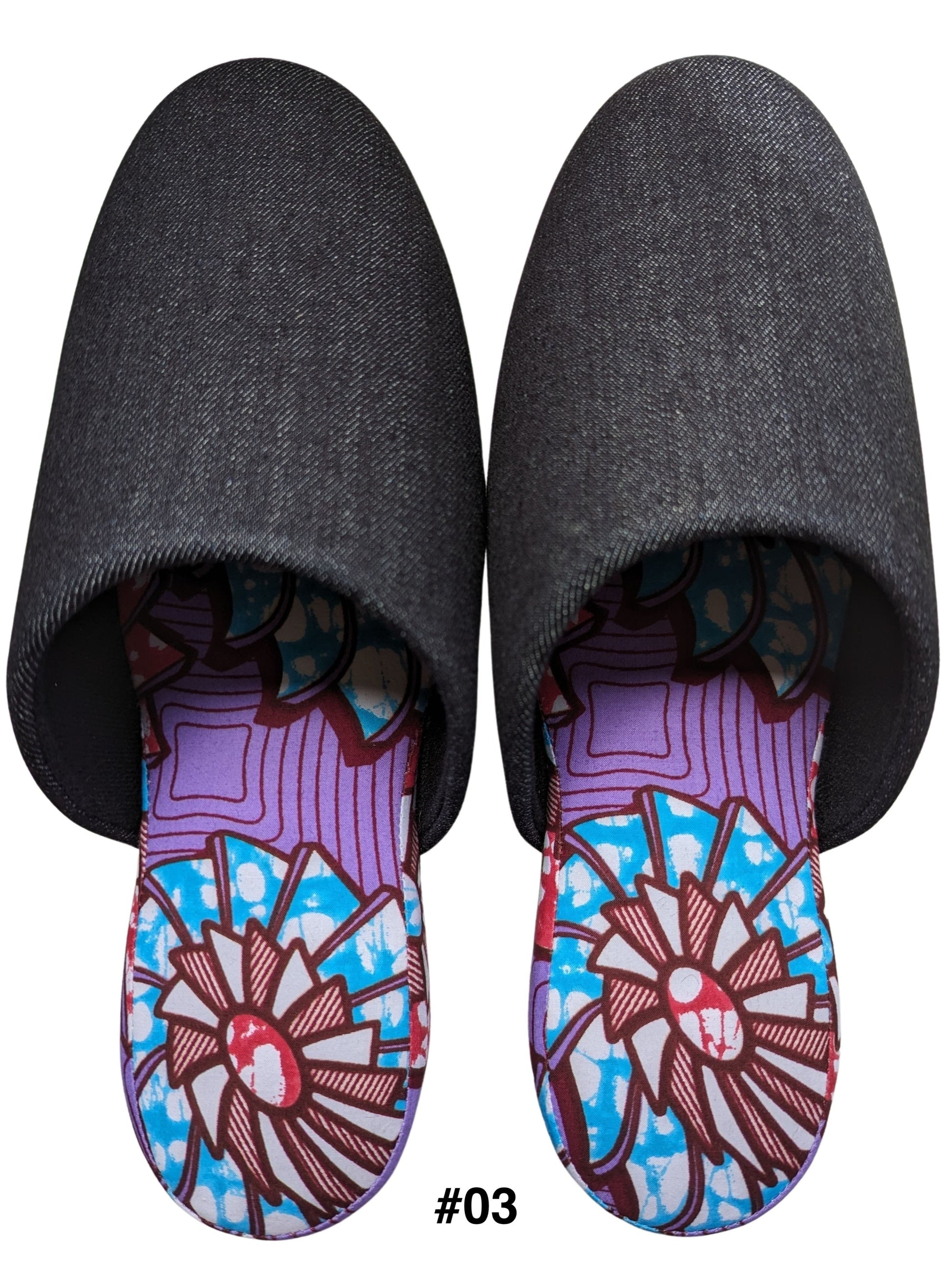 [SALE] Large | Denim and Flowers Mix Slippers #055 [Black wool felt sole]