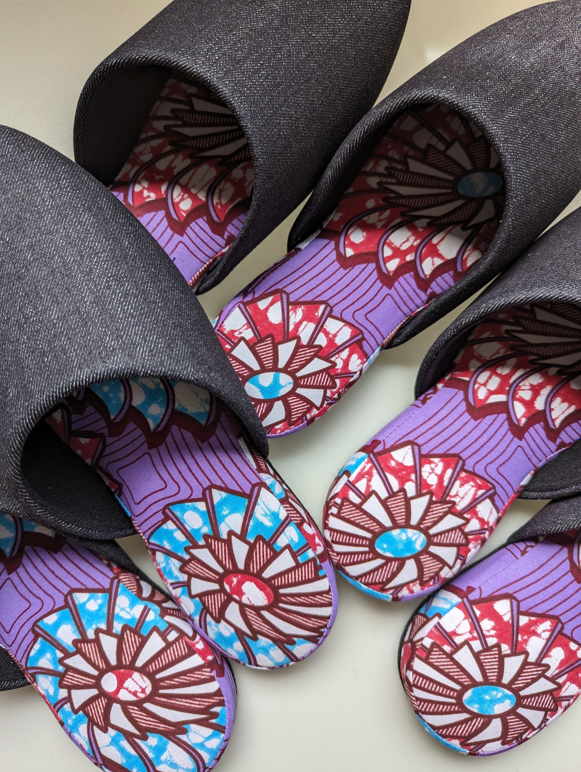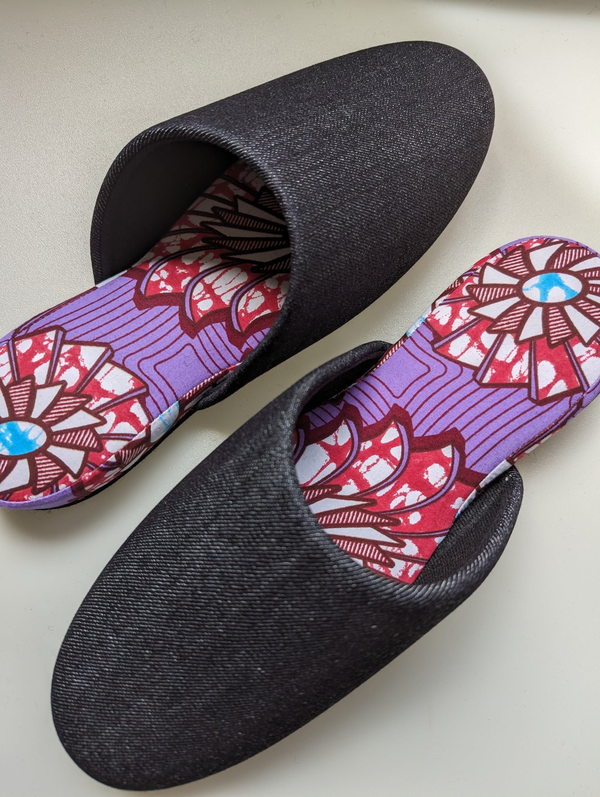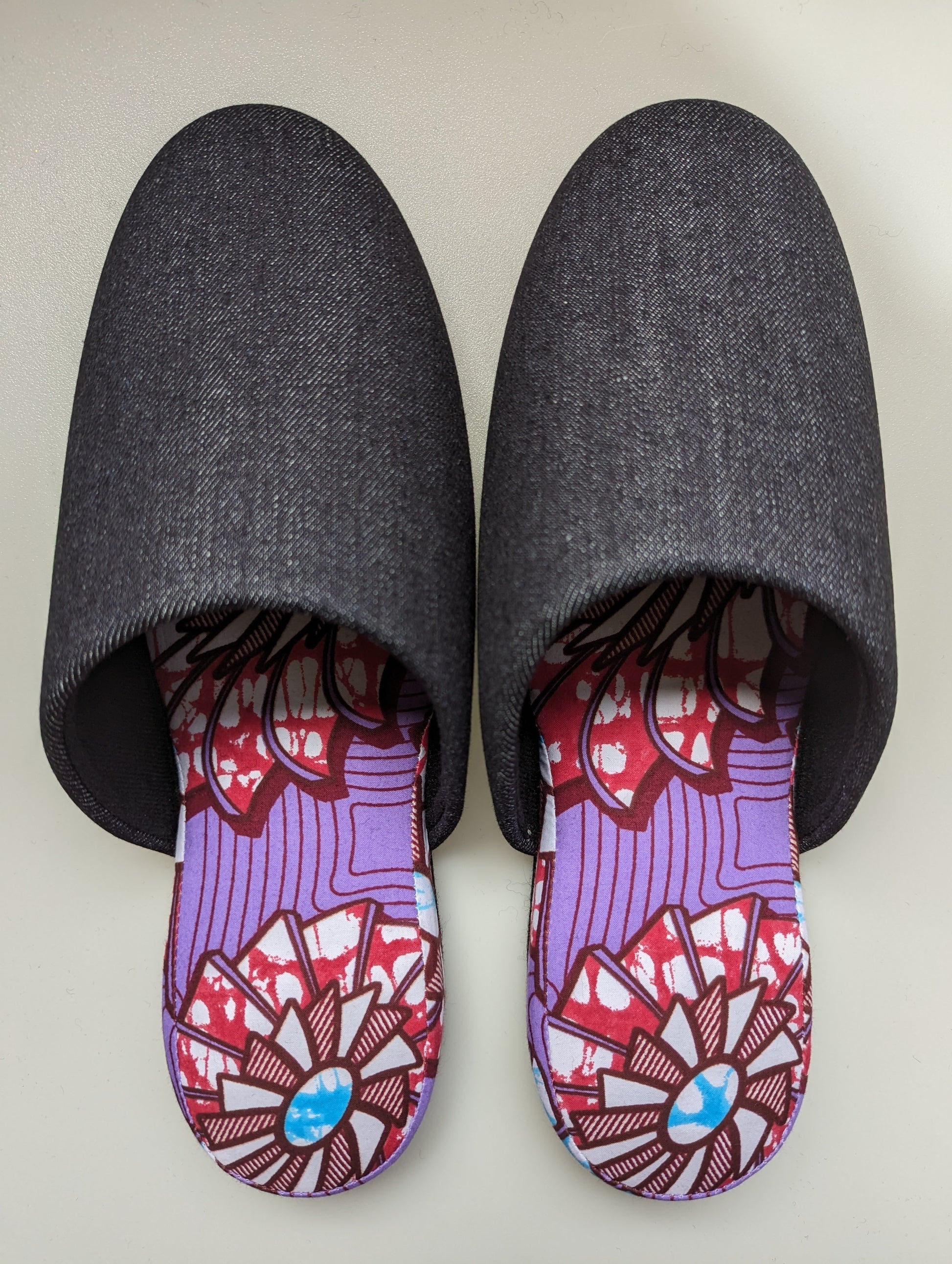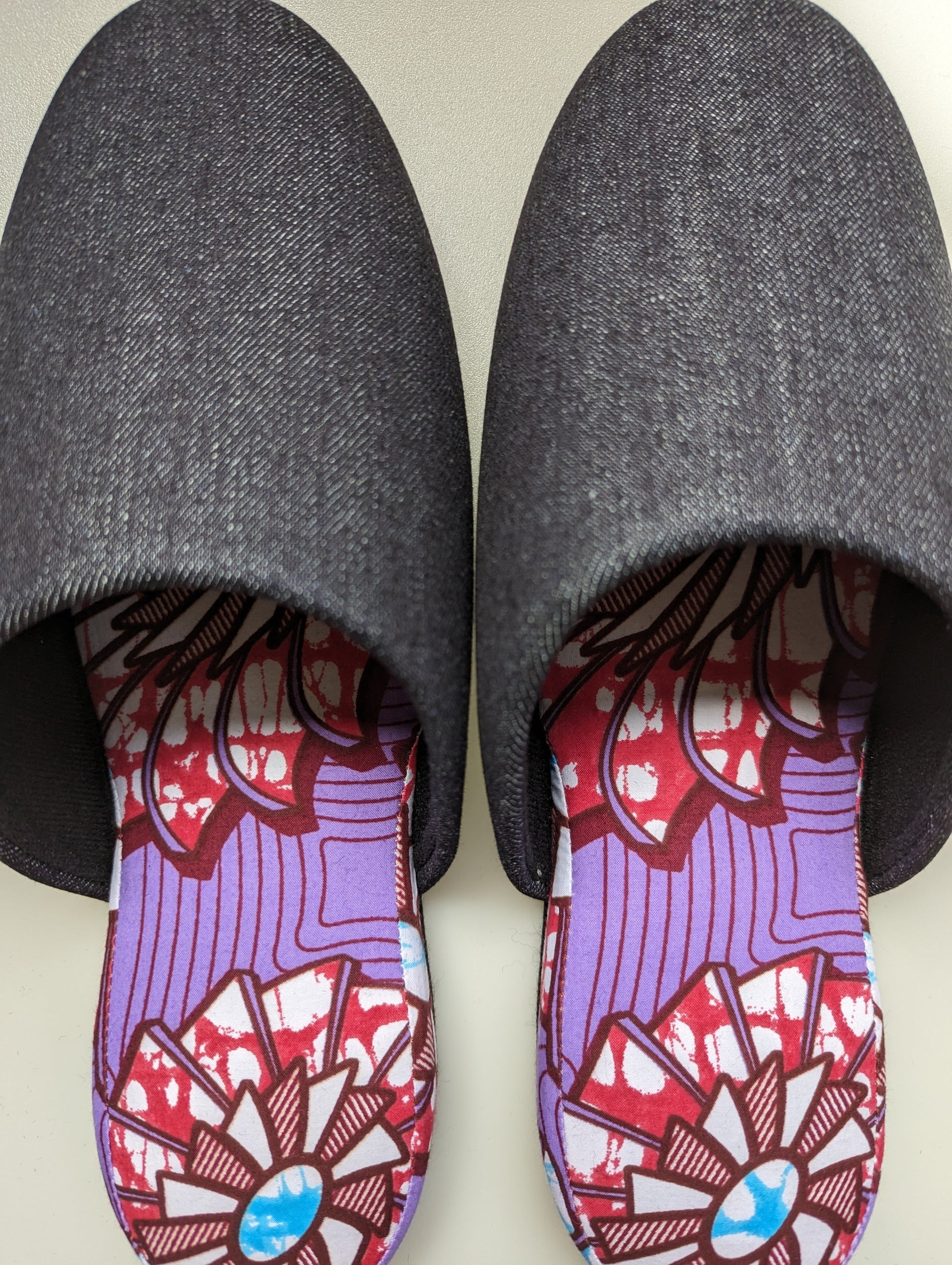 [SALE] Large | Denim and Flowers Mix Slippers #055 [Black wool felt sole]