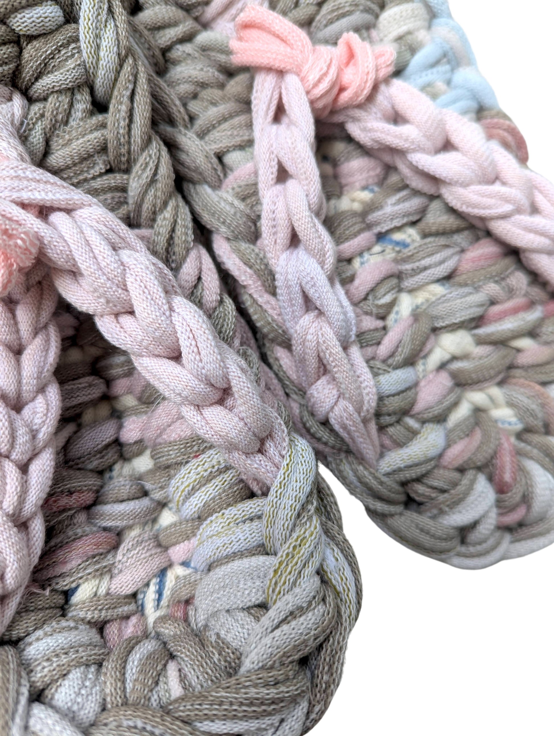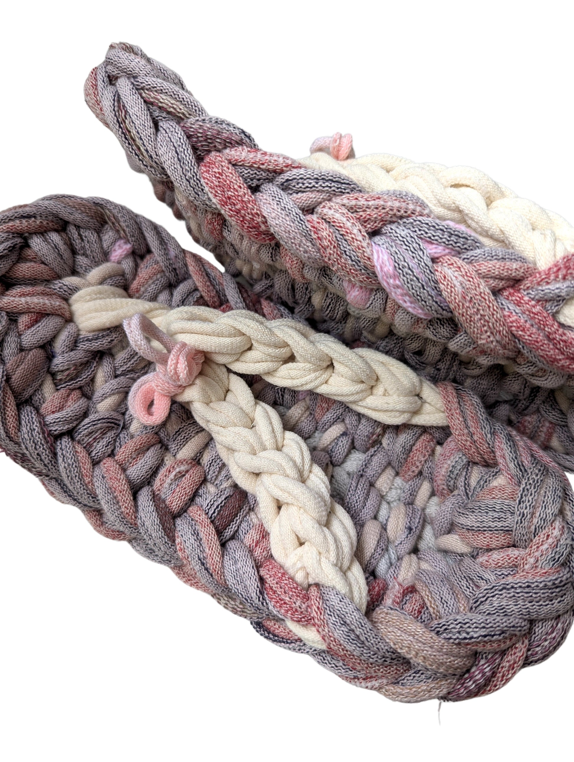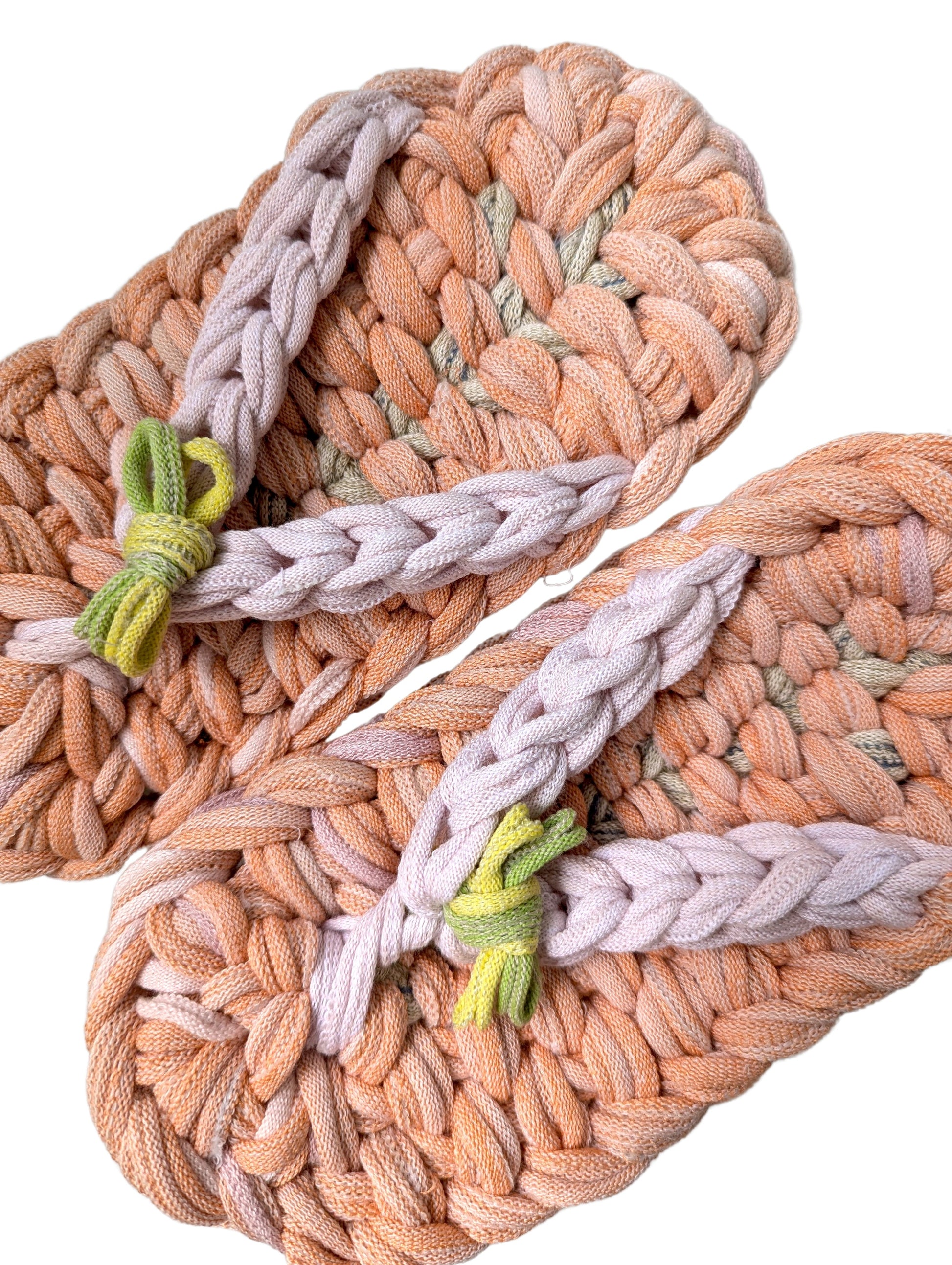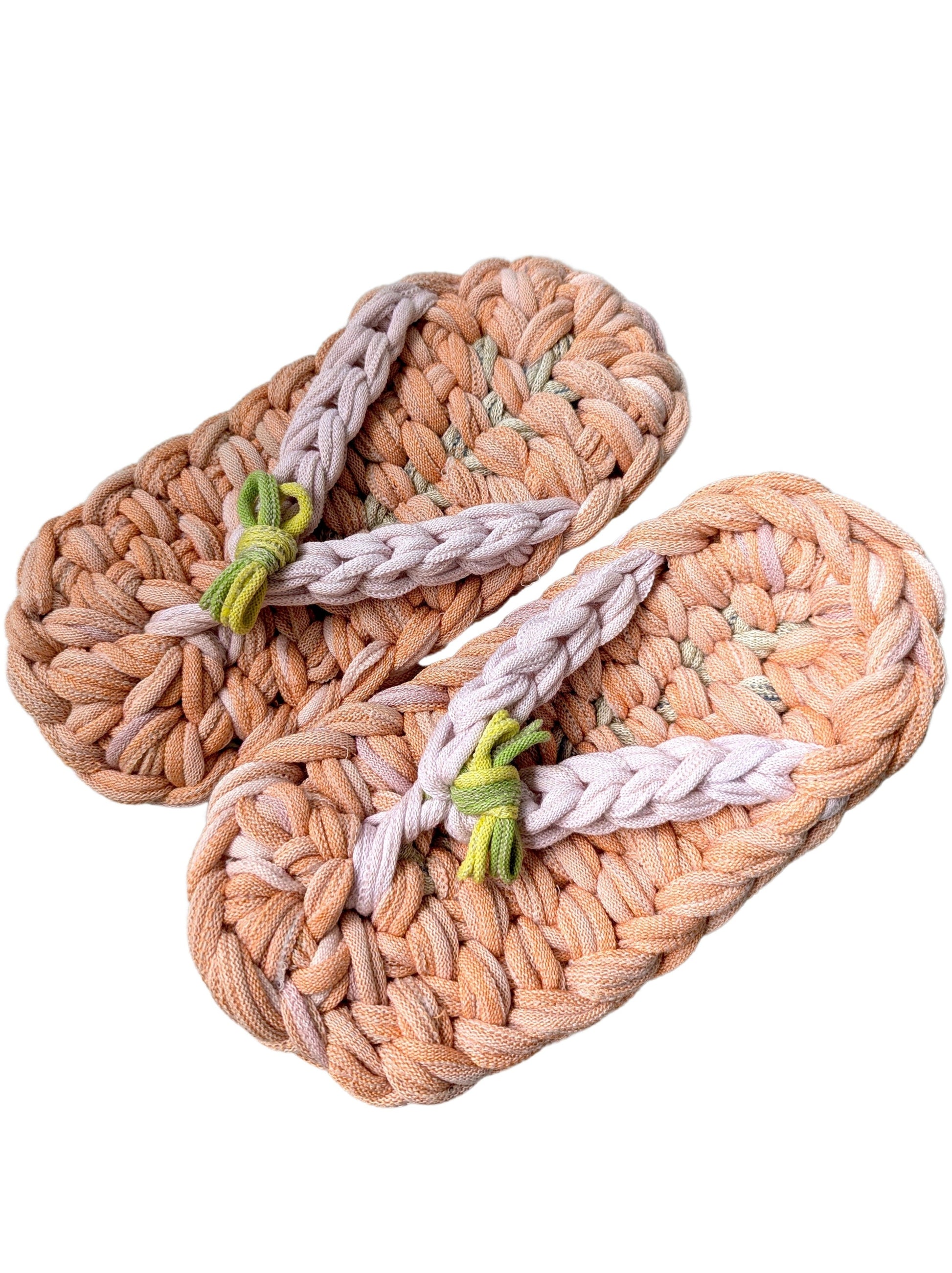 These slippers are made from recycled scraps of fabric discarded by a knitted items factory. As they are made from recycled materials, the size and colour of individual slippers in a pair may have some minute discrepancies. These slippers are elastic. We would recommend these slippers for when you want to relax, or make yourself comfortable.