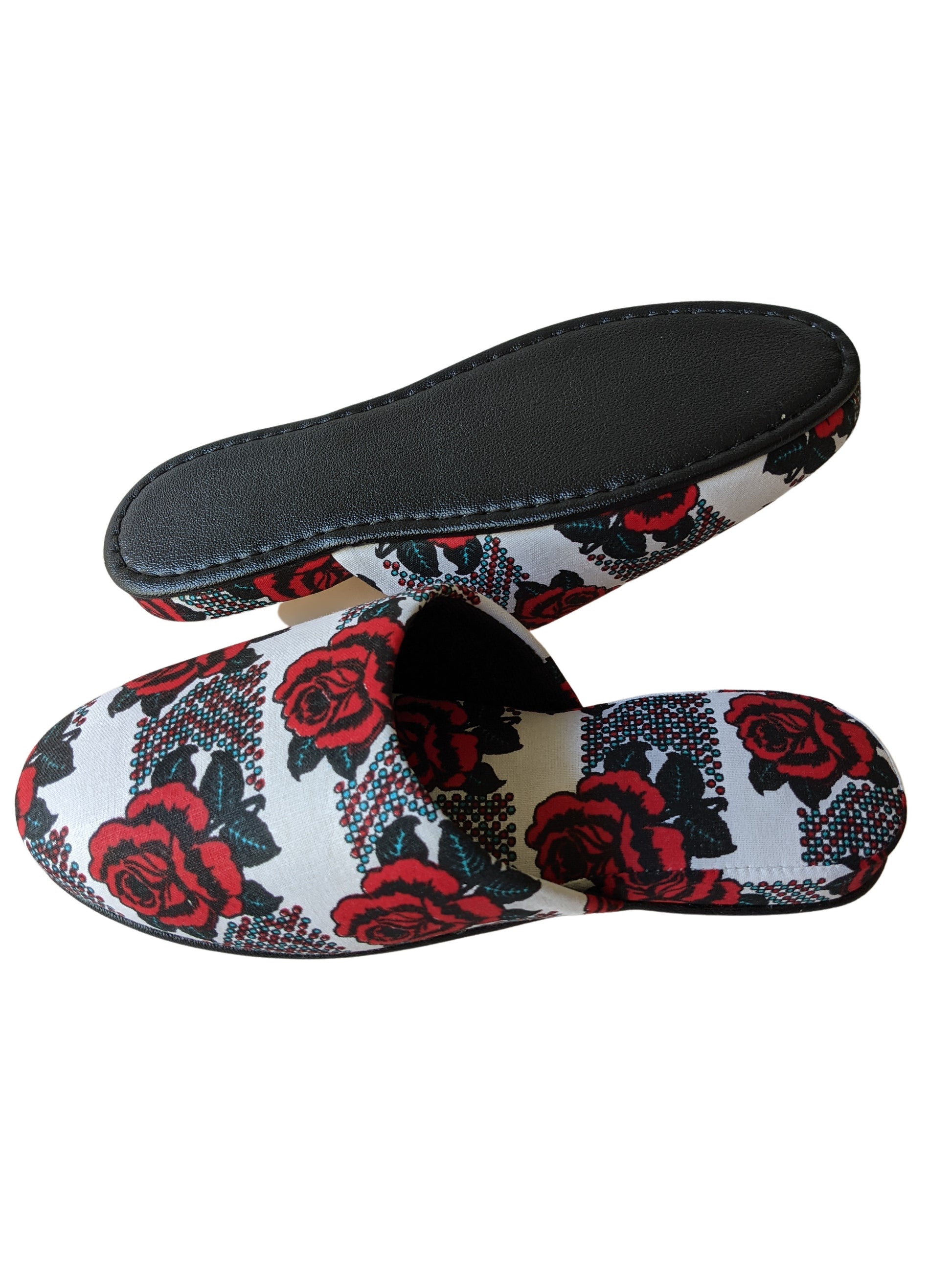 Medium Rose Print Mix Slippers [vinyl sole] Rose-M06 [Size Medium] Rose M06