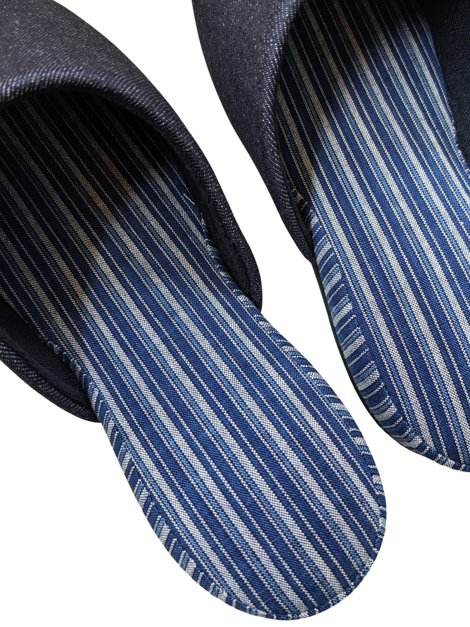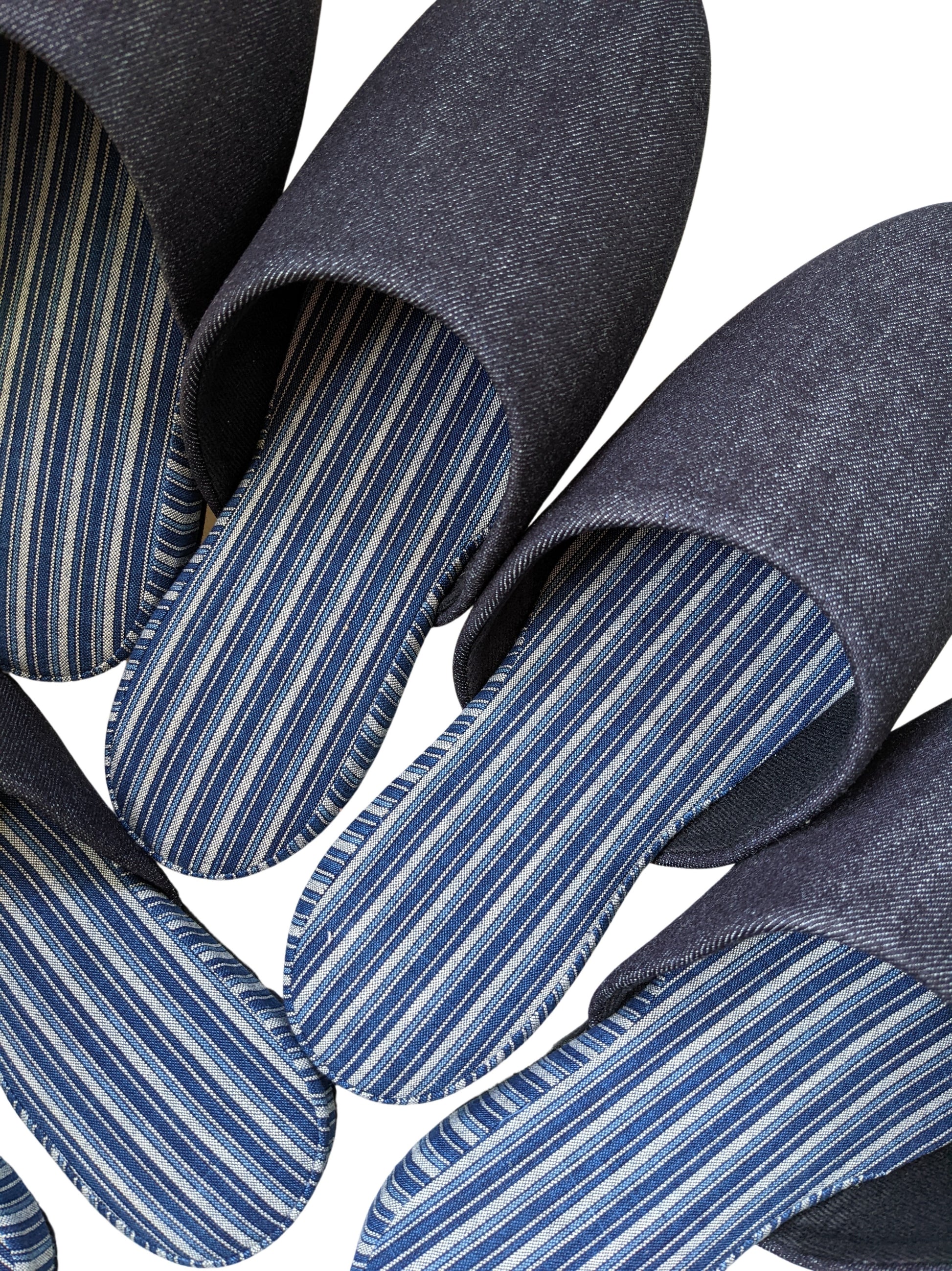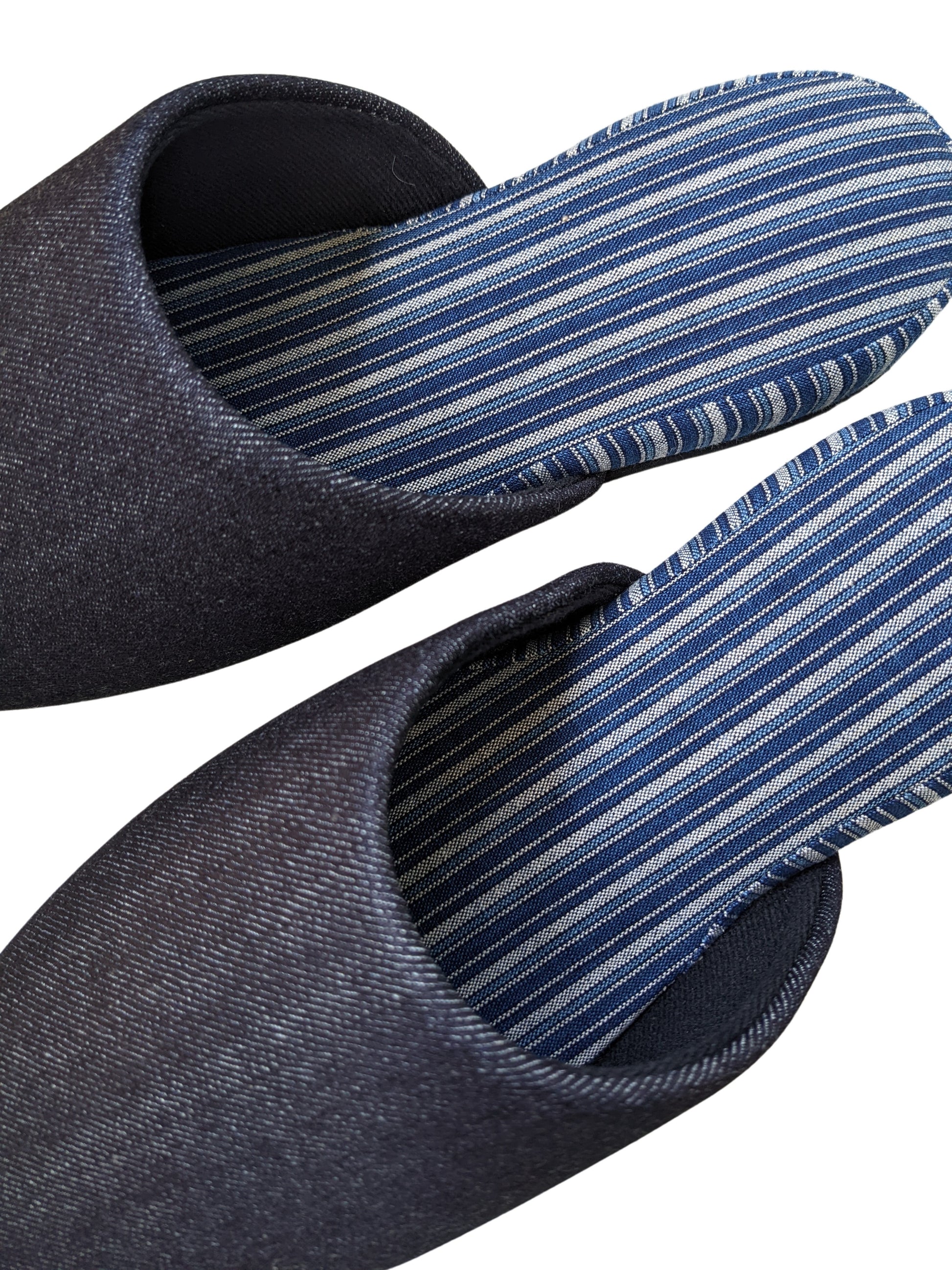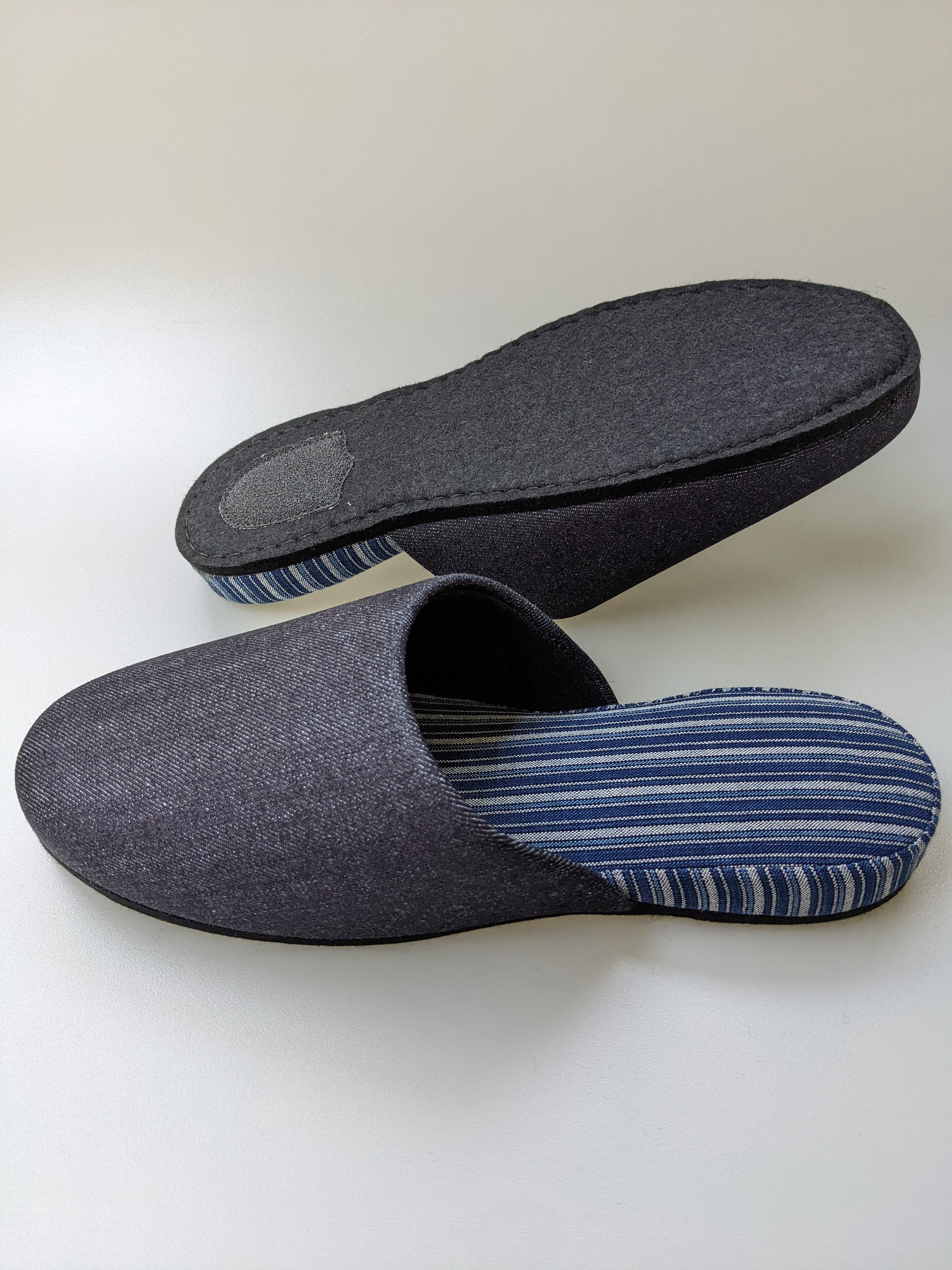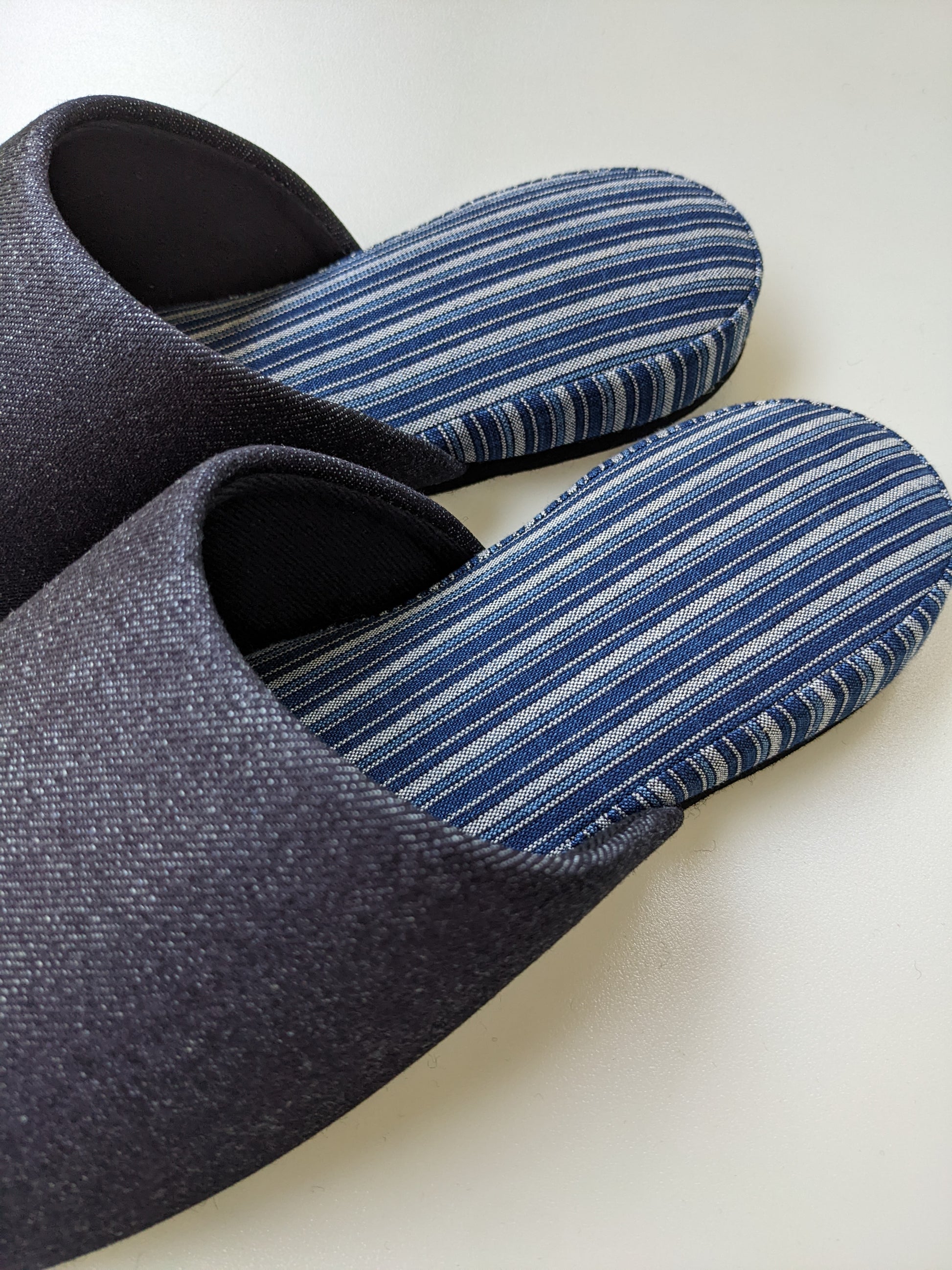 ![Denim Stripe Mix Slippers [Black wool felt sole] (Japan Blue Stripe B) 3 size Medium / Large / XL](http://heiwaslipper.com/cdn/shop/products/PXL_20220625_013846485.jpg?v=1656307019&width=1445)