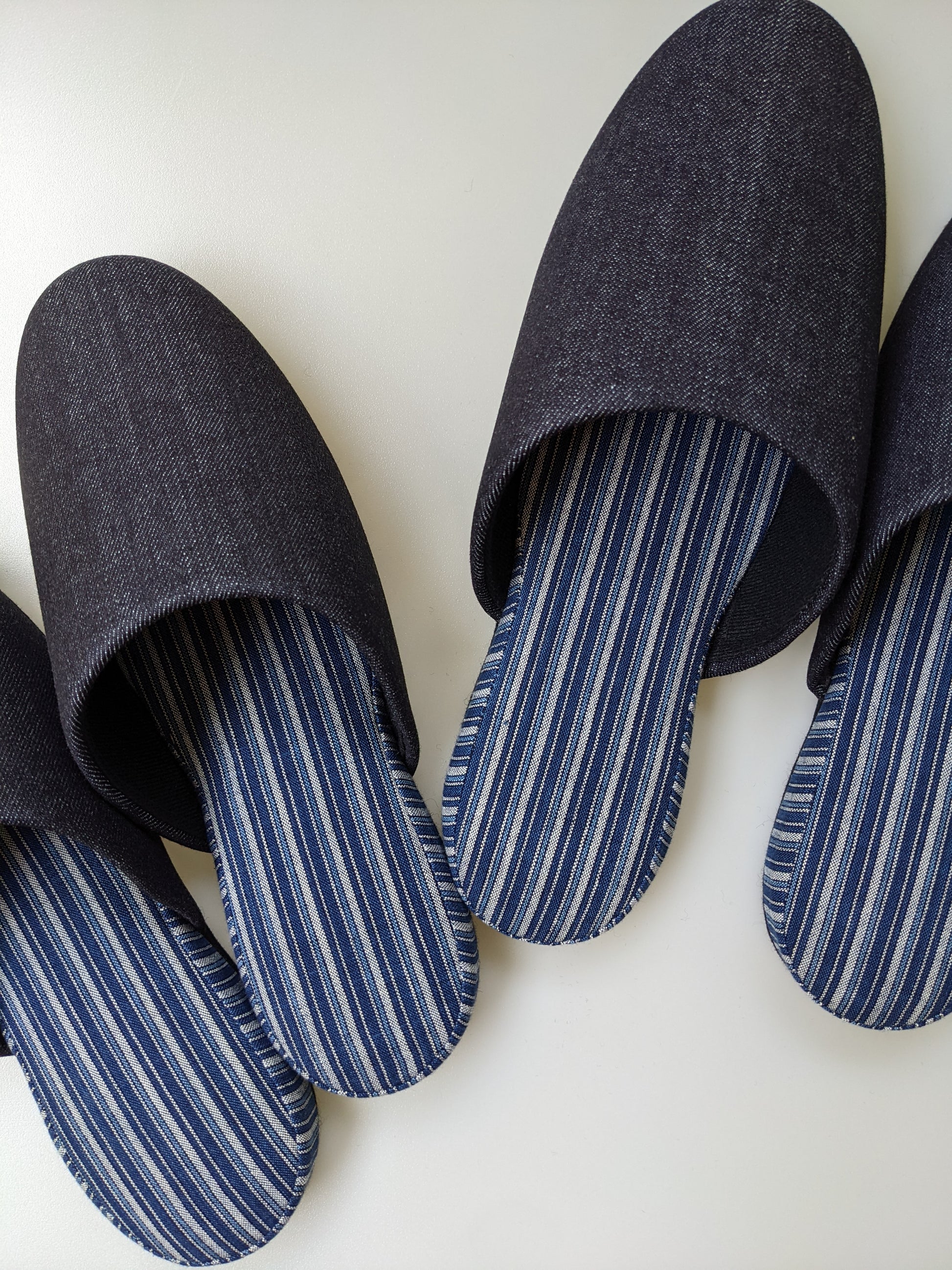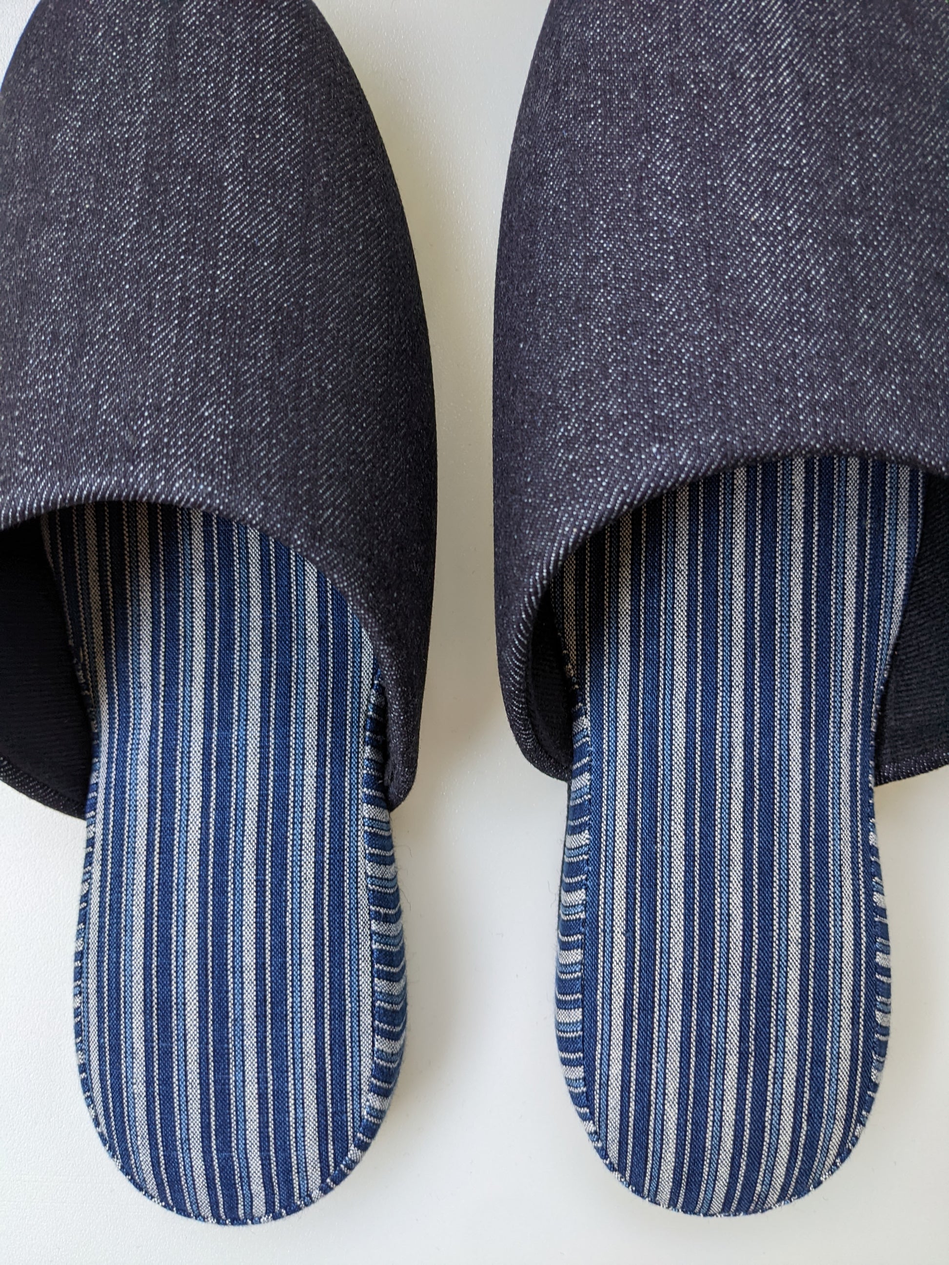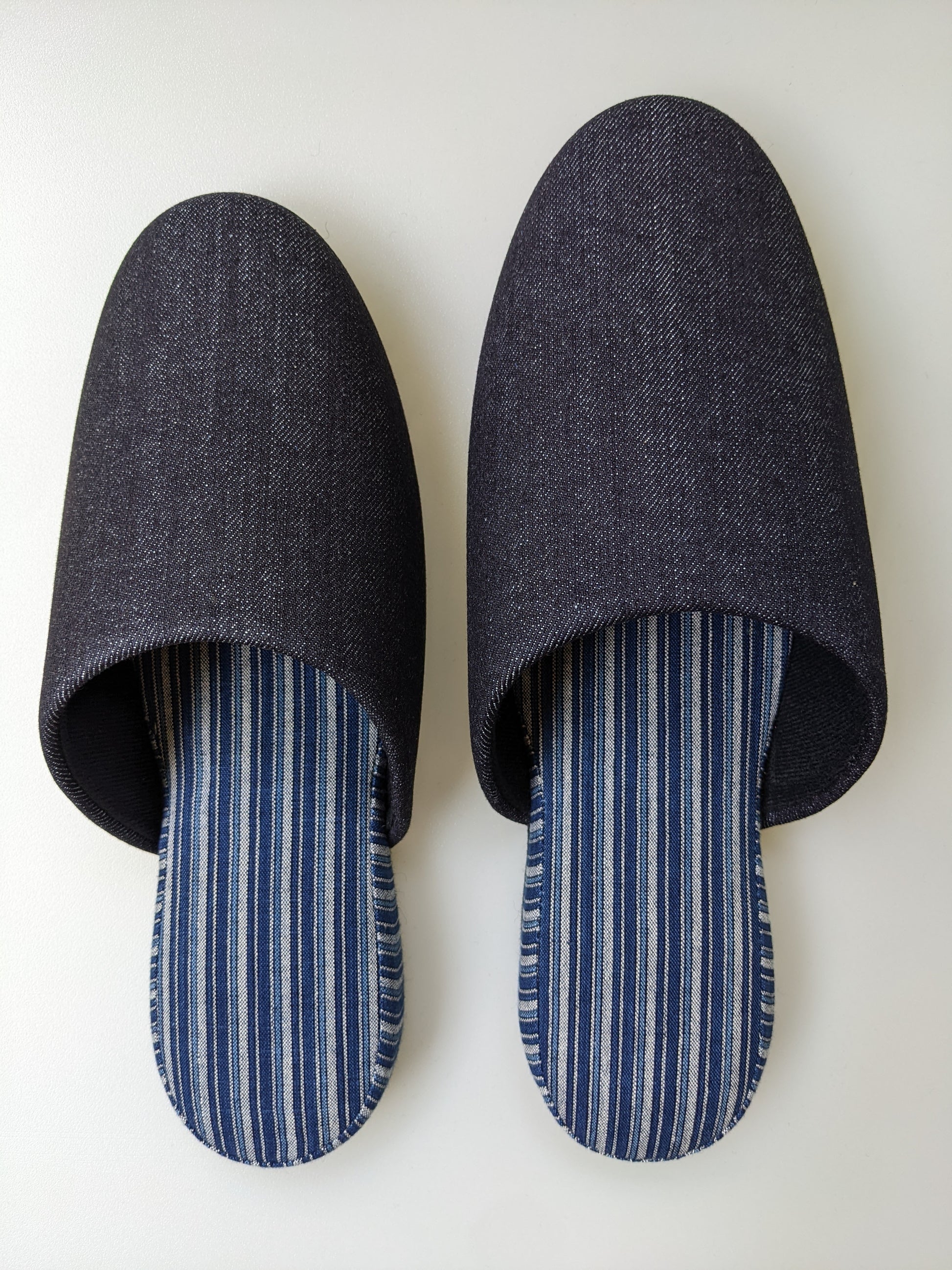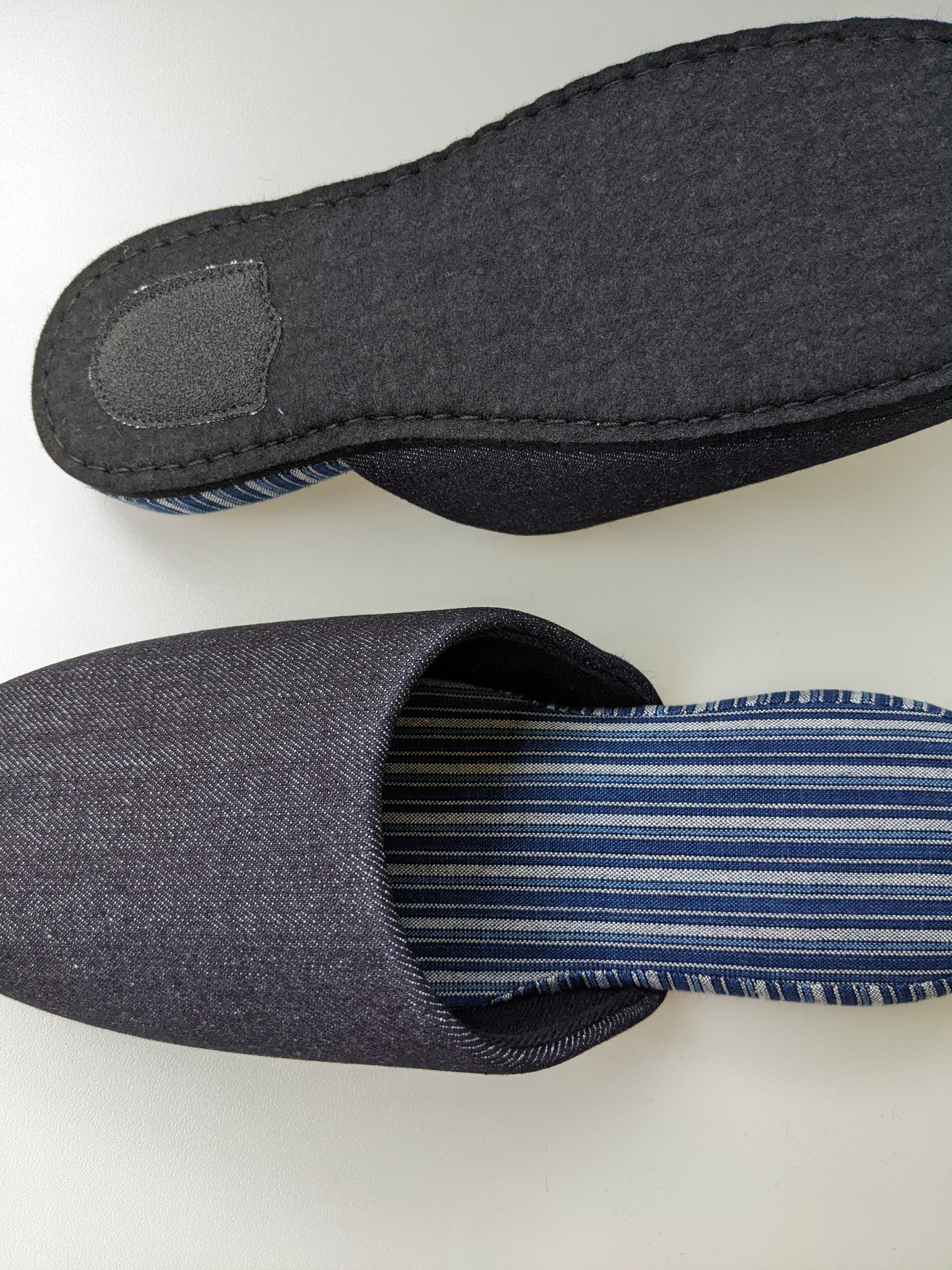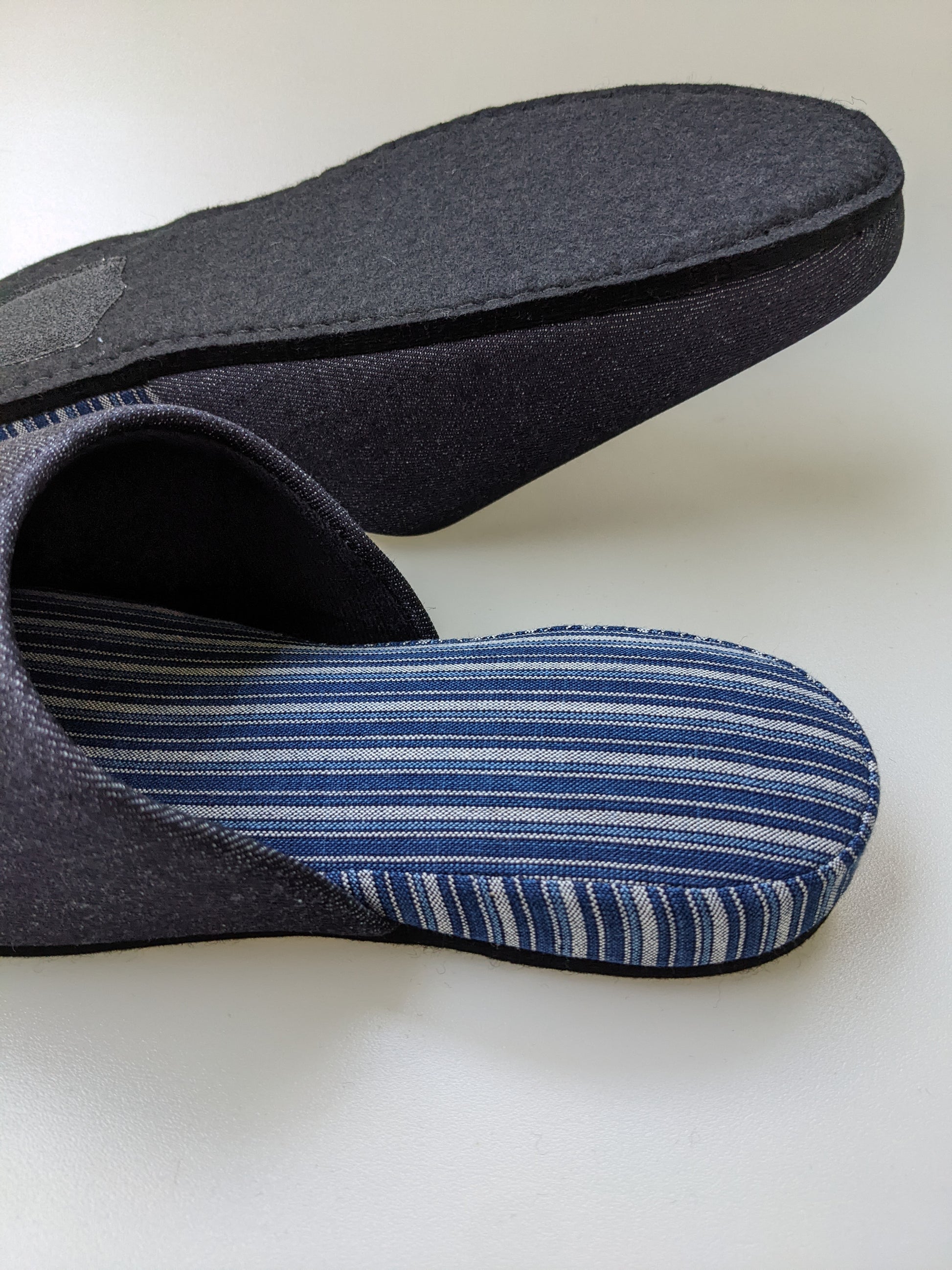 ![Denim Stripe Mix Slippers [Black wool felt sole] (Japan Blue Stripe B) 3 size Medium / Large / XL](http://heiwaslipper.com/cdn/shop/products/PXL_20220625_013846485.jpg?v=1656307019&width=1445)