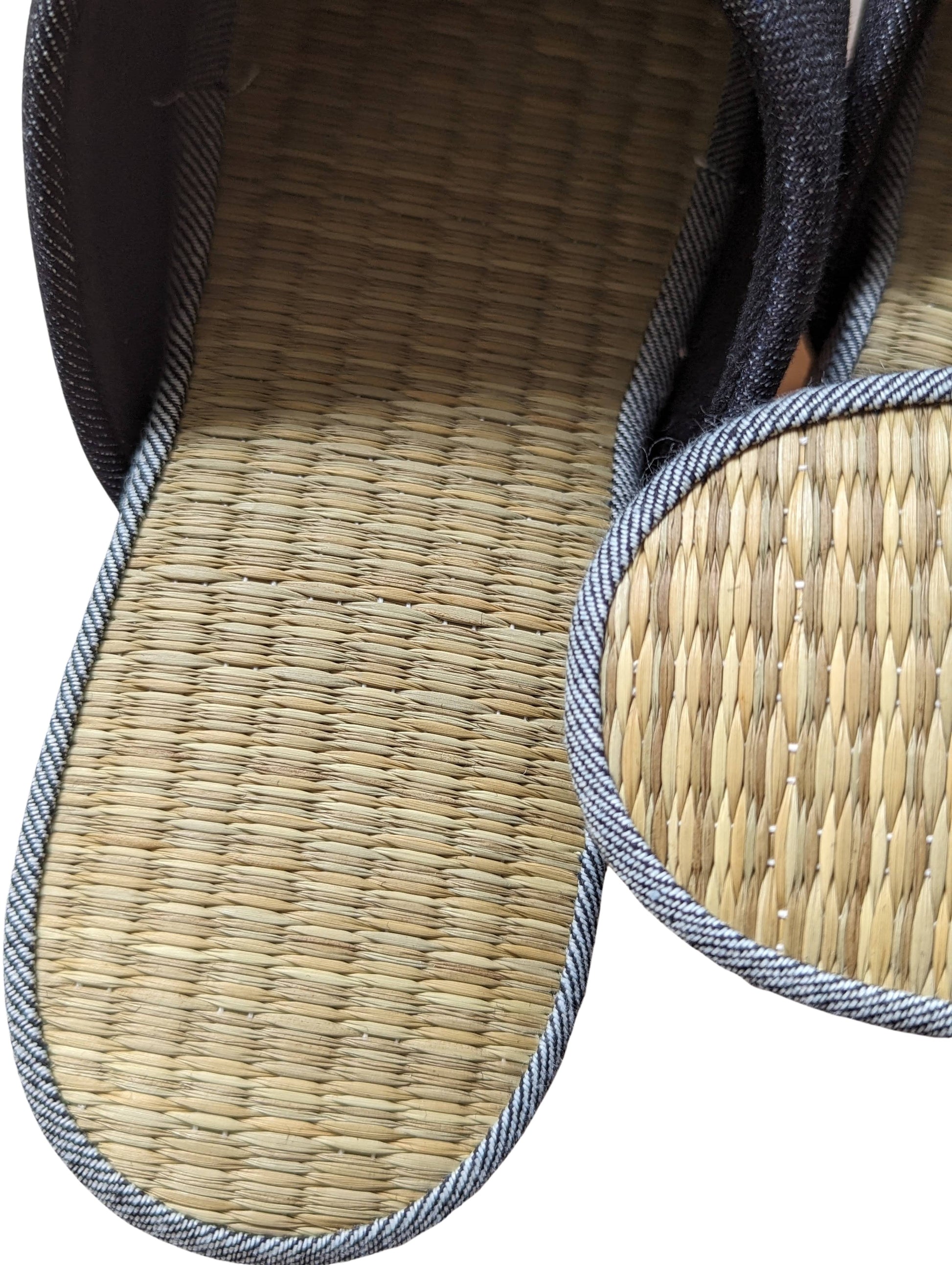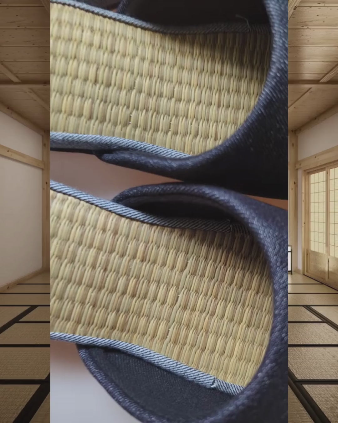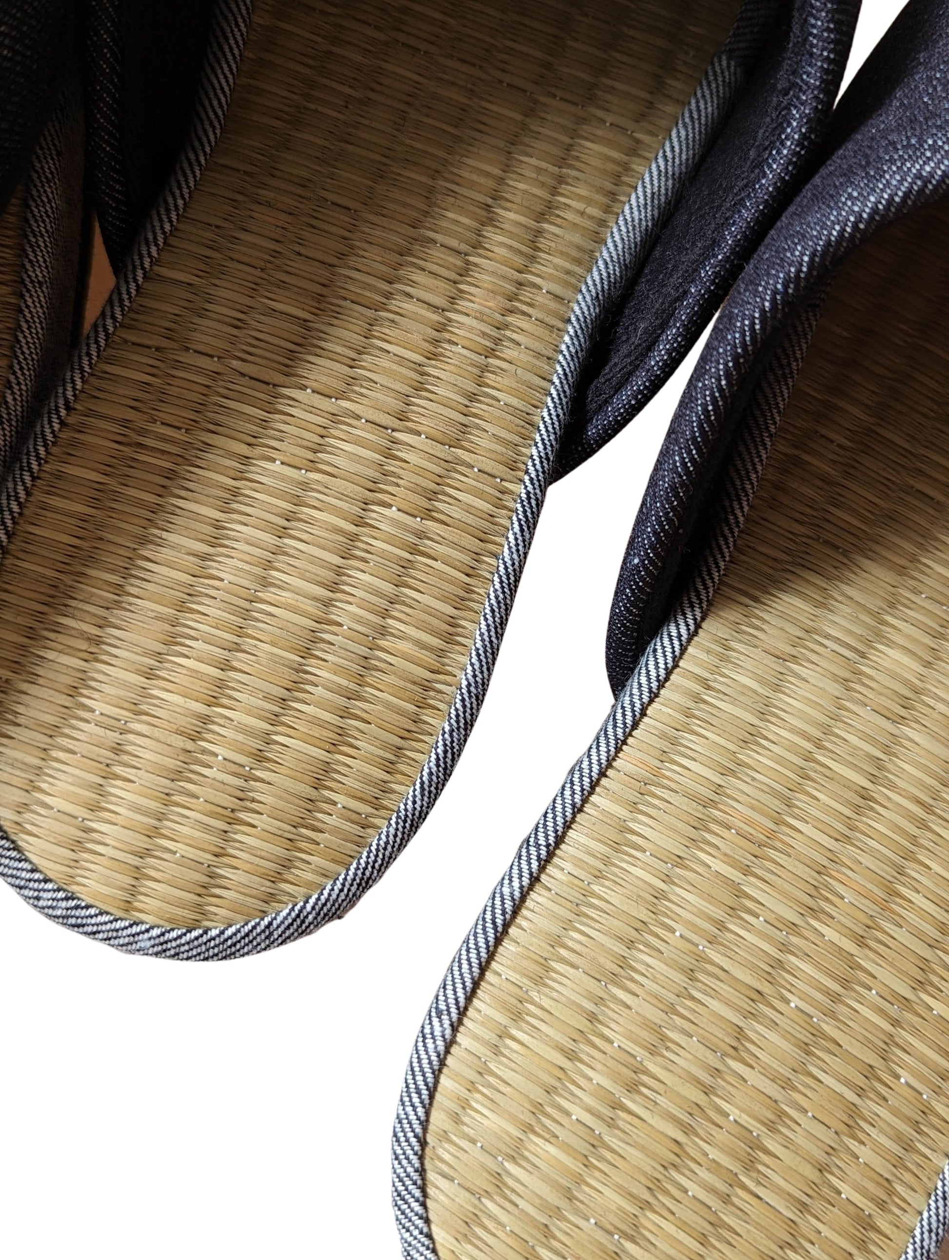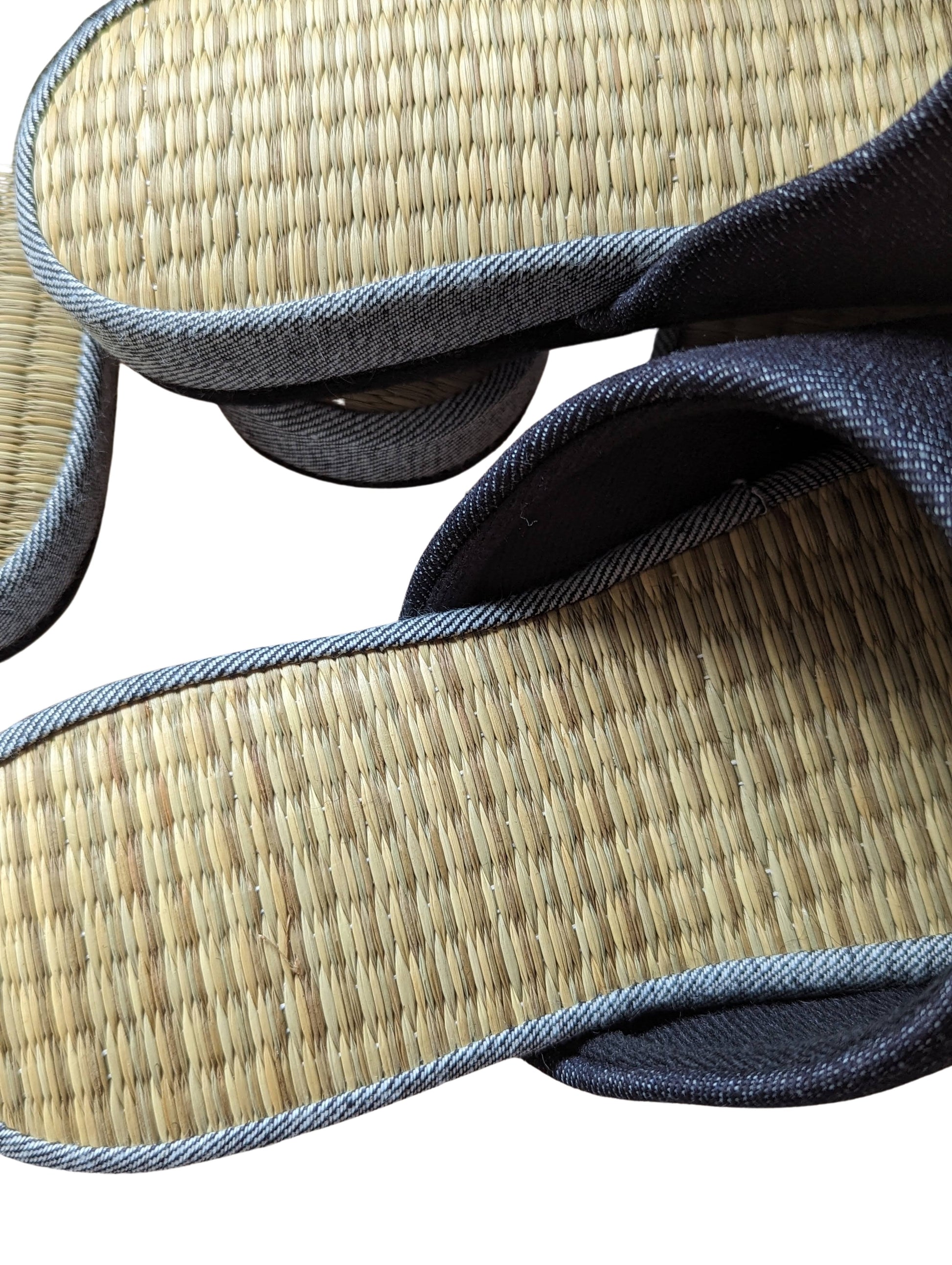 Material: Cotton Denim ,Japanese Tatami mat sole, wool felt sole.