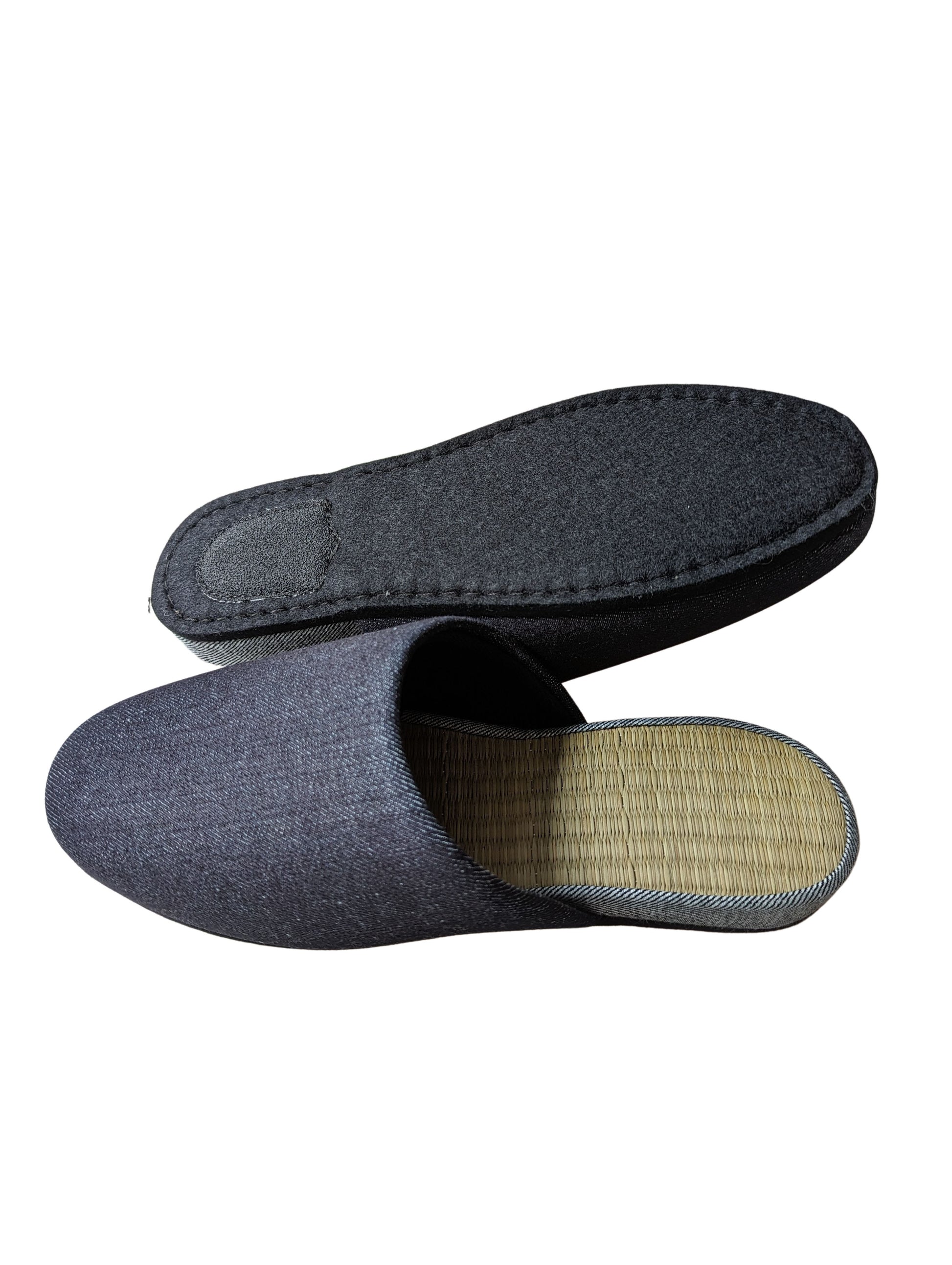 SALE Open-toe TATAMI Denim Slippers B-Type [Black Wool Felt Sole] / Simple [Denim Hiroshima]