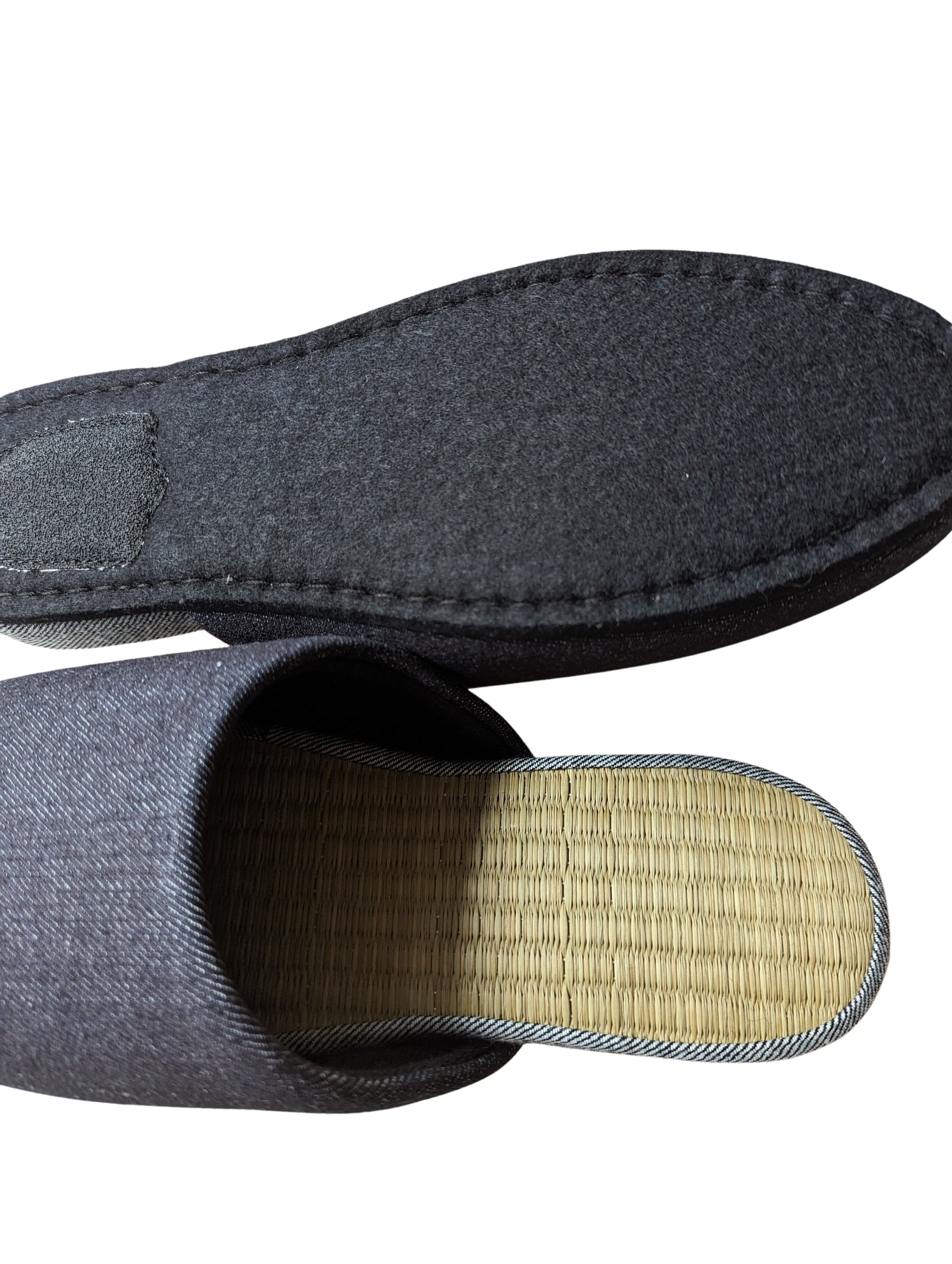 TATAMI Denim Slippers A-Type [Black Wool Felt Sole] / Simple [Denim Hiroshima]