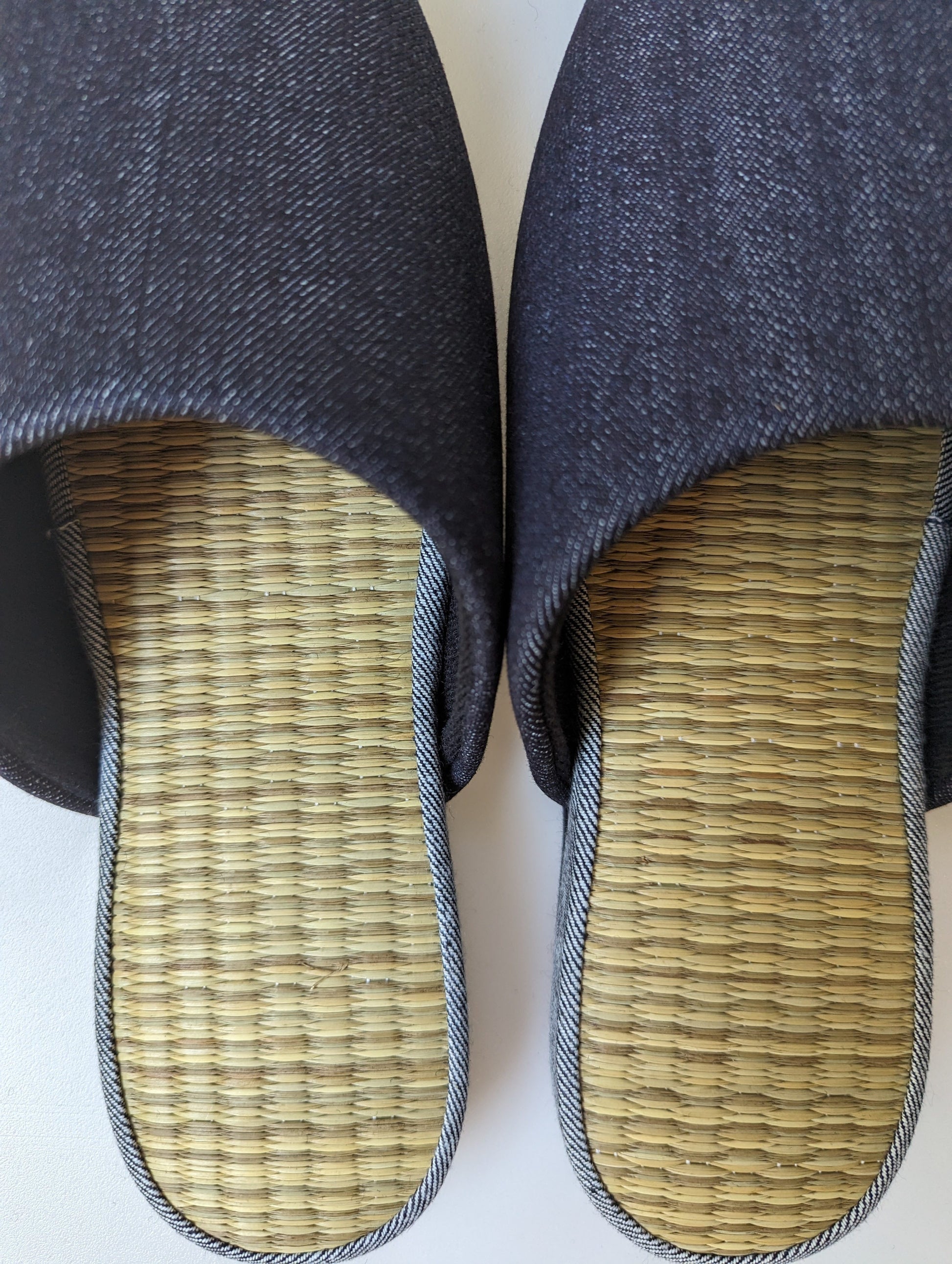 These slippers are tailored with a lot of simple Japanese Hiroshima denim.