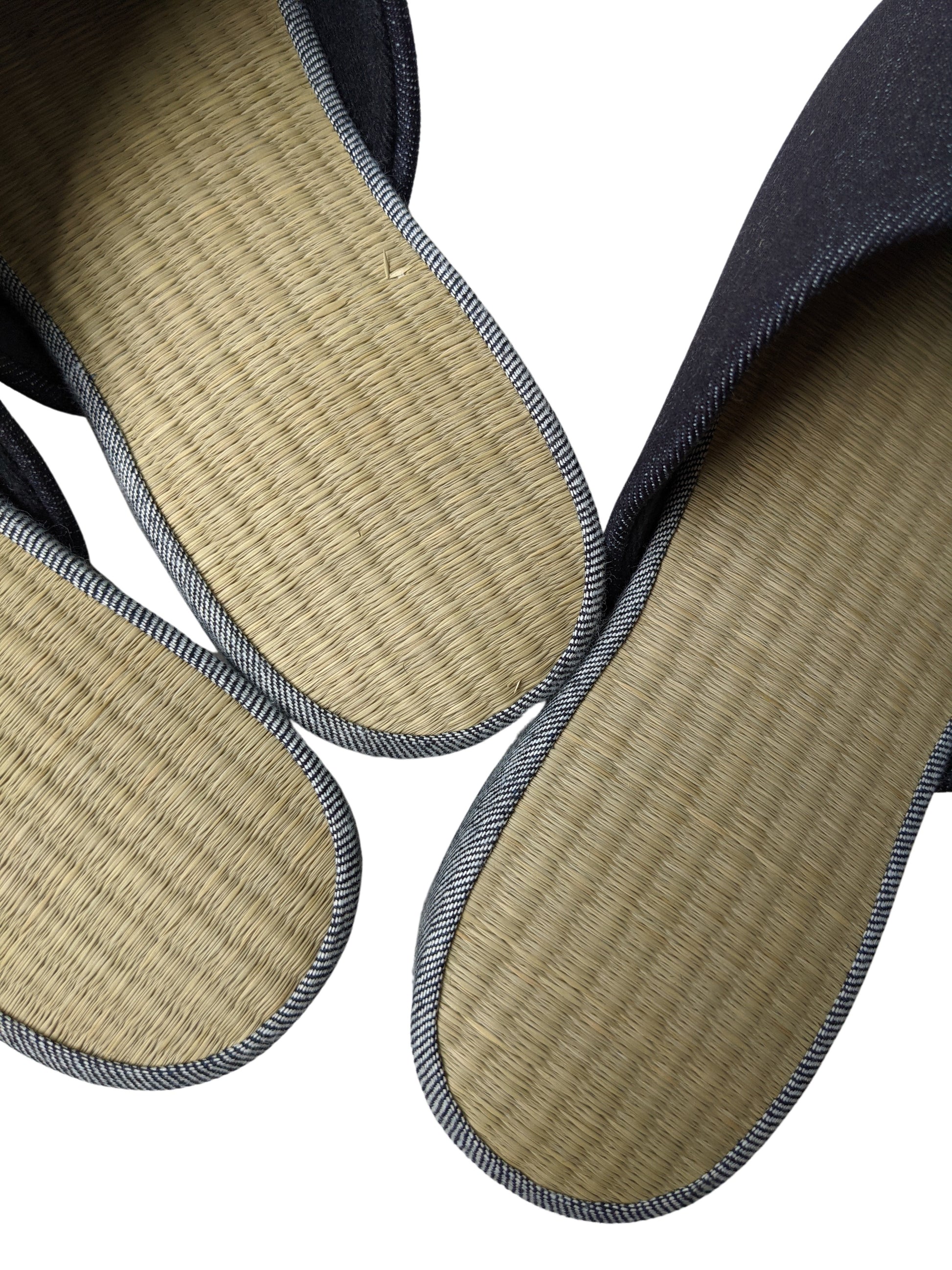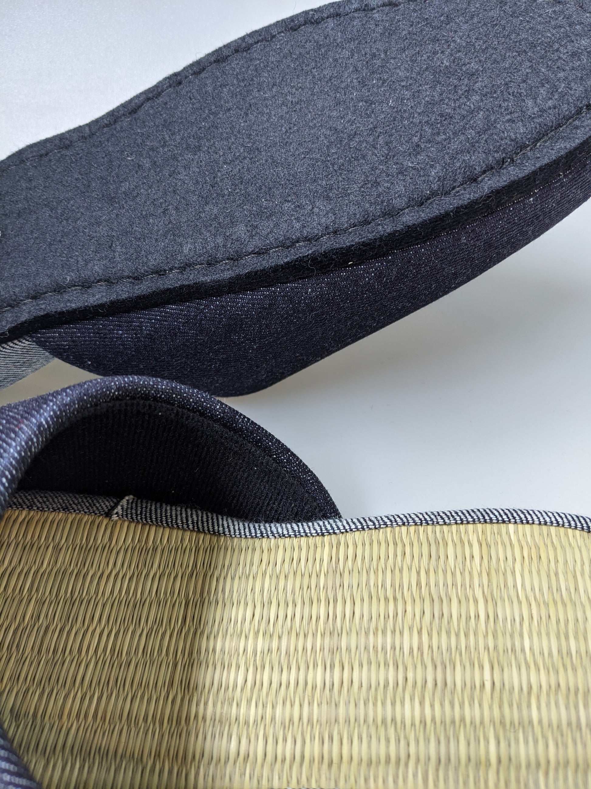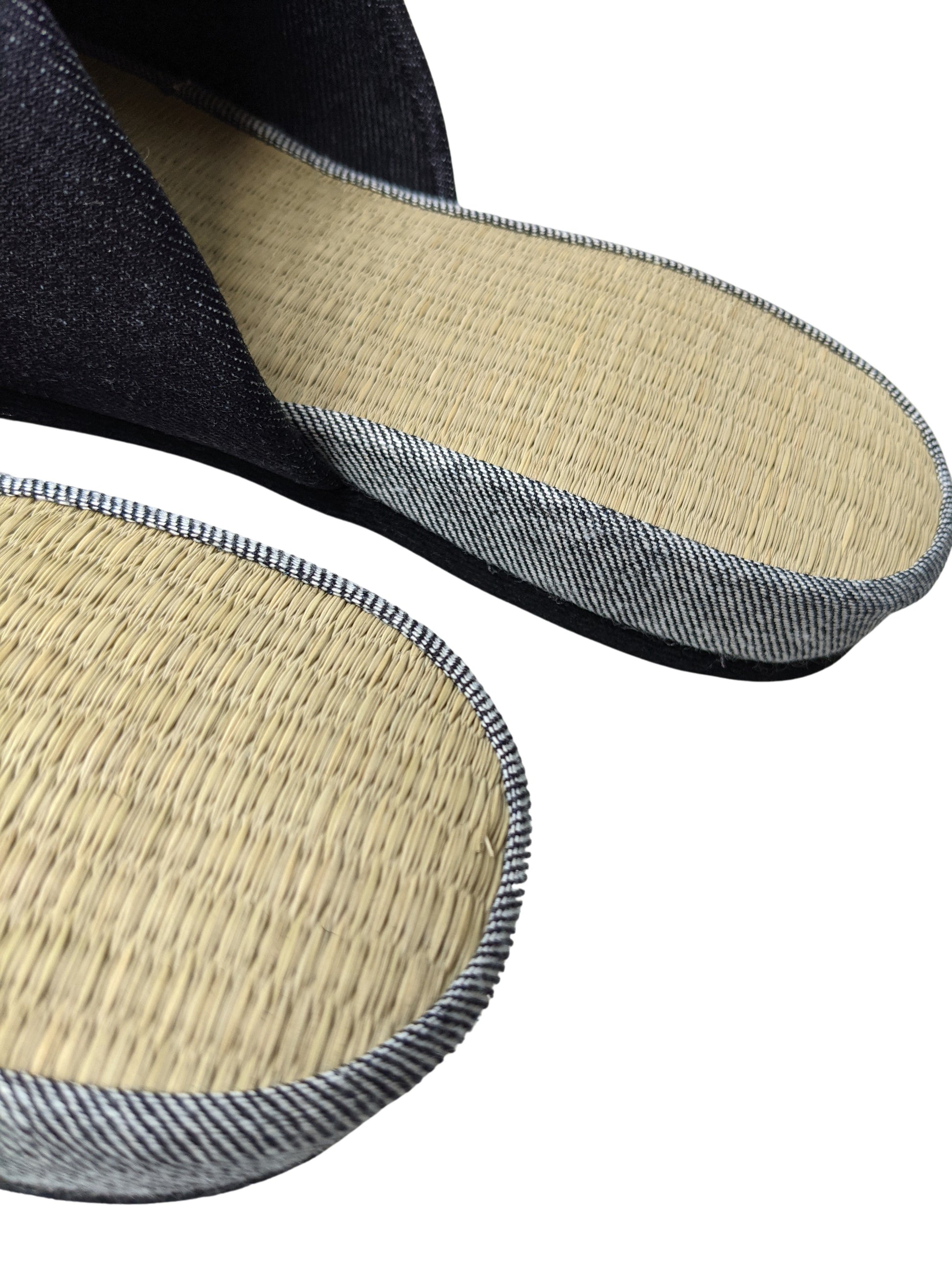 Material: Cotton Denim ,Japanese Tatami mat sole, wool felt sole.