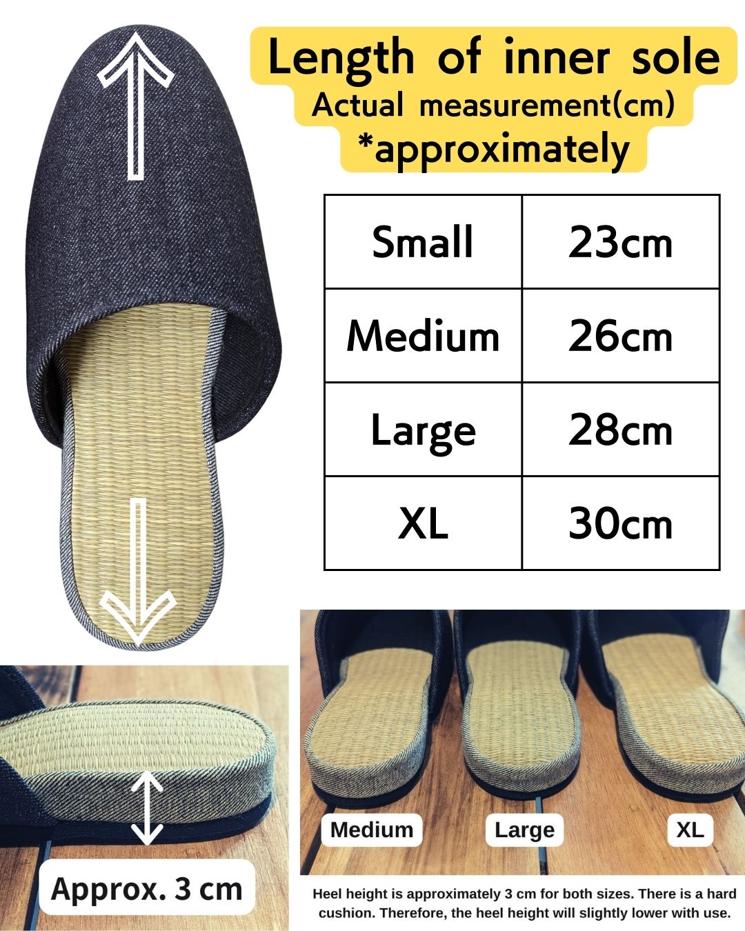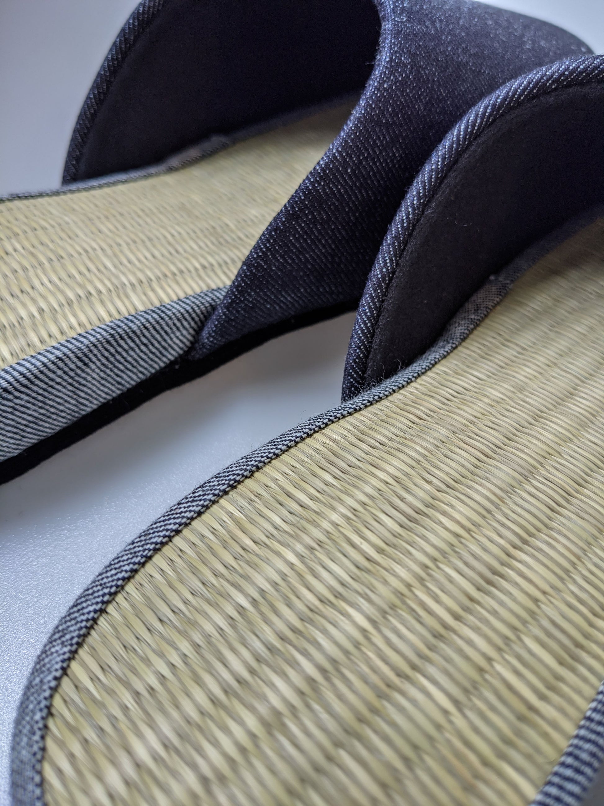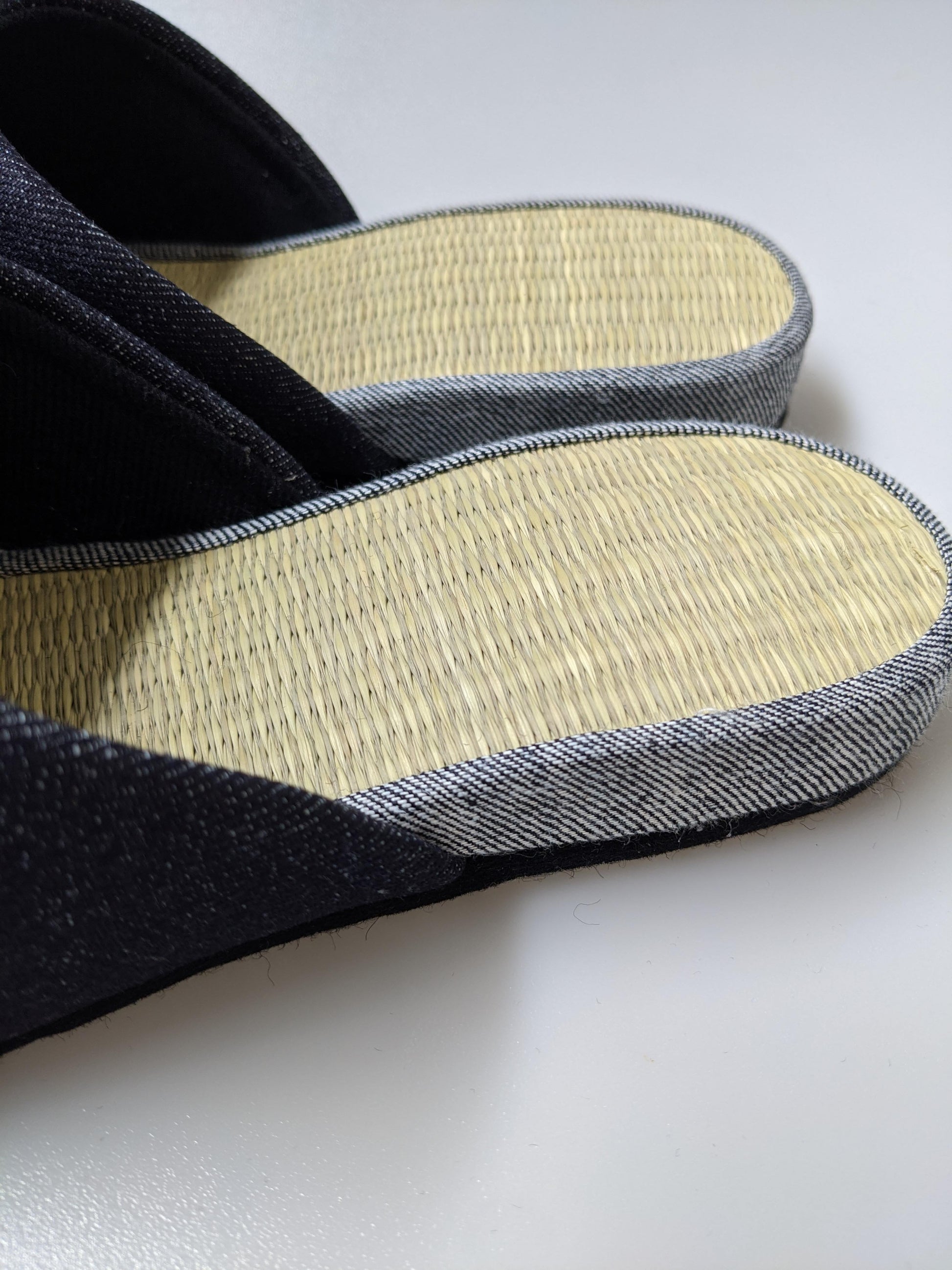 Material: Cotton Denim ,Japanese Tatami mat sole, wool felt sole.