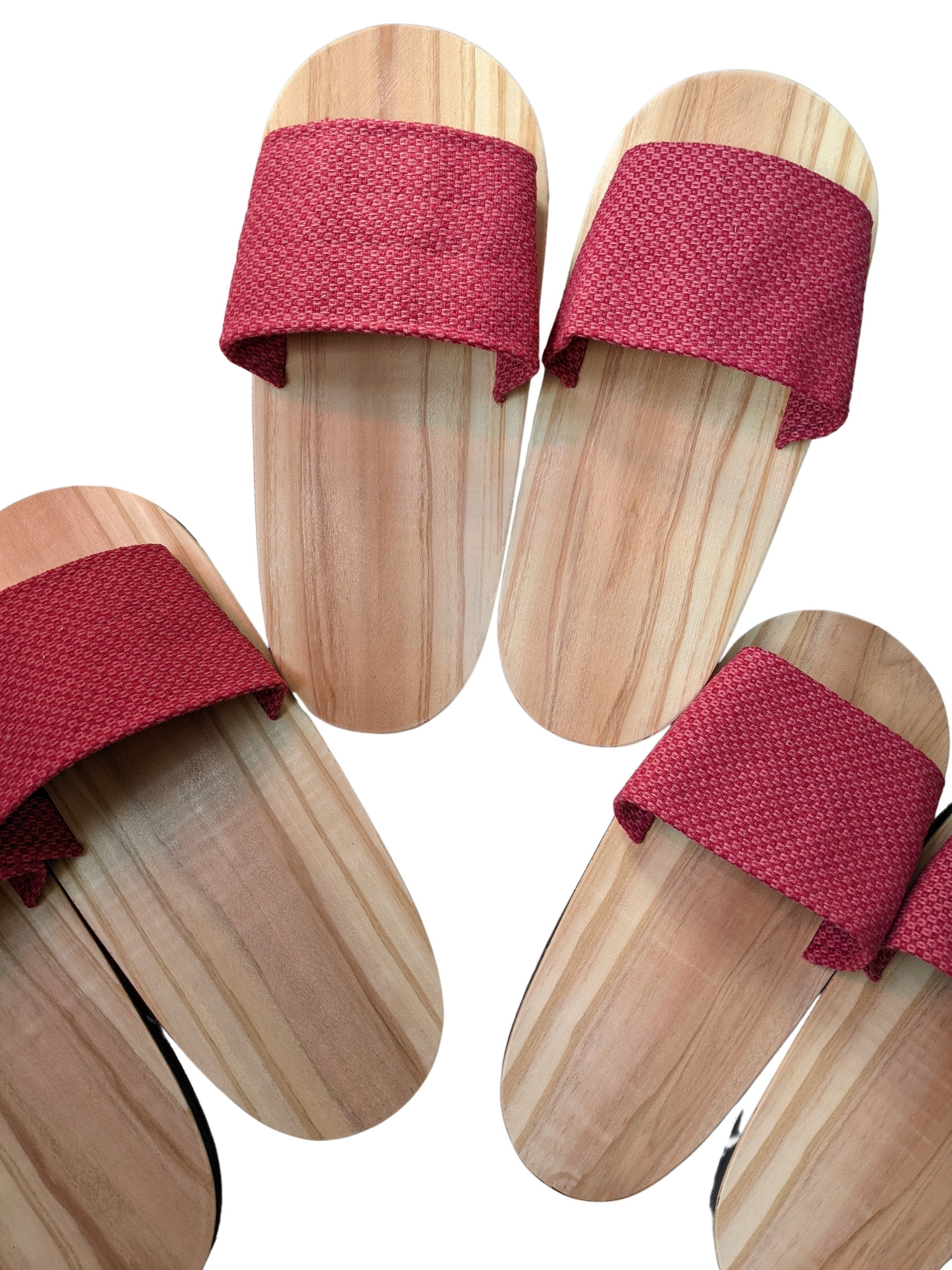 The scent of wooden slippers can vary greatly depending on the usage environment and individual characteristics. Storing them in humid, hot, or poorly ventilated spaces is not advisable as it may lead to odors. Personally, I've never found the wooden slippers to be bothersome in my living environment in Japan. Given their open design and excellent moisture absorption properties, I believe they are unlikely to be a significant source of odor. In fact, conventional cotton slippers tend to pose more of an odor concern. If you're worried about odors, simply wipe the slippers with a damp cloth and allow them to air dry in a well-lit area. While it's safe to lightly dampen painted slippers, soaking unpainted ones in water could damage the wood or cause cracking upon drying. Therefore, it's best to wipe them clean with a cloth instead.