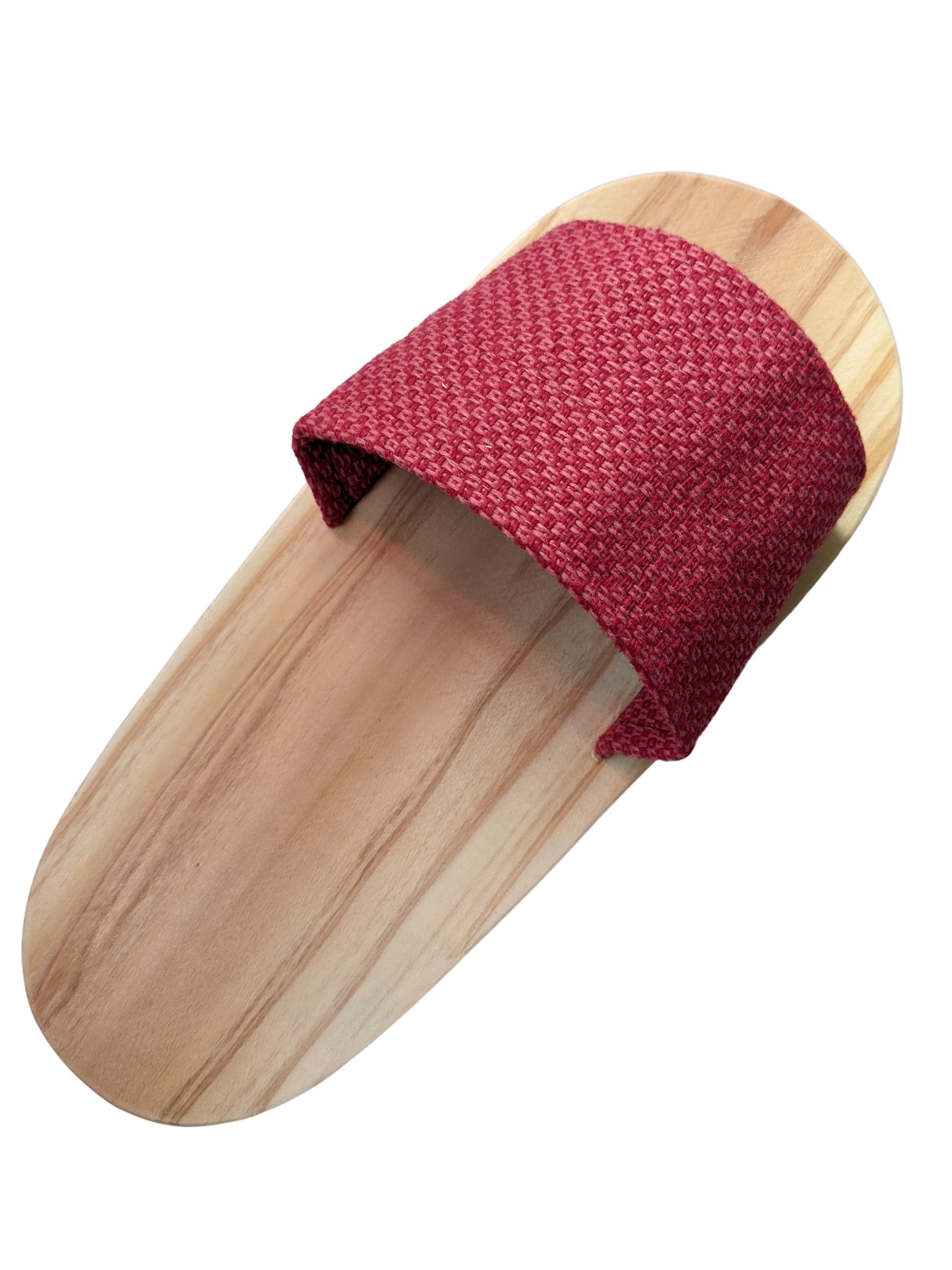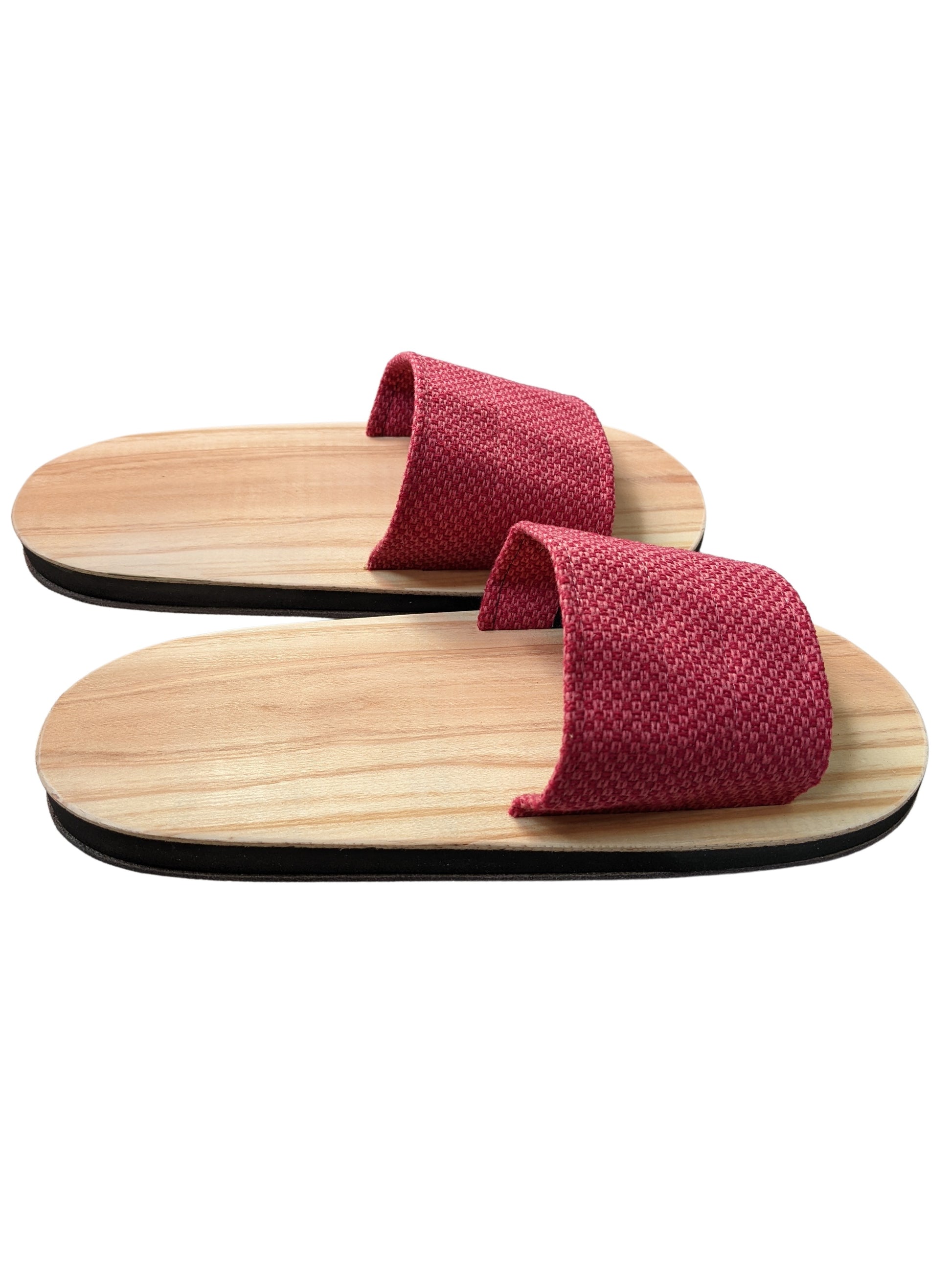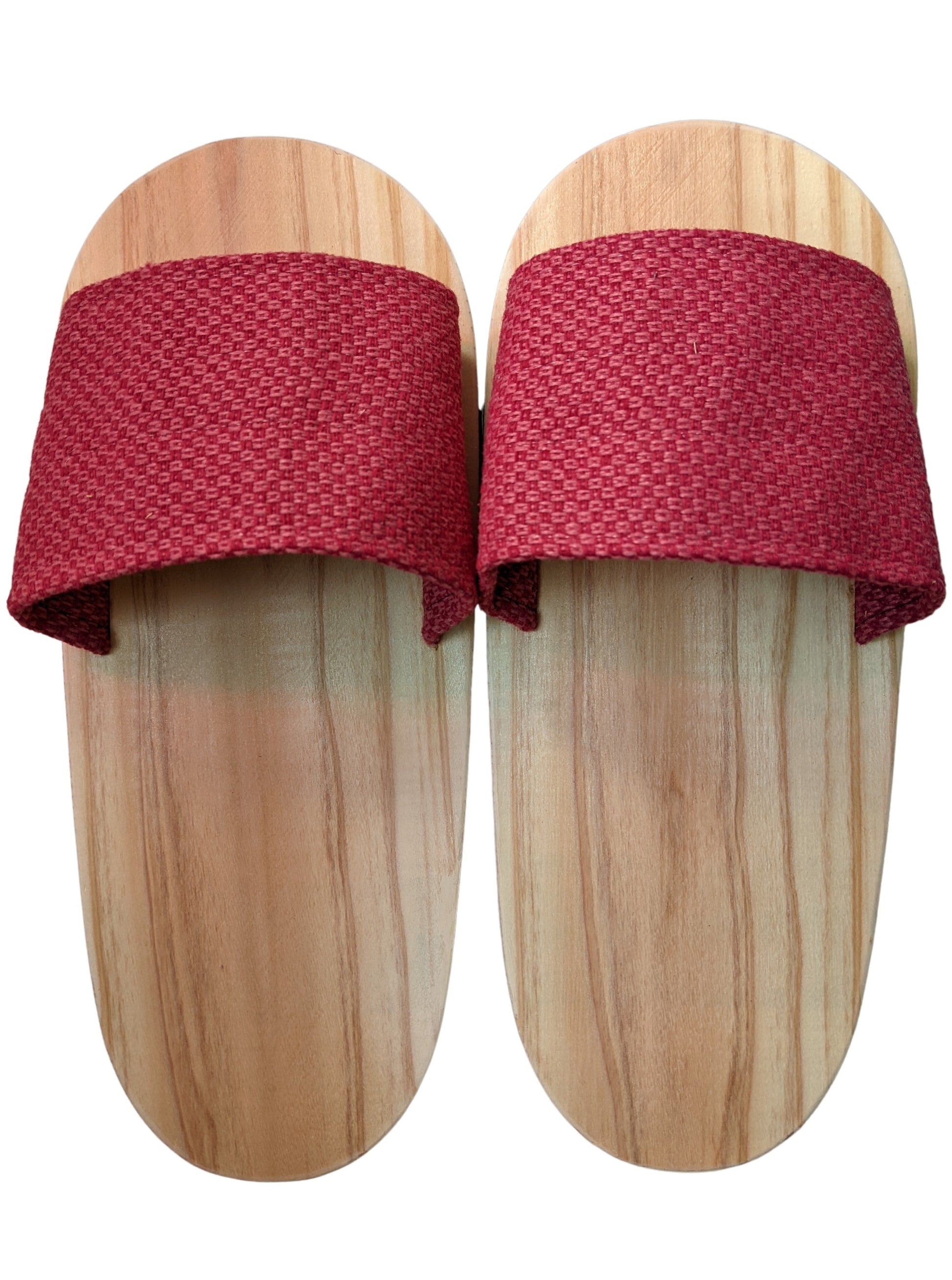 Unpainted natural slippers are highly absorbent, soaking up sweat and moisture, which makes them comfortable to wear, even in the heat of summer. In Japan, they are commonly used in onsen ryokan or after bathing. As the unpainted wood is used, its color gradually darkens to match the patina of well-worn wood.