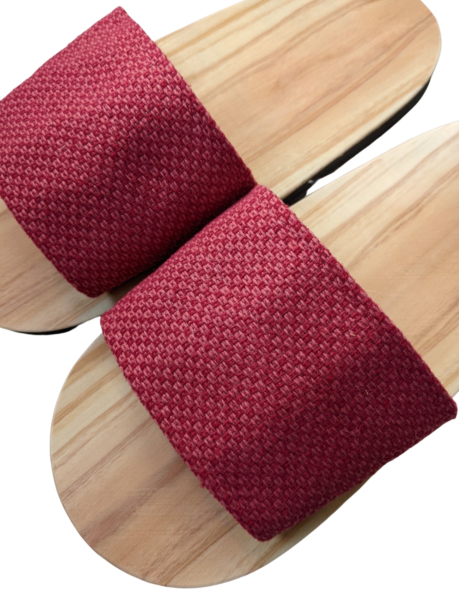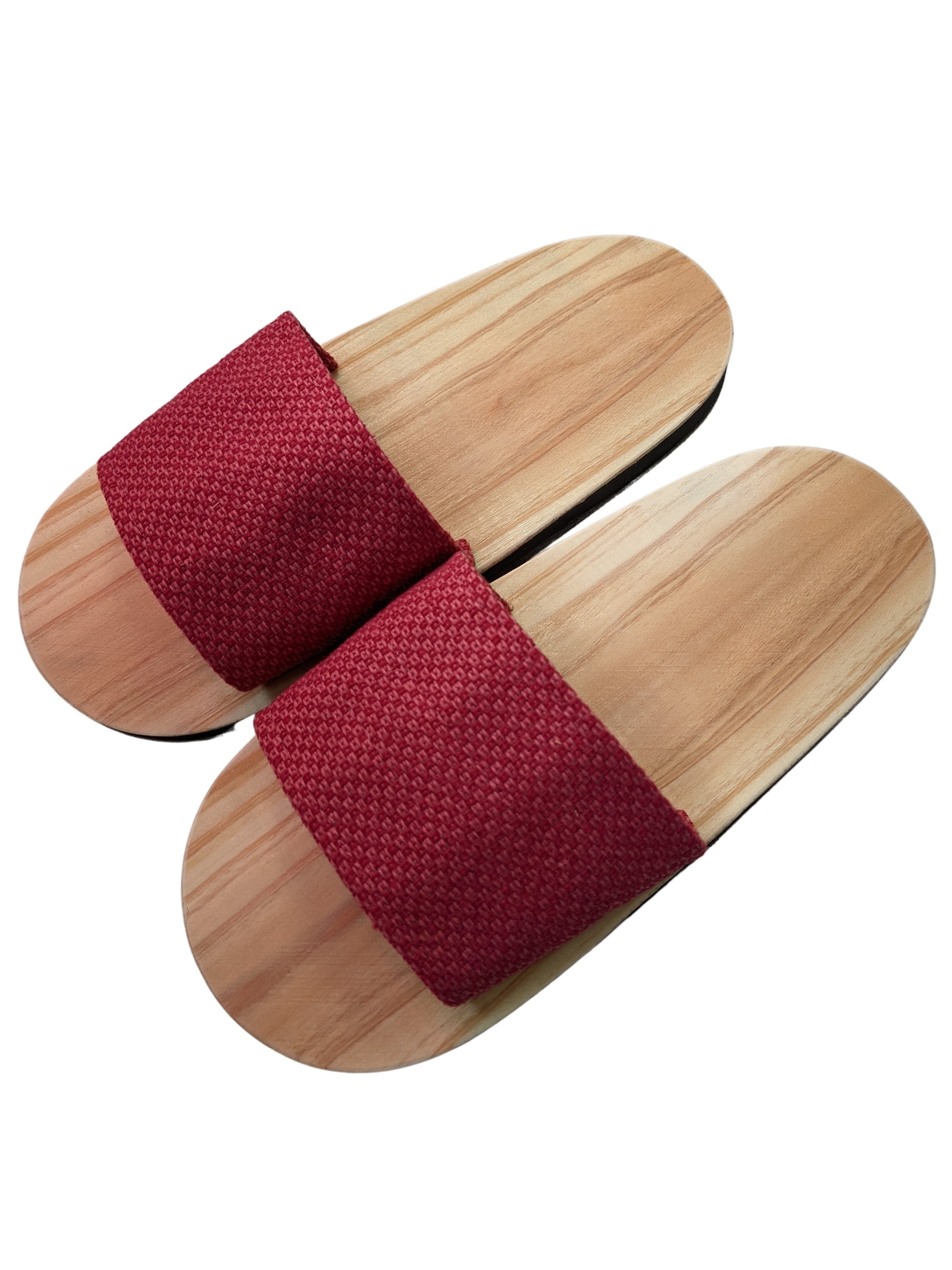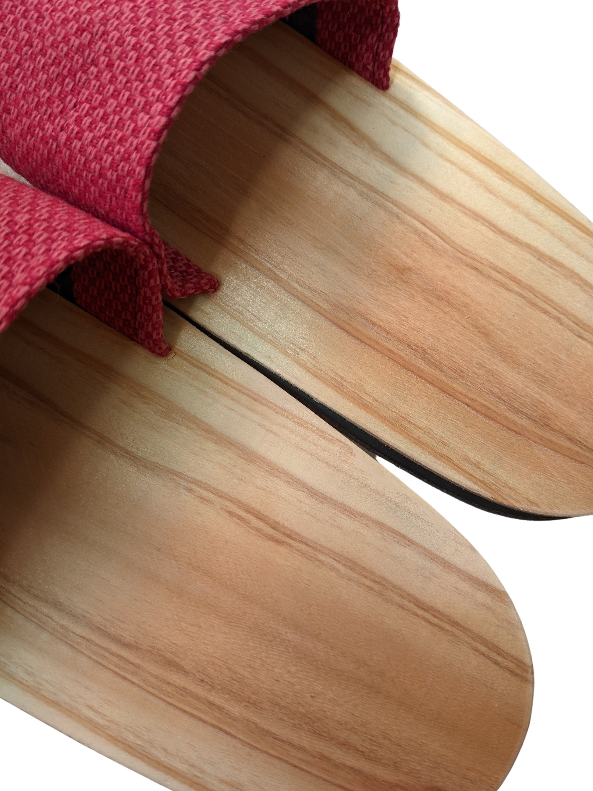 Unpainted natural slippers are highly absorbent, soaking up sweat and moisture, which makes them comfortable to wear, even in the heat of summer. In Japan, they are commonly used in onsen ryokan or after bathing. As the unpainted wood is used, its color gradually darkens to match the patina of well-worn wood.