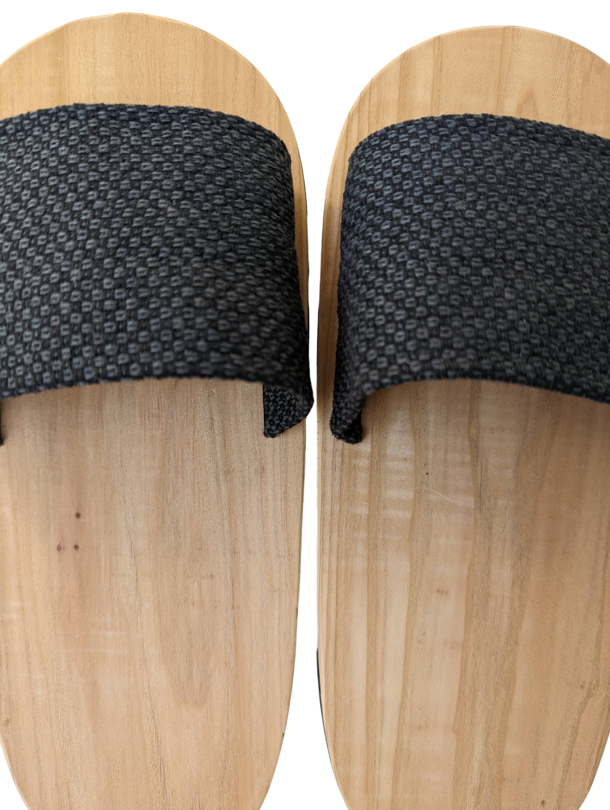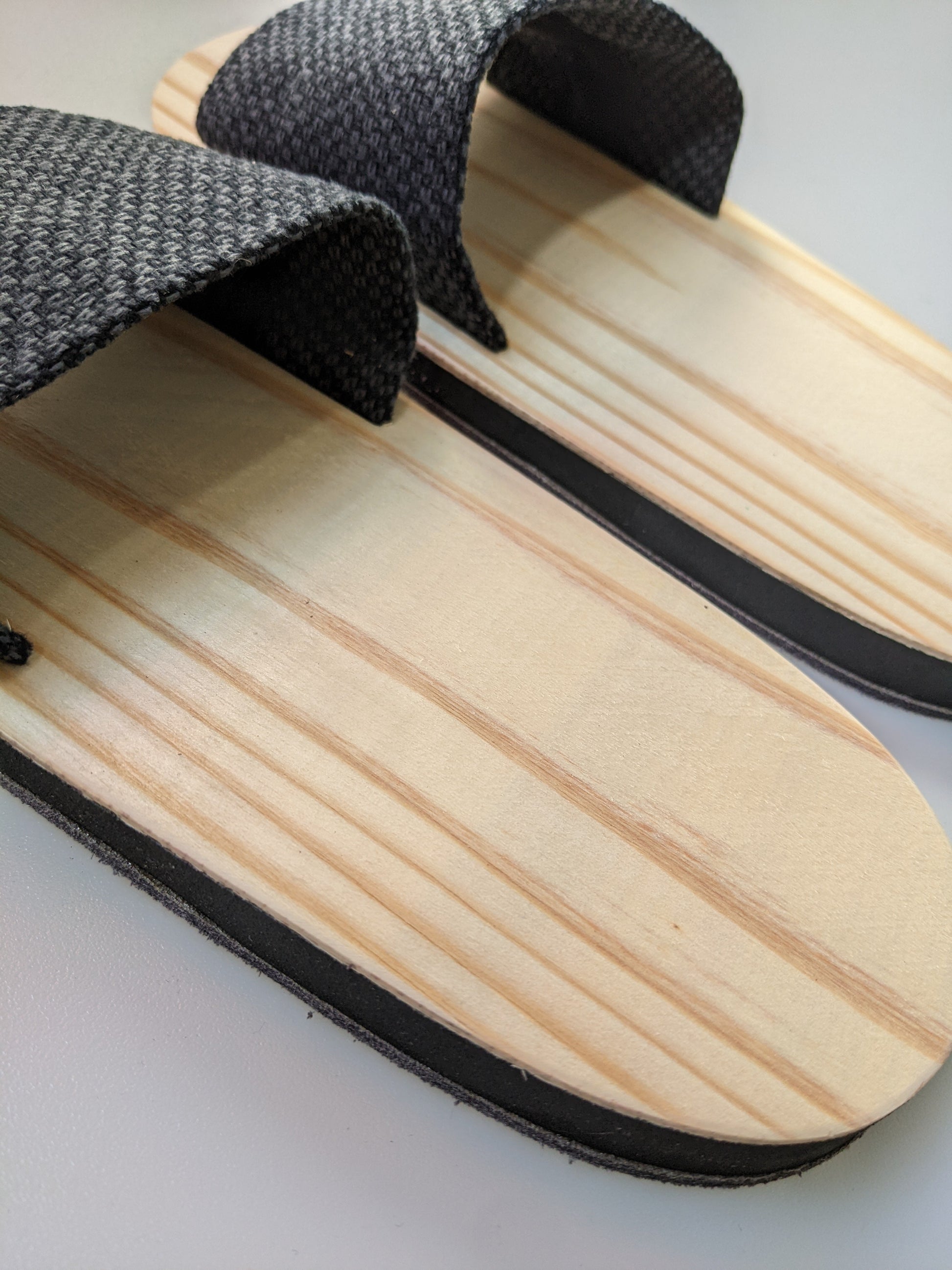 Unpainted natural slippers are highly absorbent, soaking up sweat and moisture, which makes them comfortable to wear, even in the heat of summer. In Japan, they are commonly used in onsen ryokan or after bathing. As the unpainted wood is used, its color gradually darkens to match the patina of well-worn wood.
