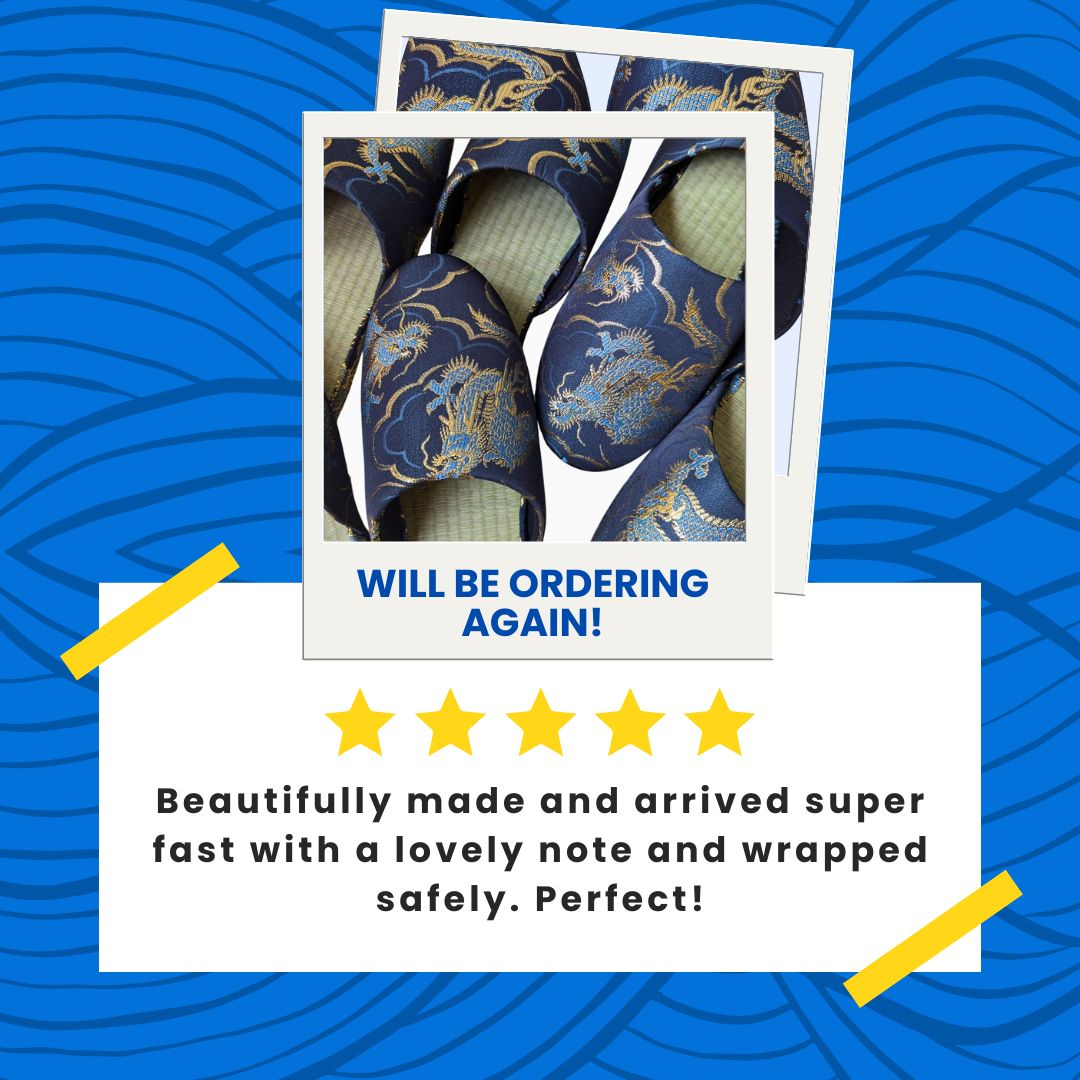 Each pair of slippers has its own cultural background. We hope you will enjoy our Japanese-style slippers! We believe slipper can be a bridge to the peace (= “Heiwa”).