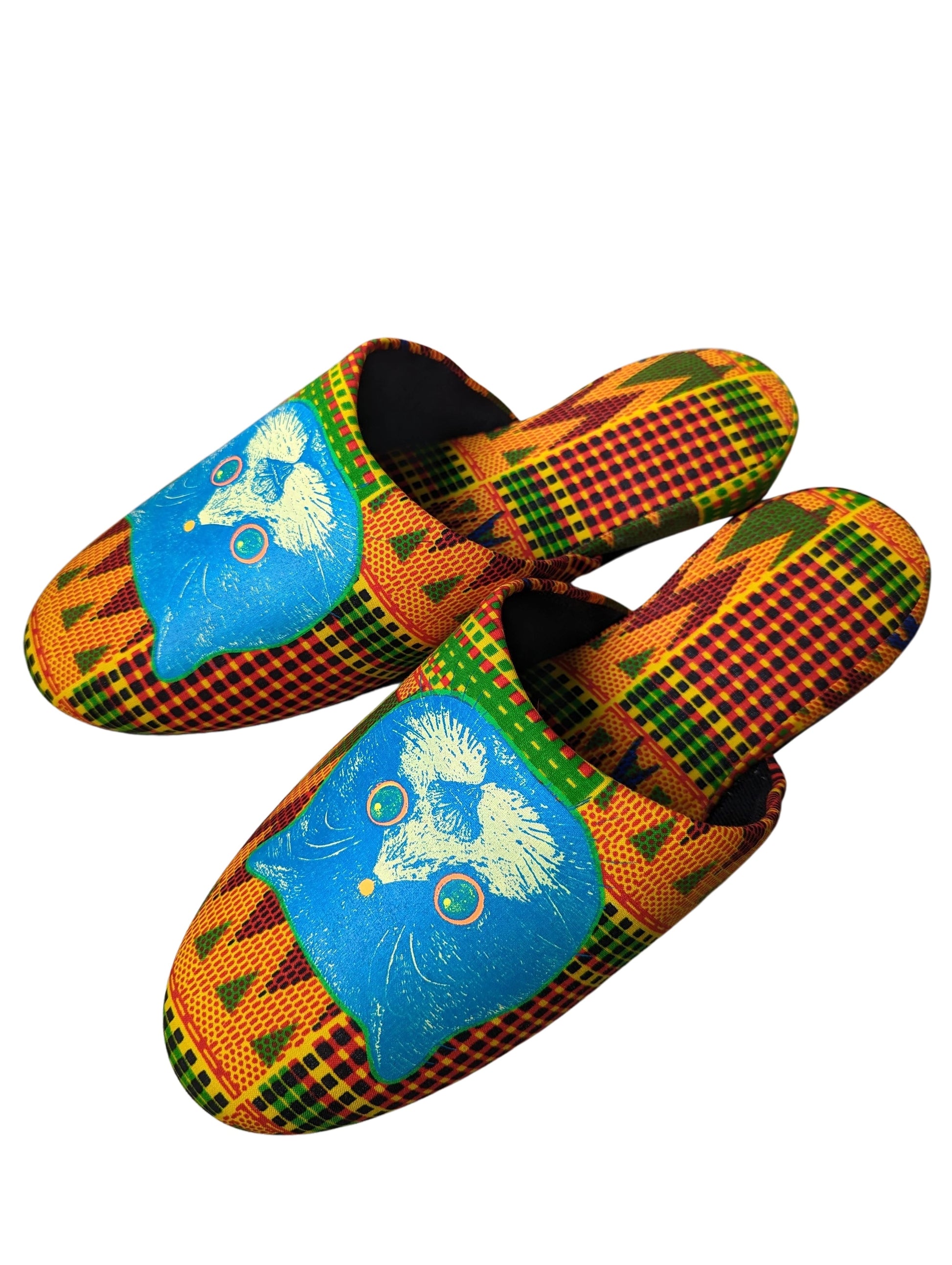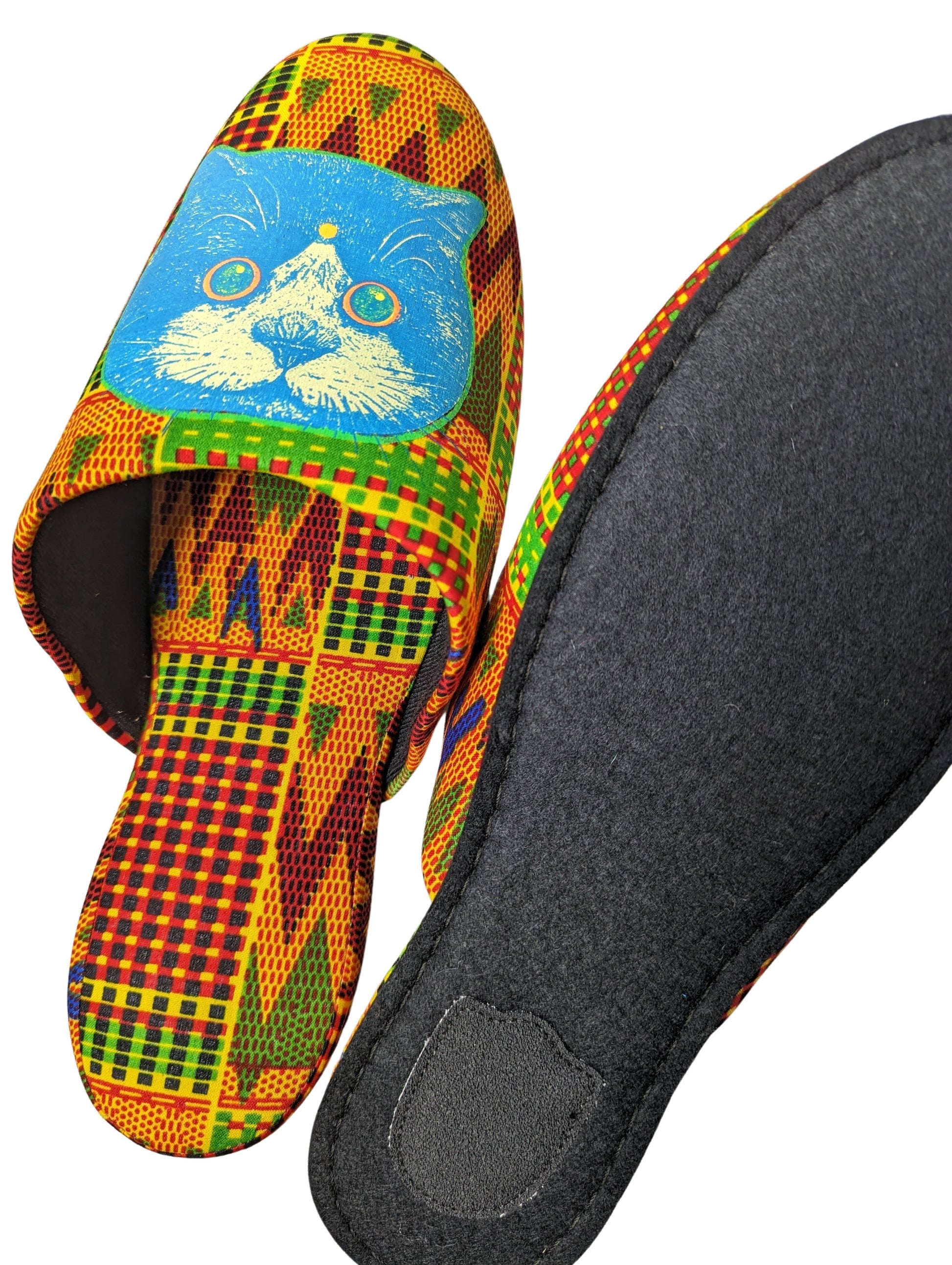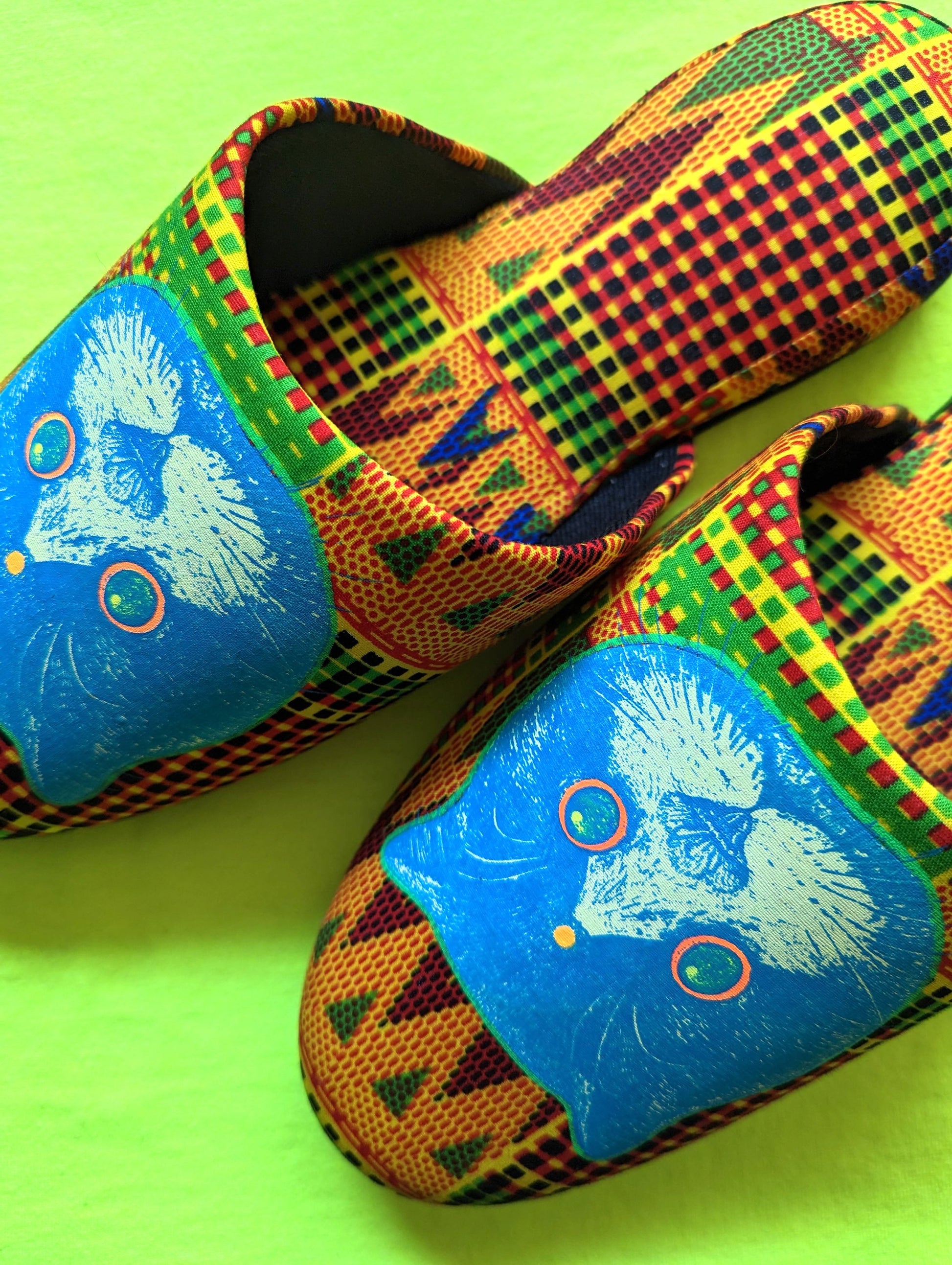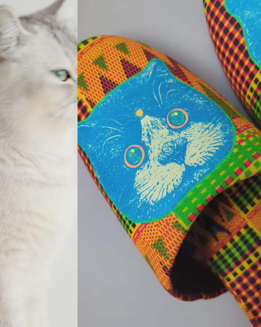 SALE XL Satoshi Onodera / FujiTama-Chang Cat mix slippers #2023SS01 / Silkscreen Printed Mix Slippers [Black wool felt sole] XL
