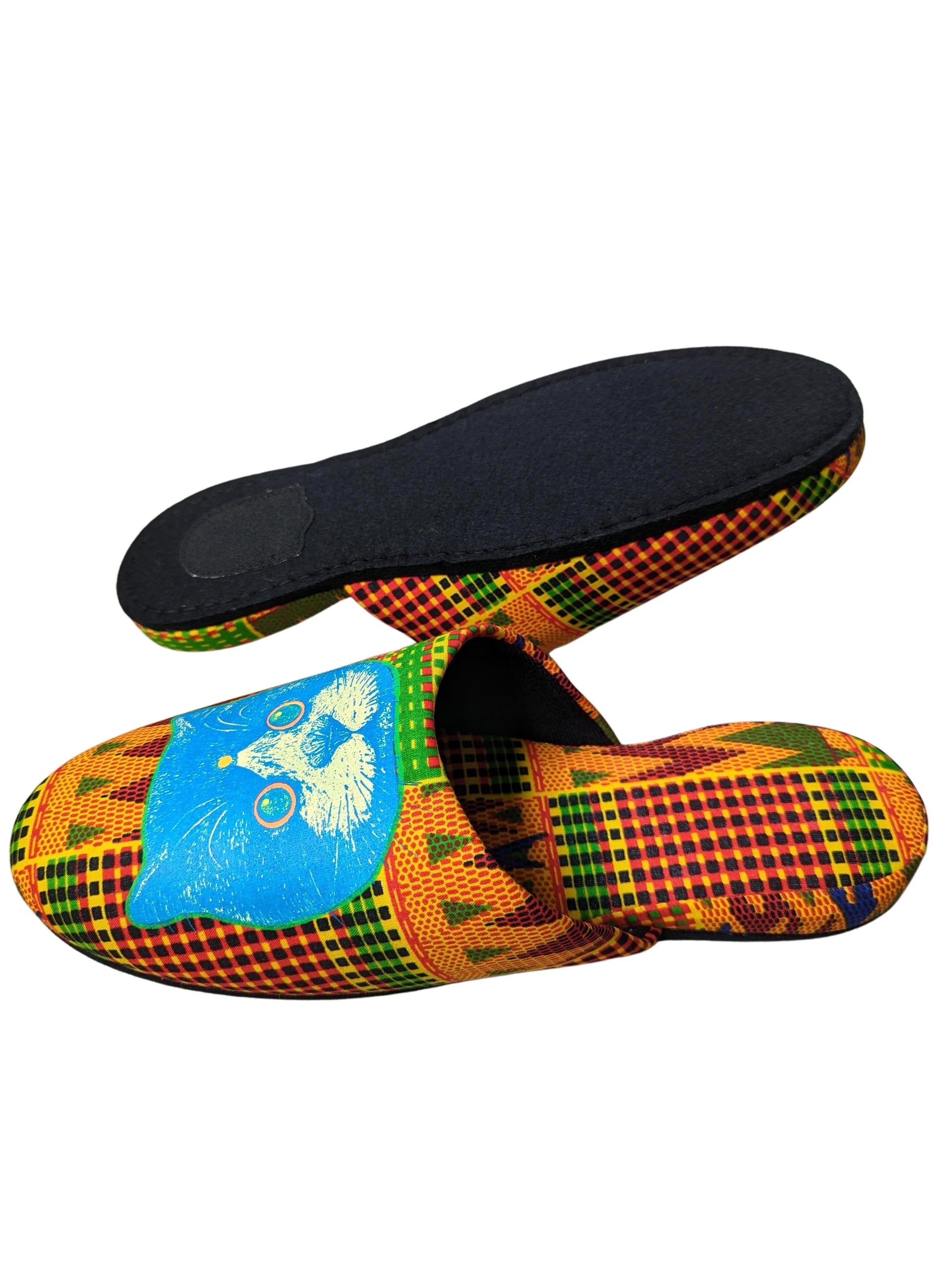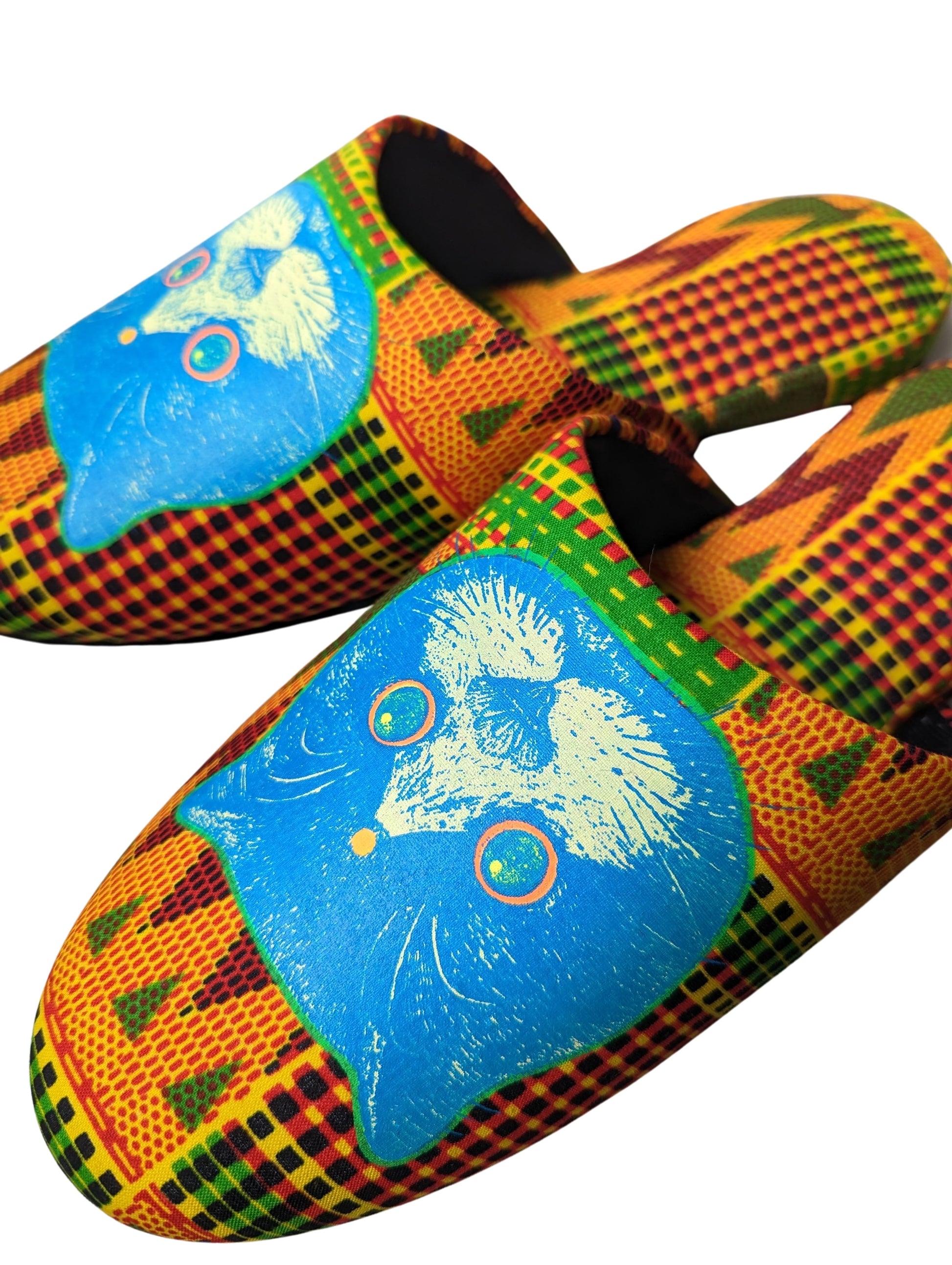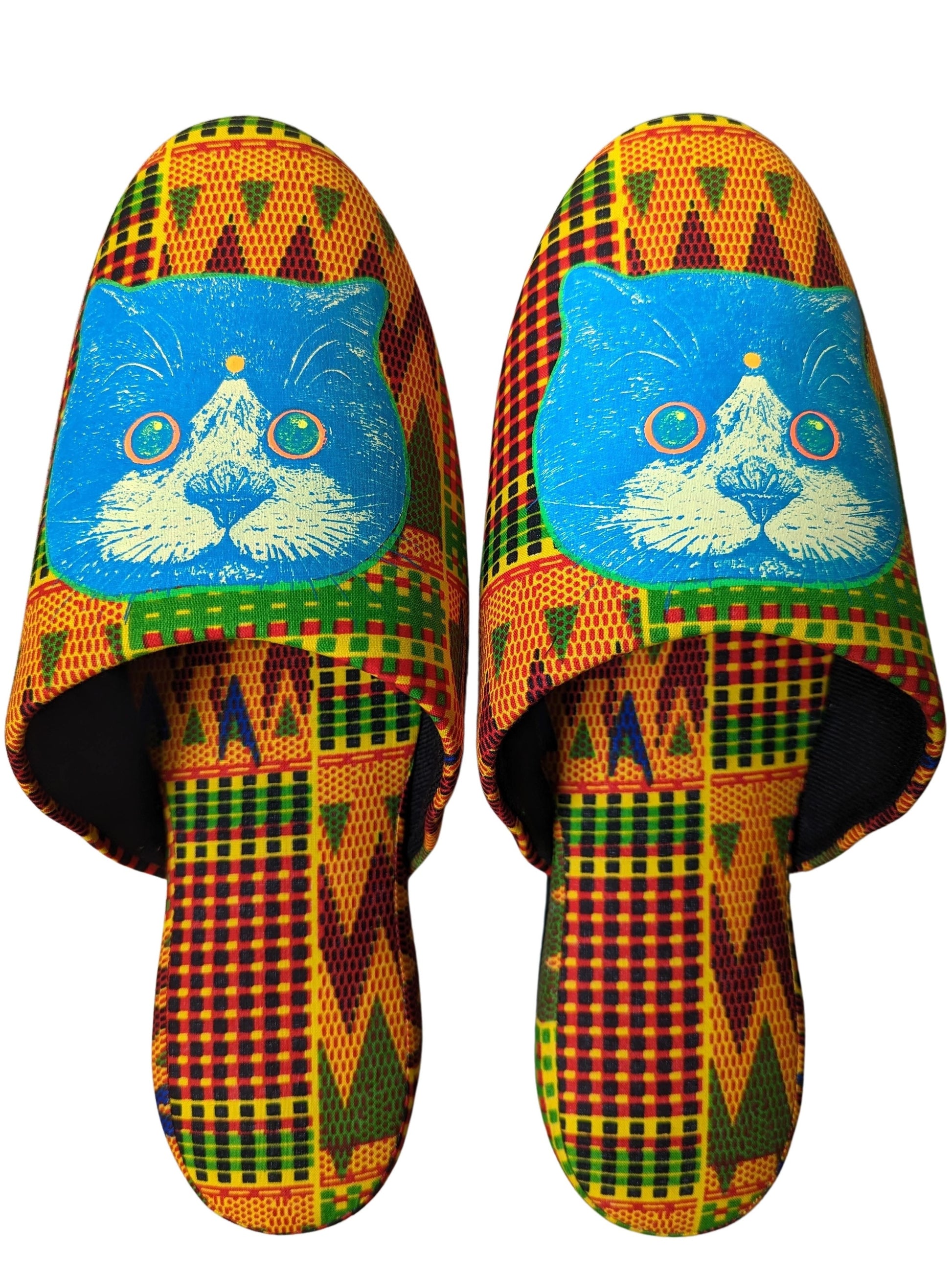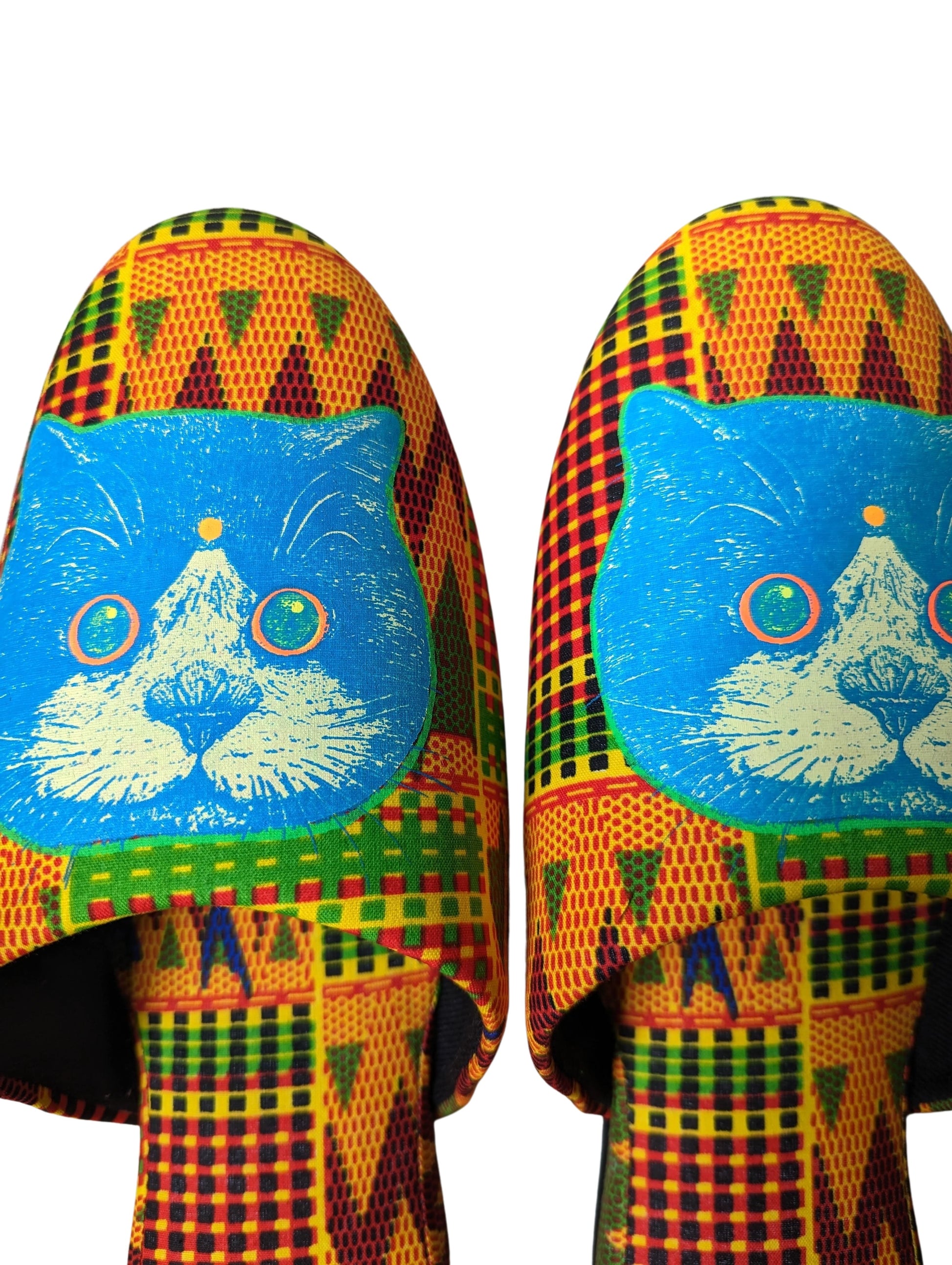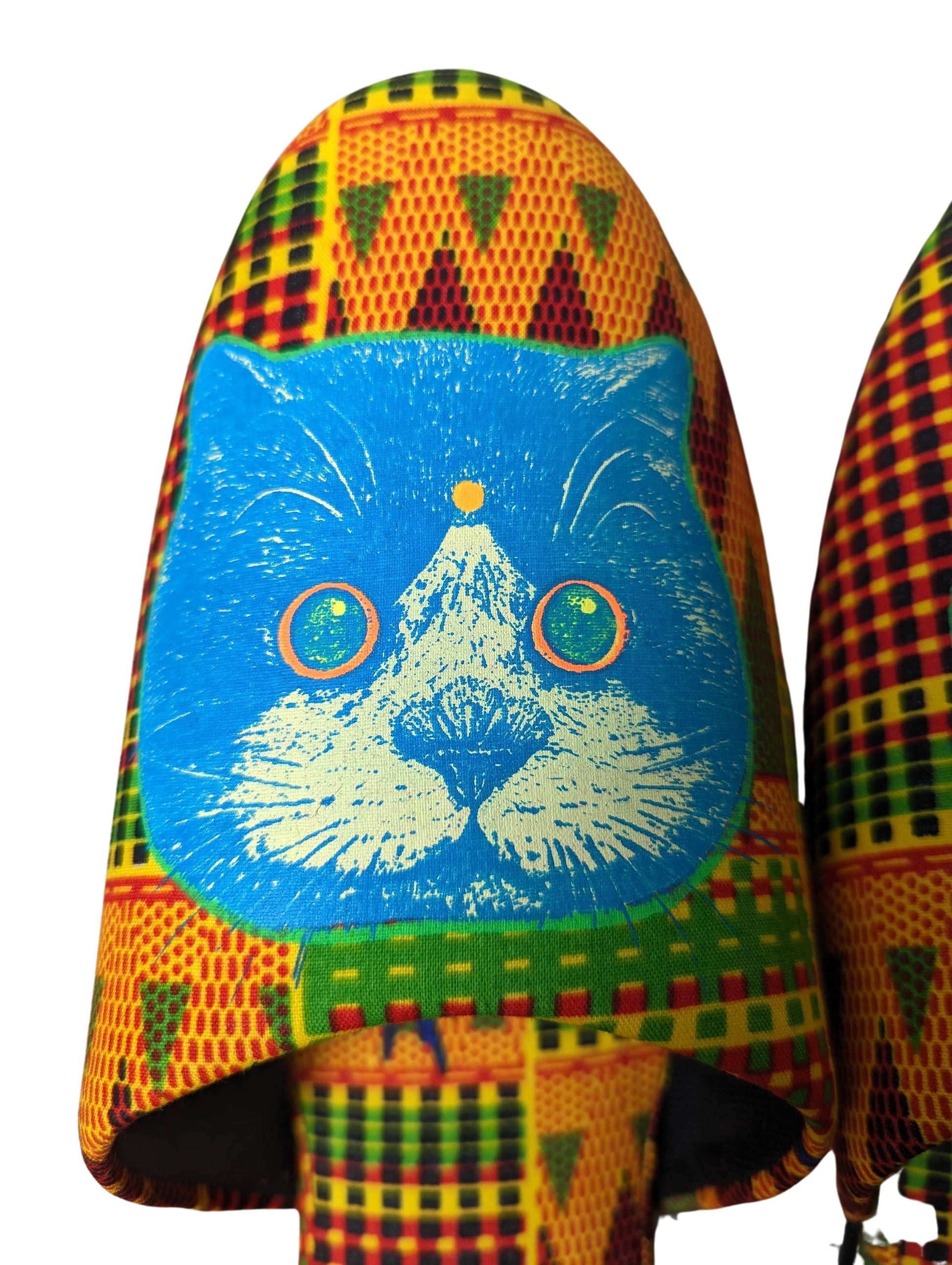 SALE XL Satoshi Onodera / FujiTama-Chang Cat mix slippers #2023SS01 / Silkscreen Printed Mix Slippers [Black wool felt sole] XL