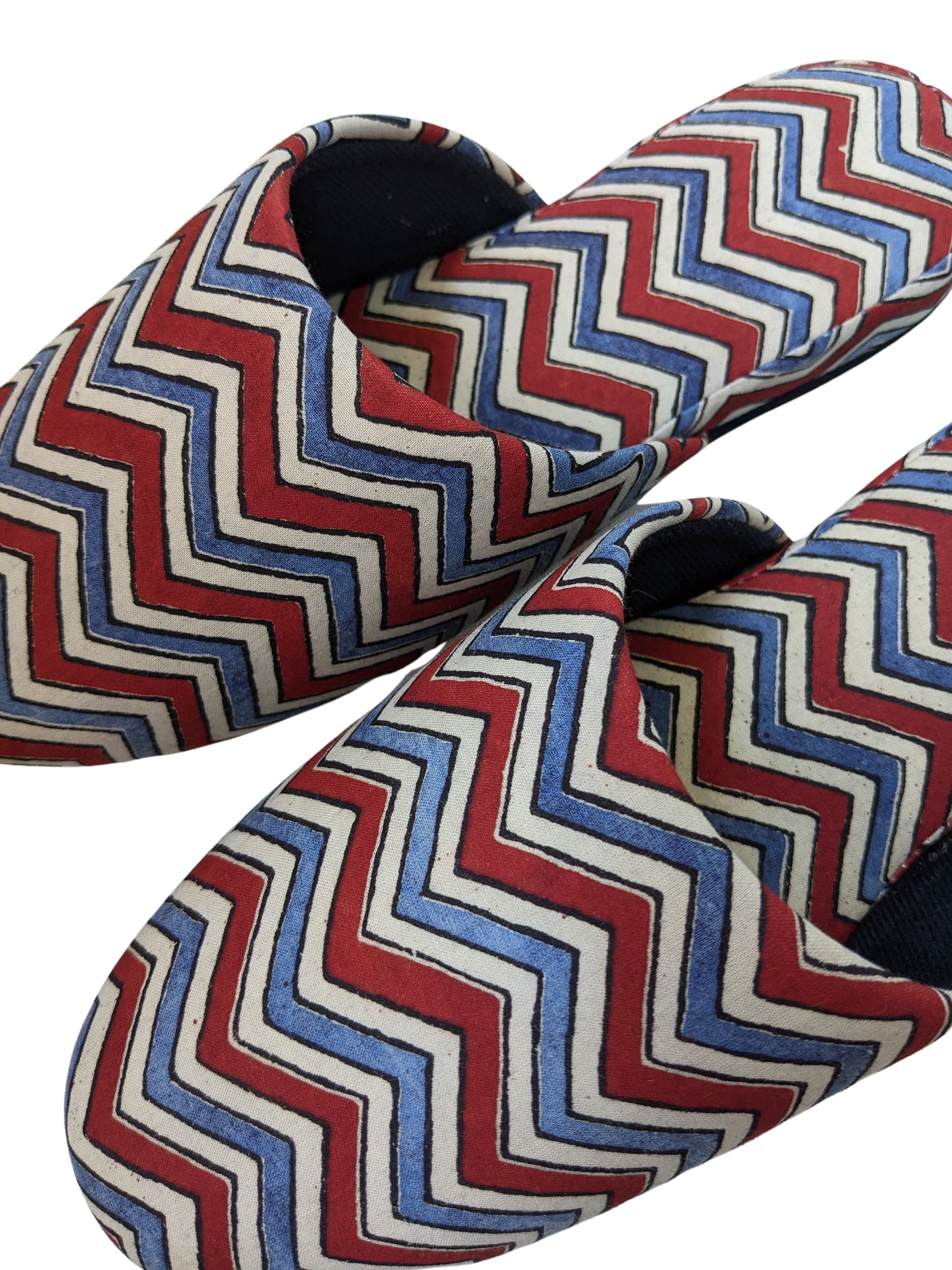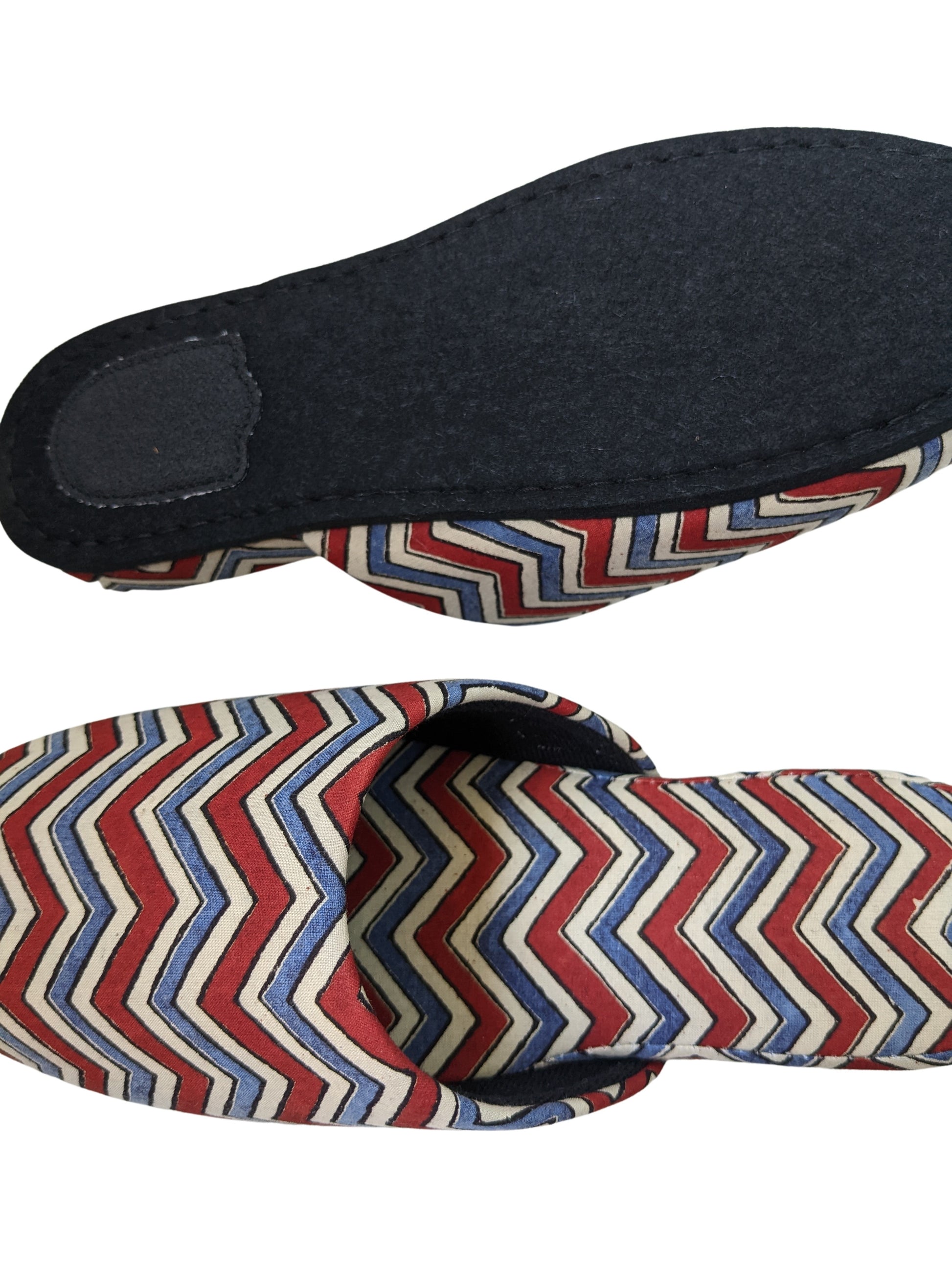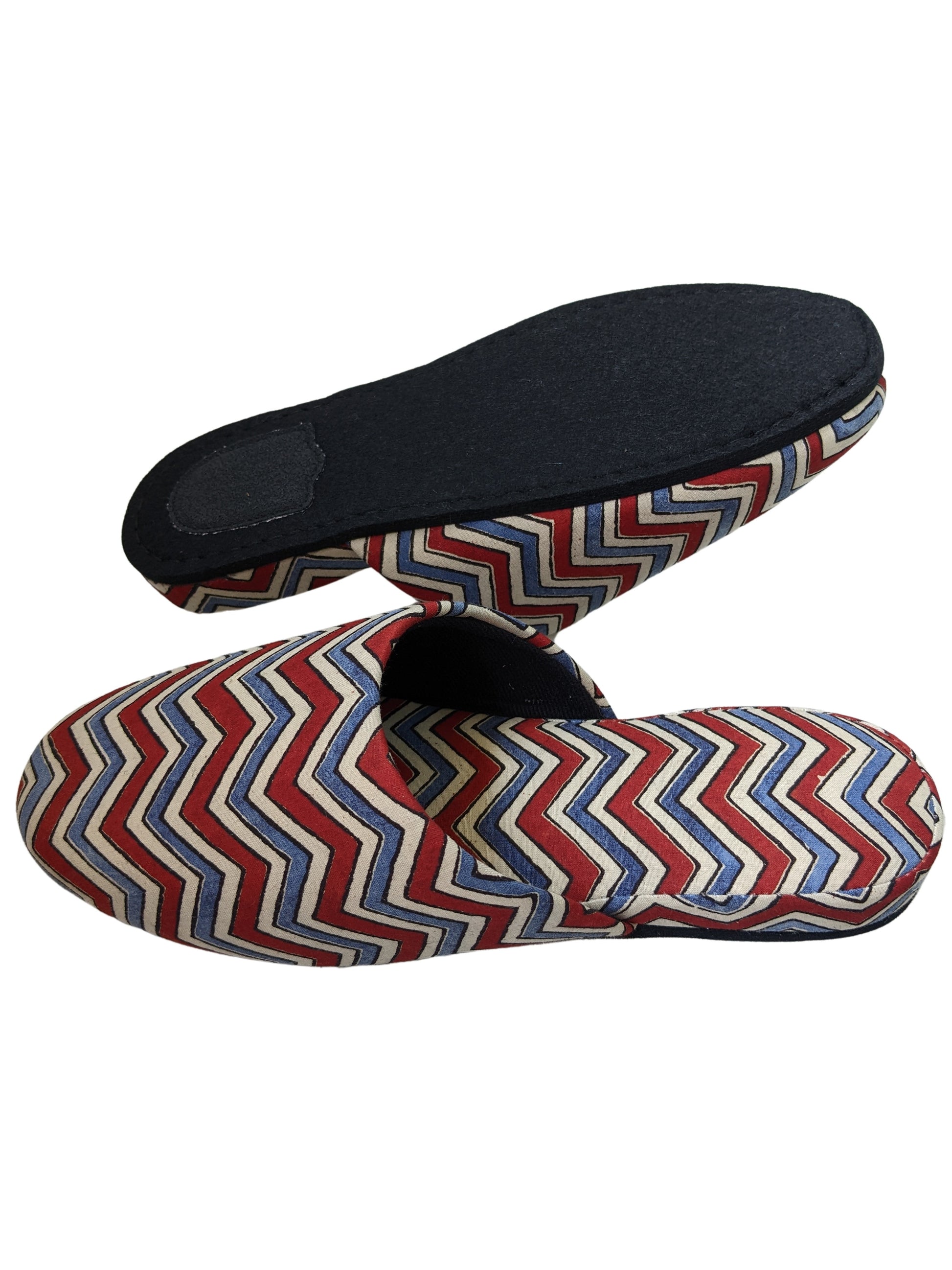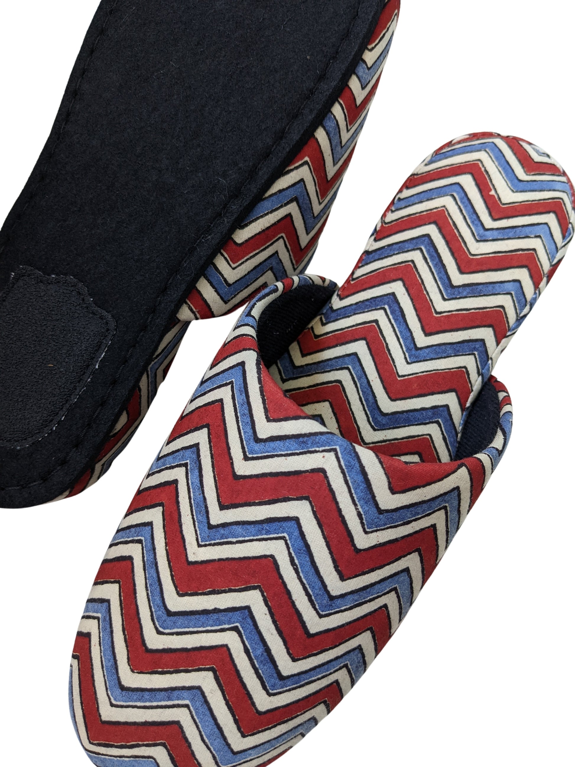 Medium Block Printing Flowers Mix Slippers [Black wool felt soles] MF2208 [Size Medium] zigzag