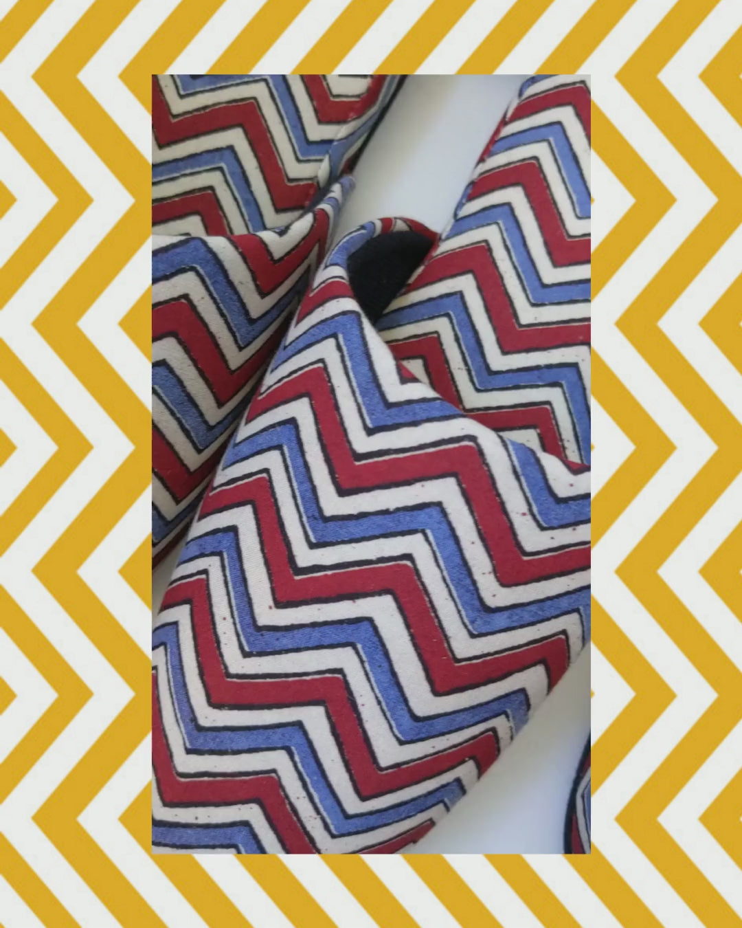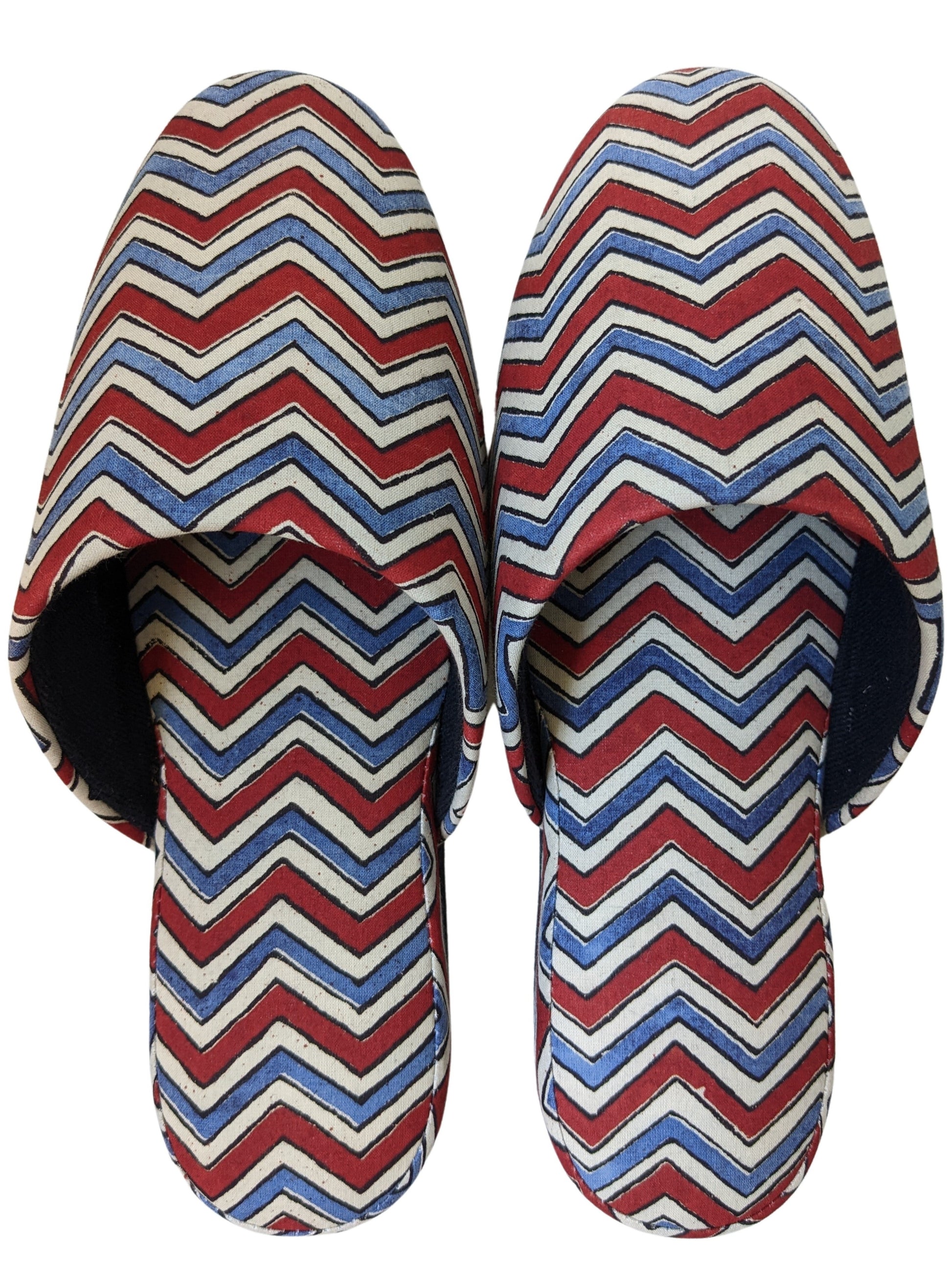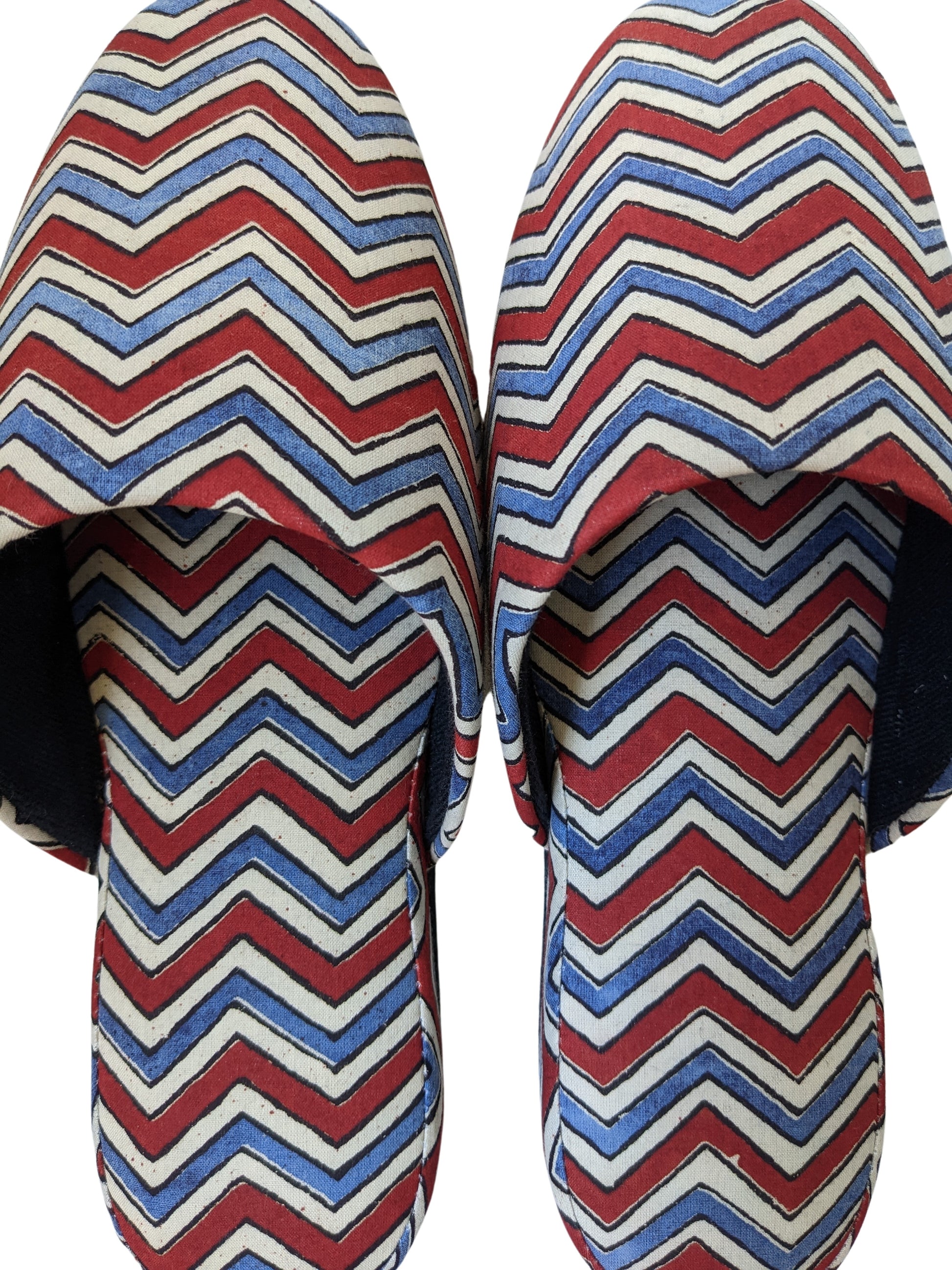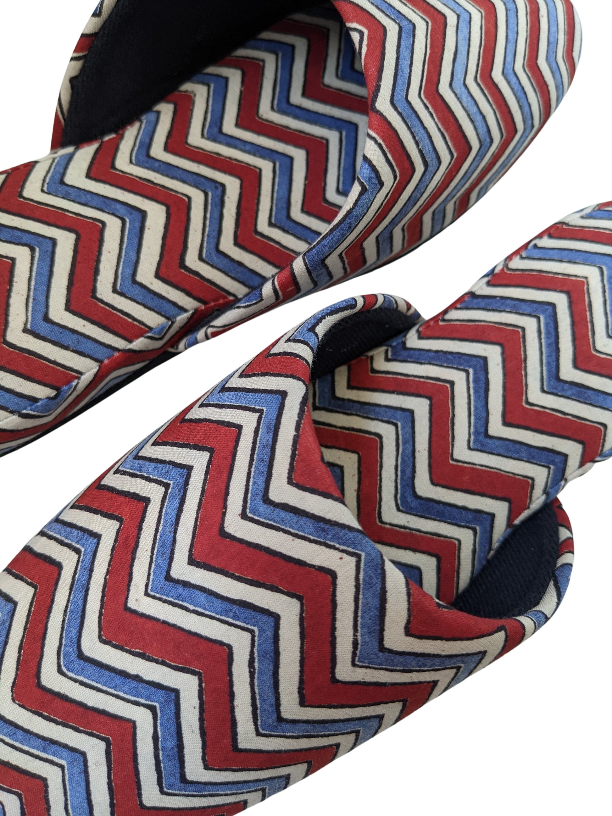 Medium Block Printing Flowers Mix Slippers [Black wool felt soles] MF2208 [Size Medium] zigzag