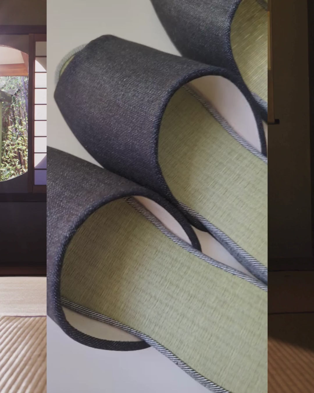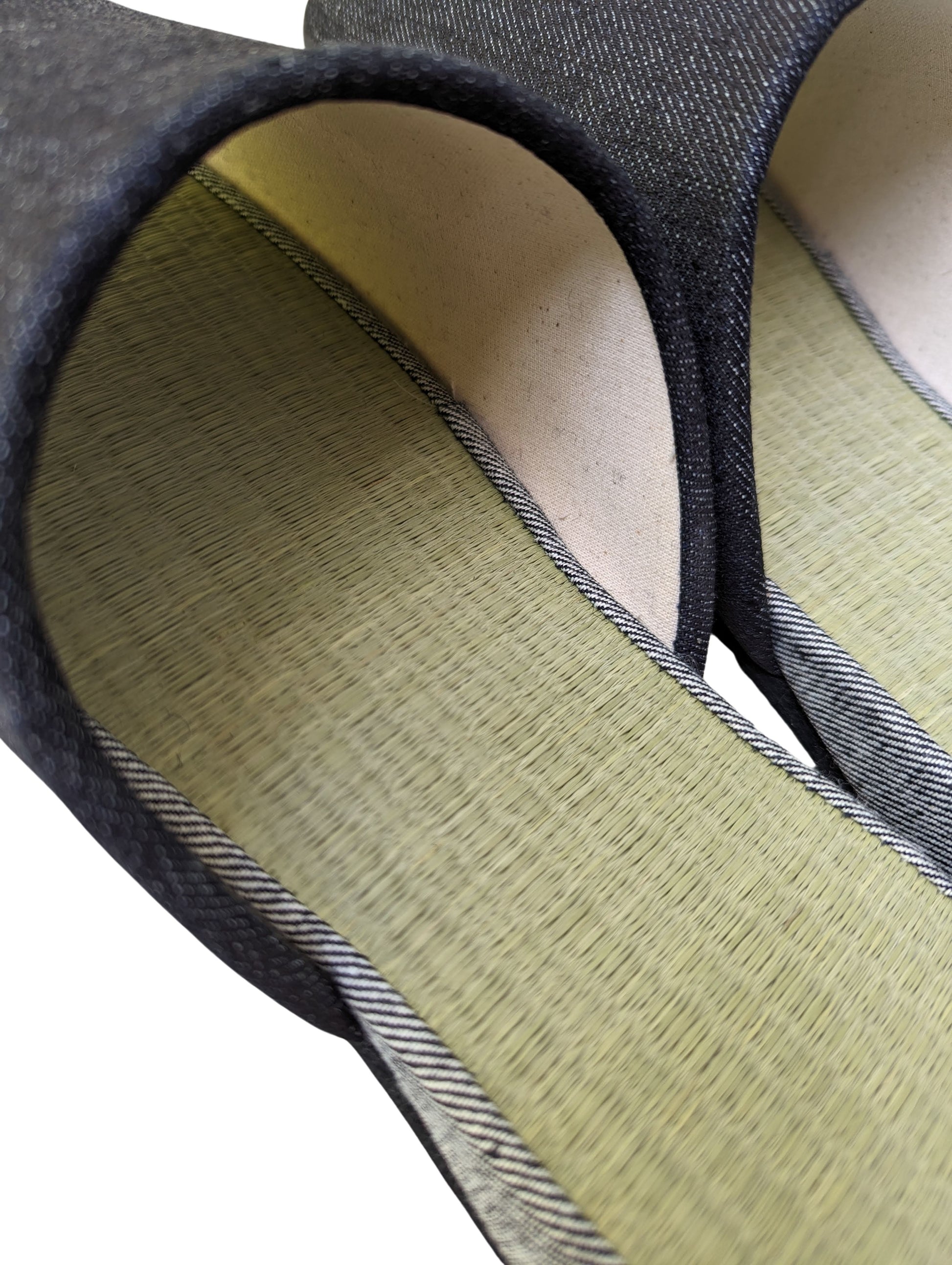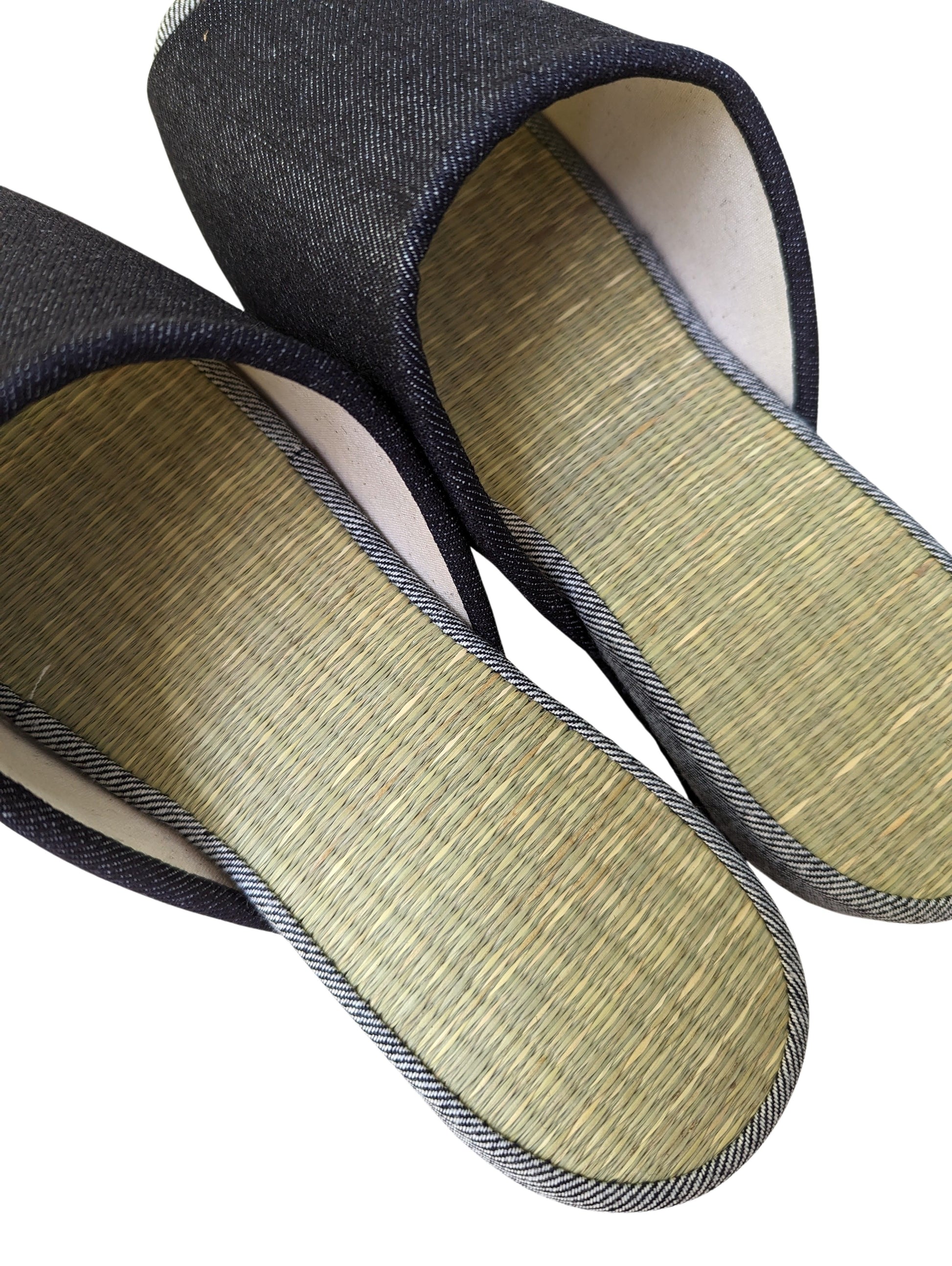 These slippers are crafted using premium Japanese Hiroshima denim, imbuing them with a simple yet elegant quality. The tatami portion is also authentically Japanese, made using genuine Igusa, a plant cultivated in Japan. Furthermore, we meticulously select the finest portion of the Igusa plant—the tip of the ear—known for its exceptional quality.
