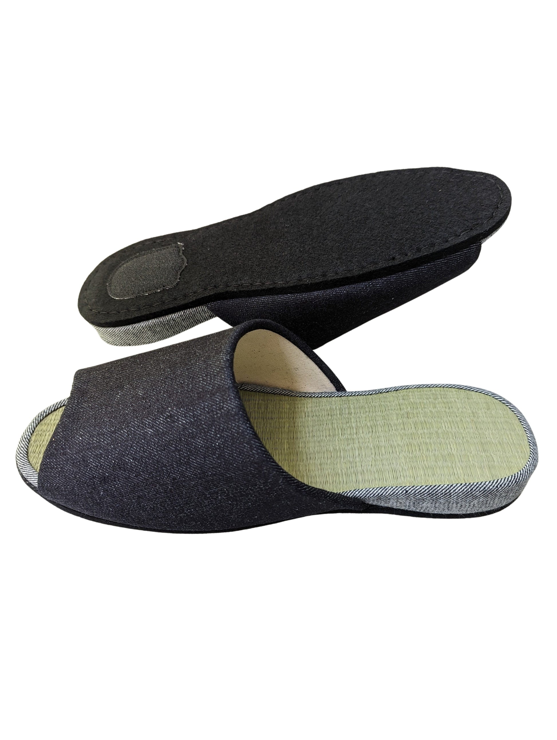 SALE Open-toe TATAMI Denim Slippers A-Type [Black Wool Felt Sole] / Simple [Denim Hiroshima]