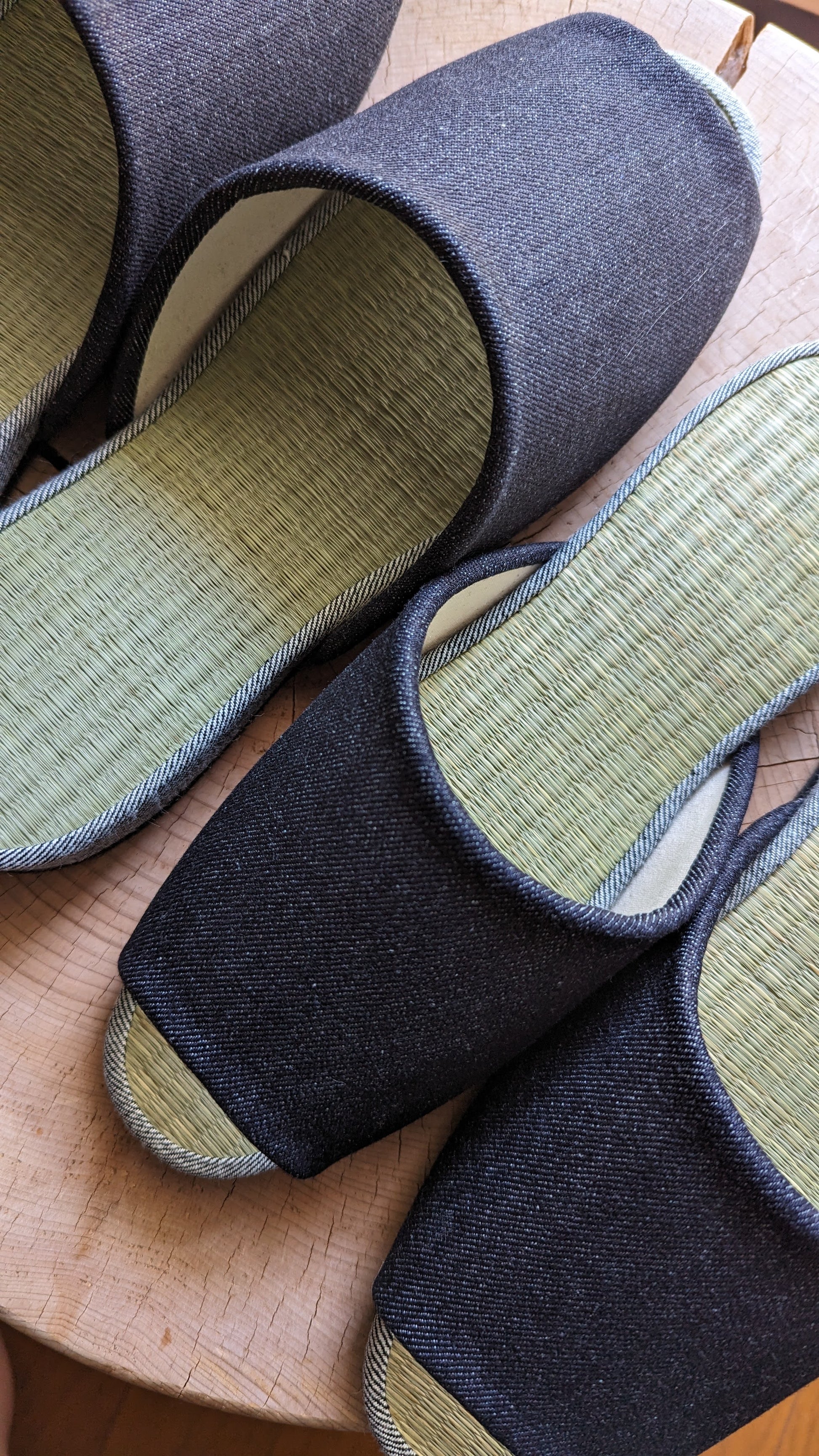 Material: Cotton Denim, Japanese Tatami mat sole, wool felt sole.