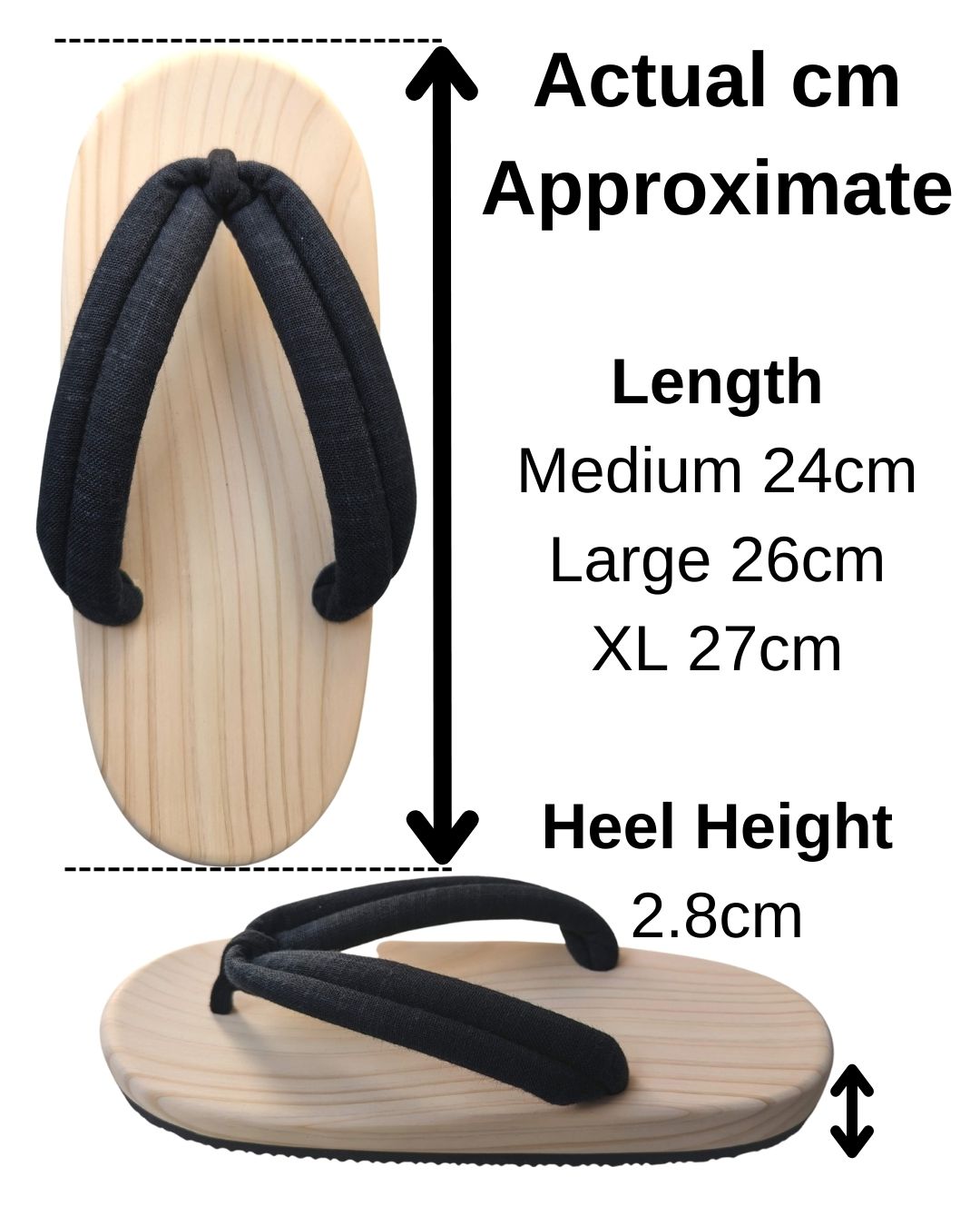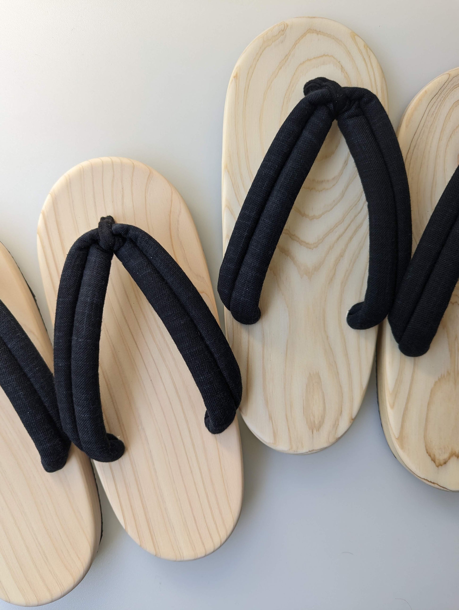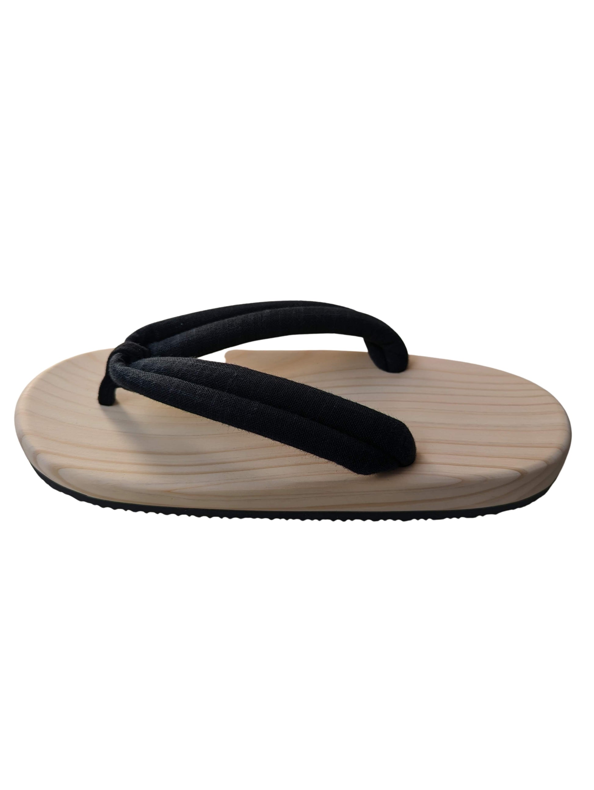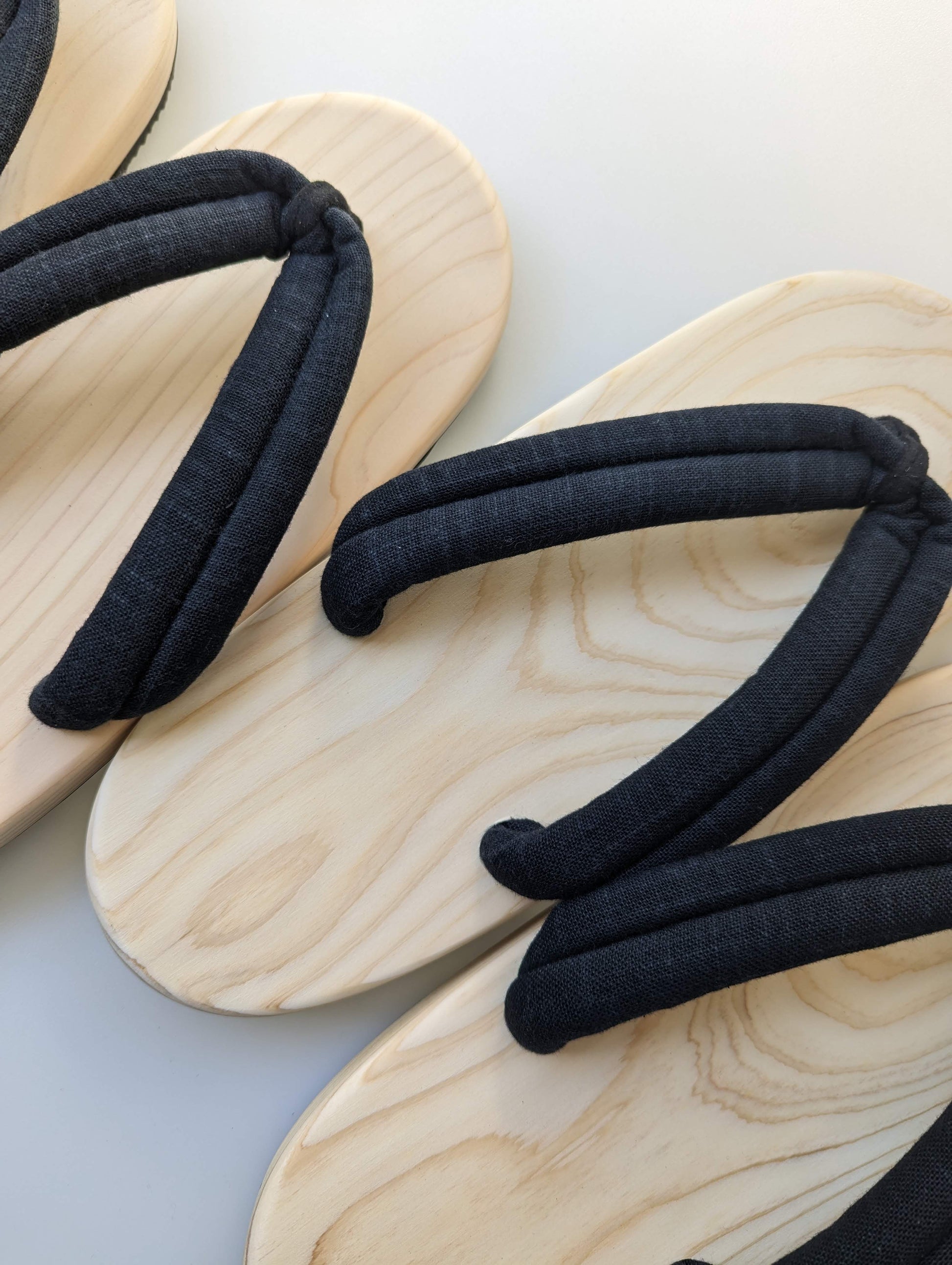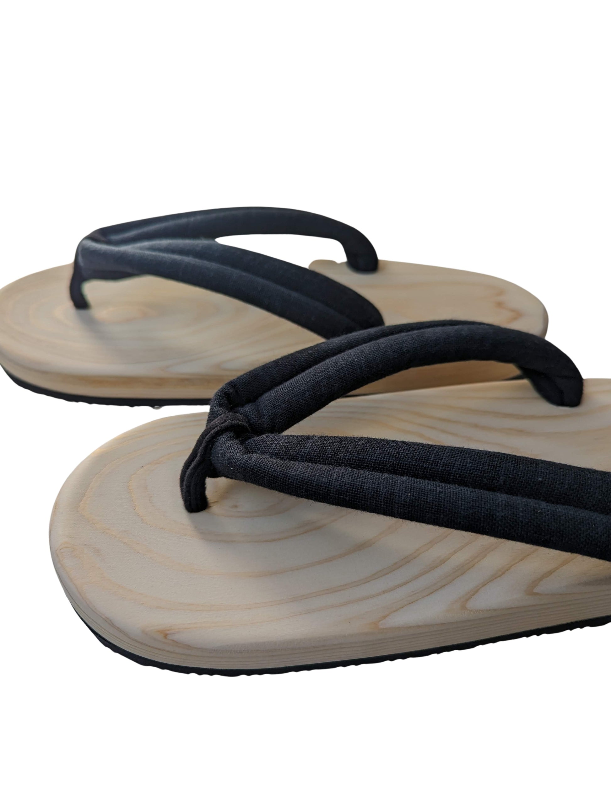 Uncoated Japanese natural cypress wood is used. The natural, uncoated finish makes them comfortable to wear barefoot, as they easily absorb sweat. Can be worn outside. Do not get them wet as they are sensitive to water.