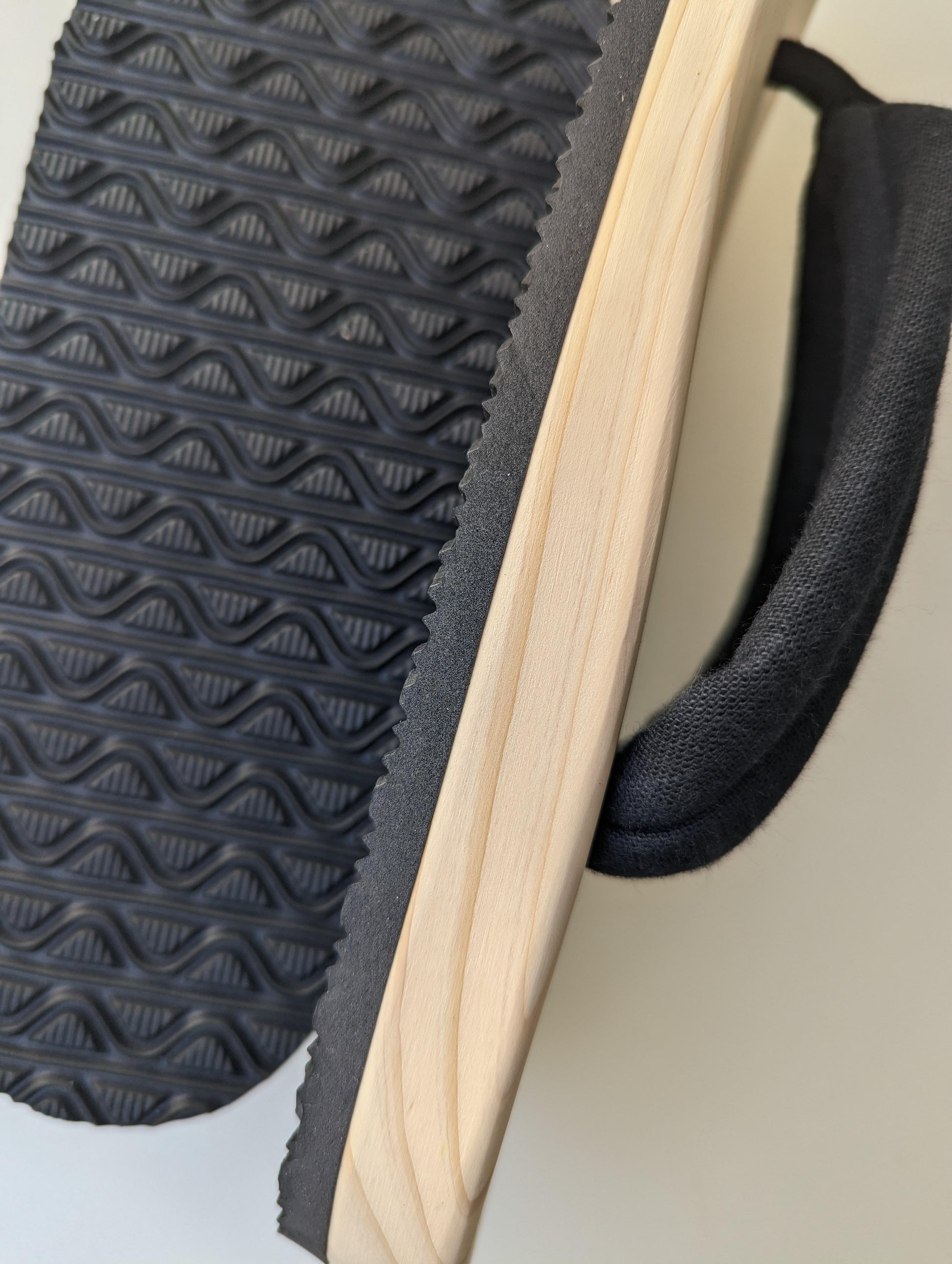 Japanese cypress wood / cotton / polyester / EVA sole /